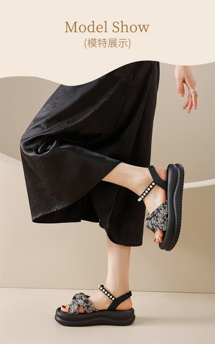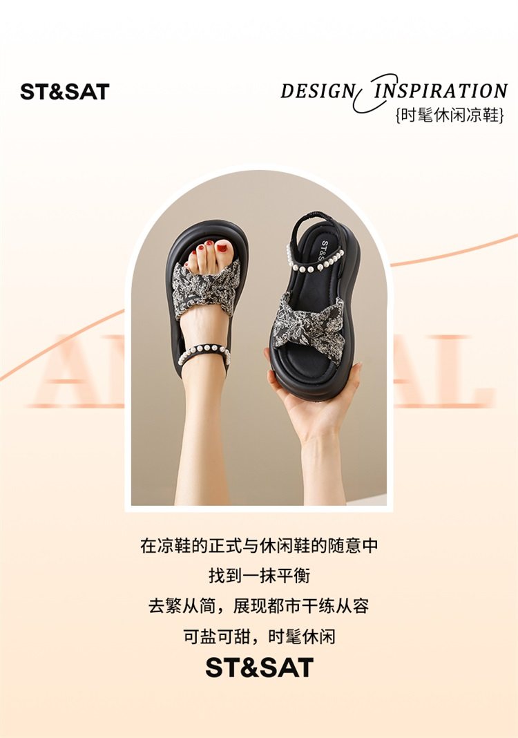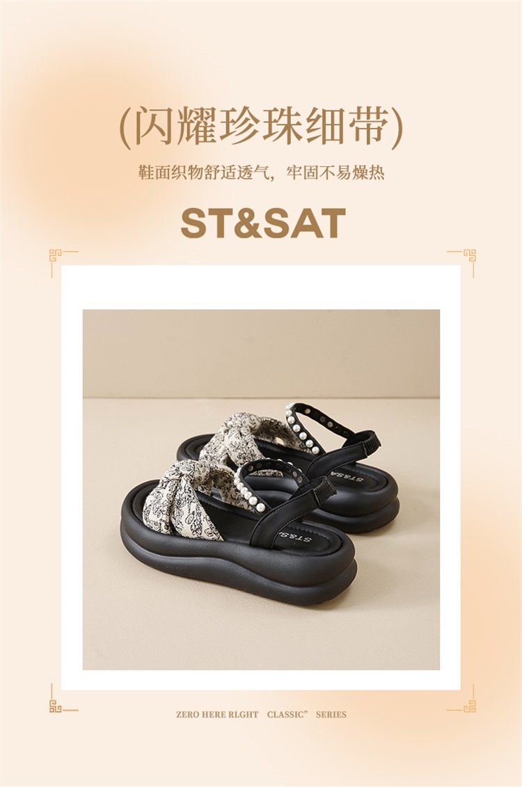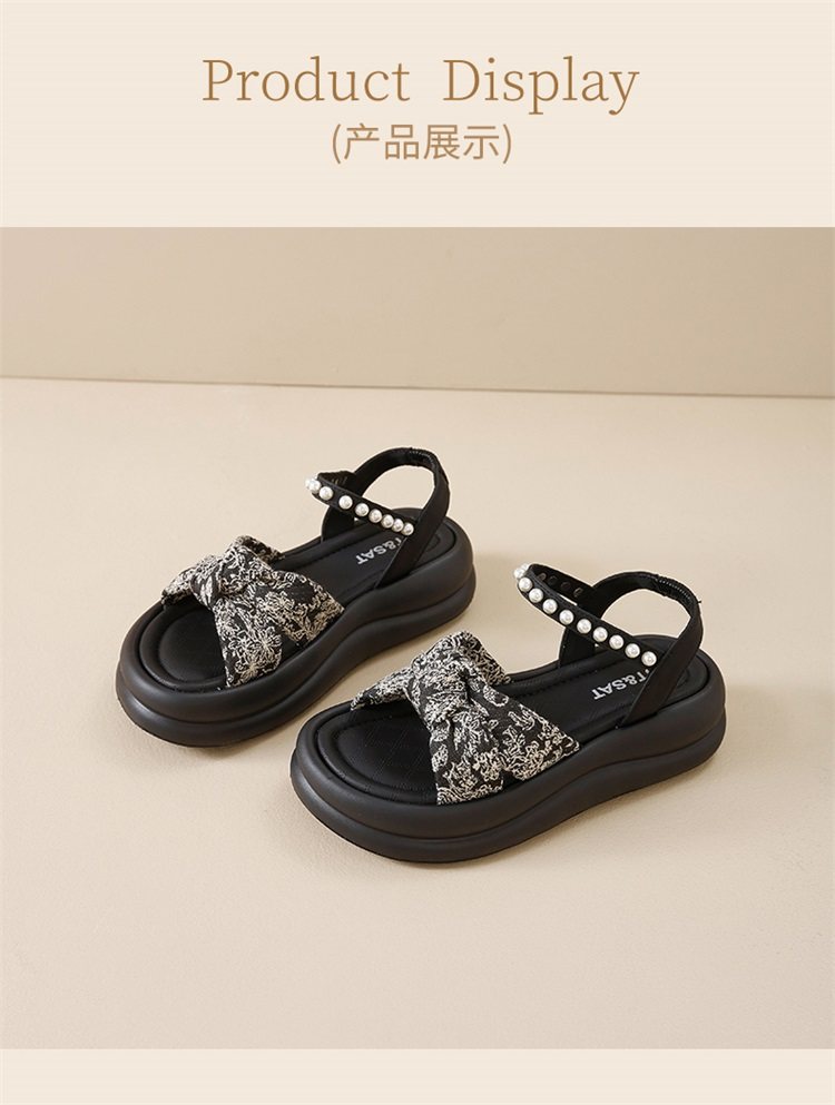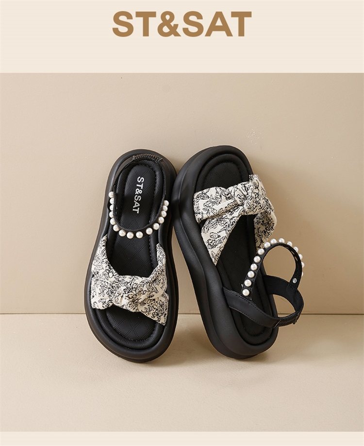 Saturday Thick-Soled Sandals That Don'T Tire Your Feet, Women's Summer Sandals That Go Well with Skirts, Pearl Bow, Super Pretty Women's Sandals