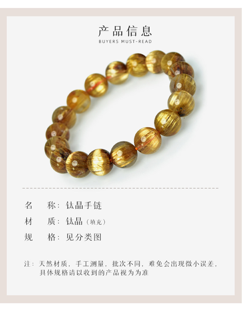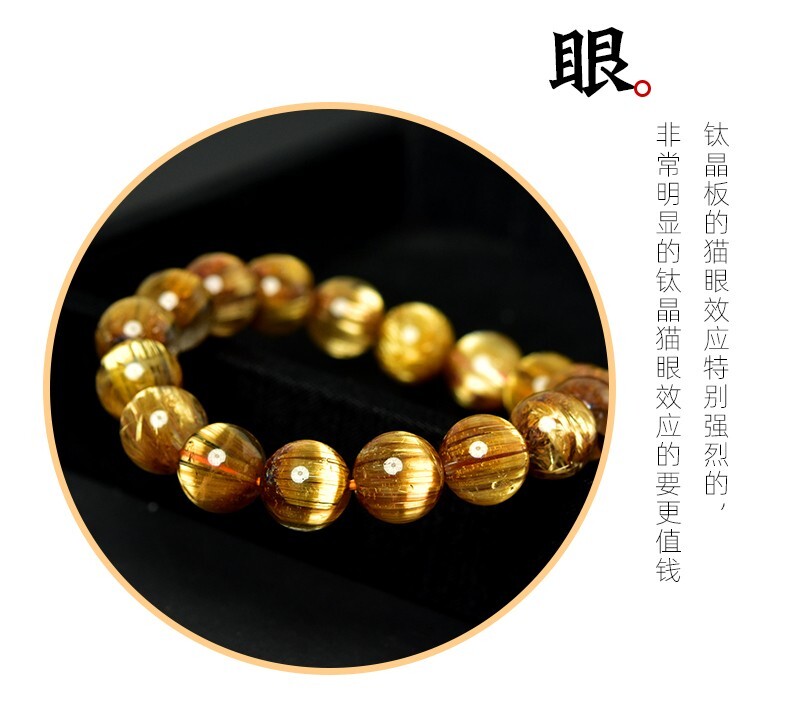 Putuo Mountain Golden Hair Crystal Bracelet for Women, Full Hair Cat's Eye Yellow Crystal Titanium Crystal Bracelet