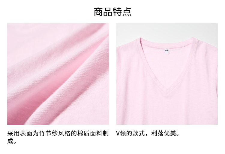 Uniqlo Women's Slub Yarn V Neck T-Shirt/Short Sleeve Cotton White T Tops Boil Inner Spring and Summer New arrival 483576