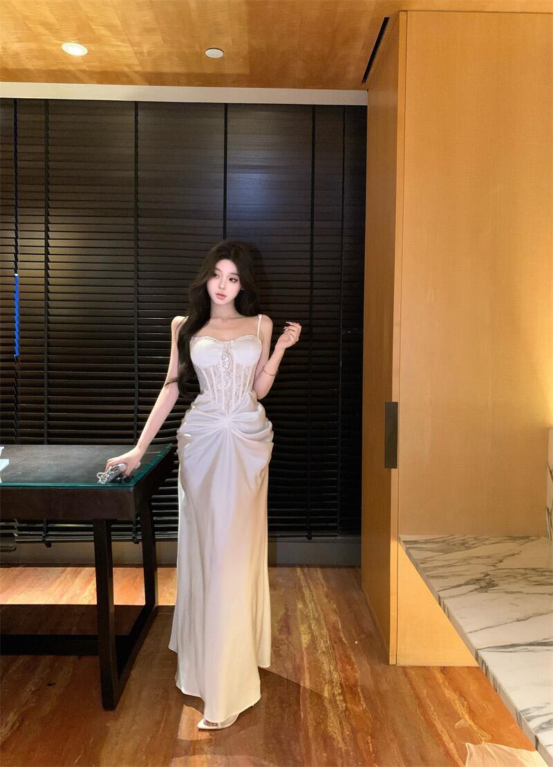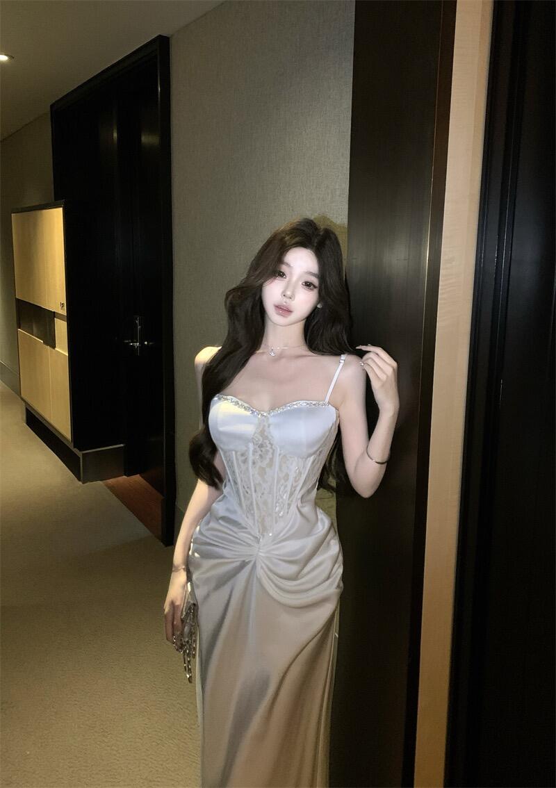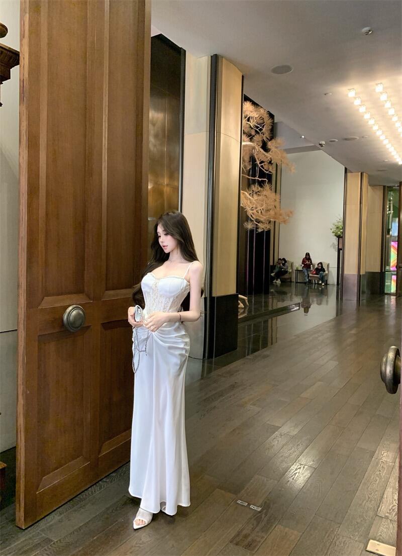 纤细的吊带清晰的展现出女性双肩、锁骨的jig致线条