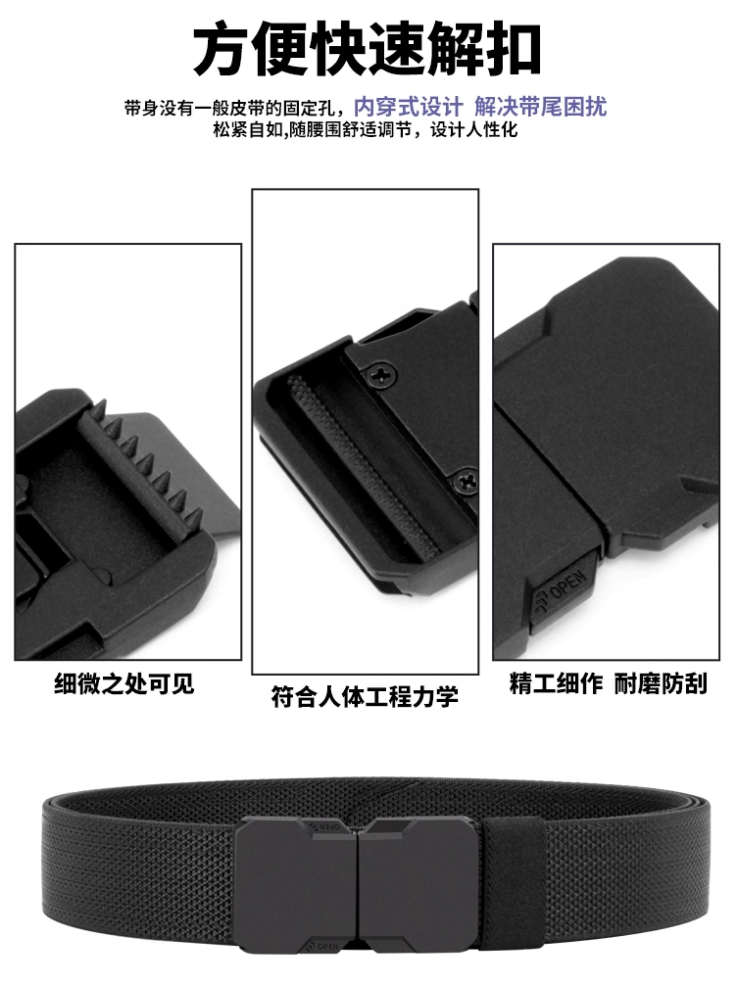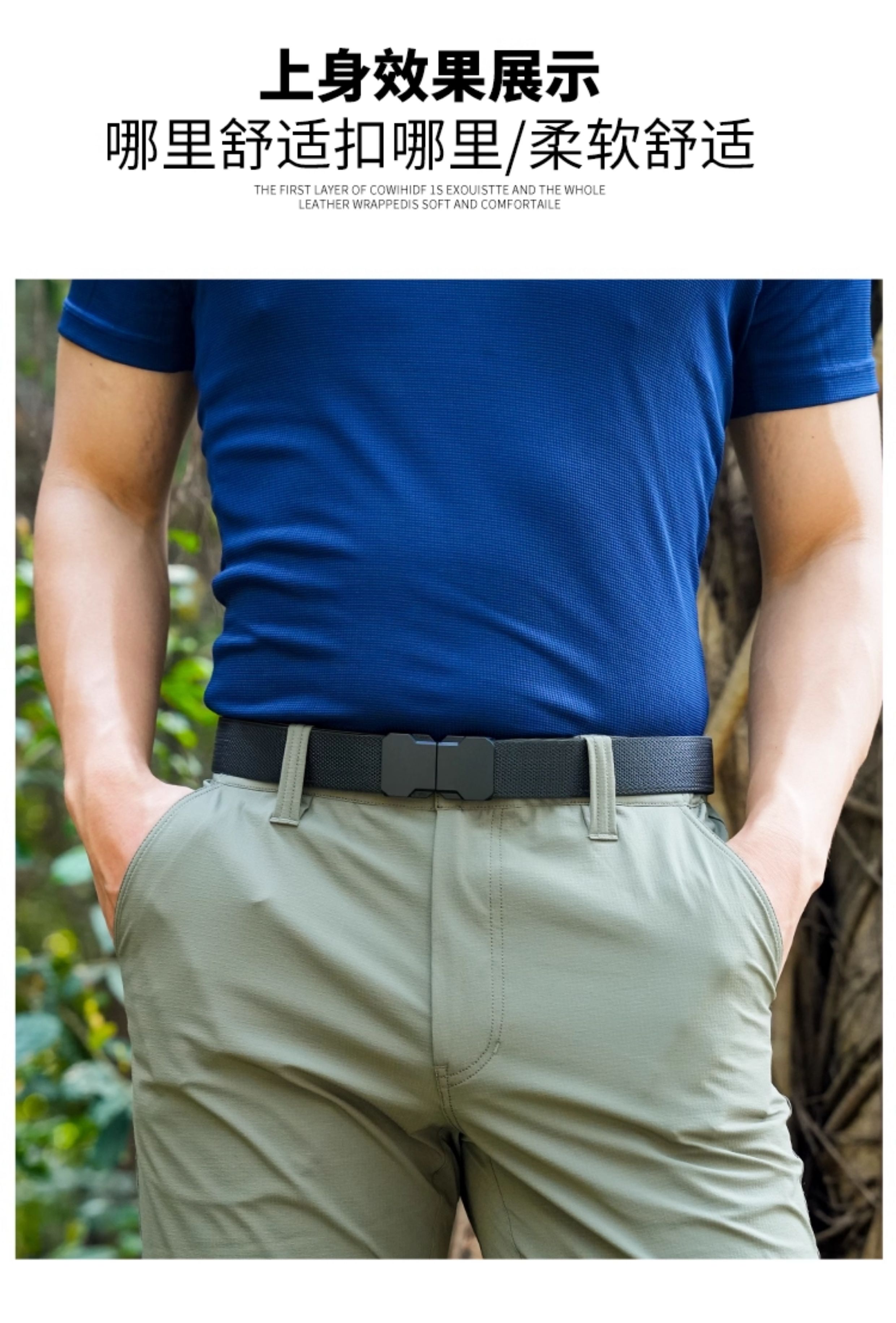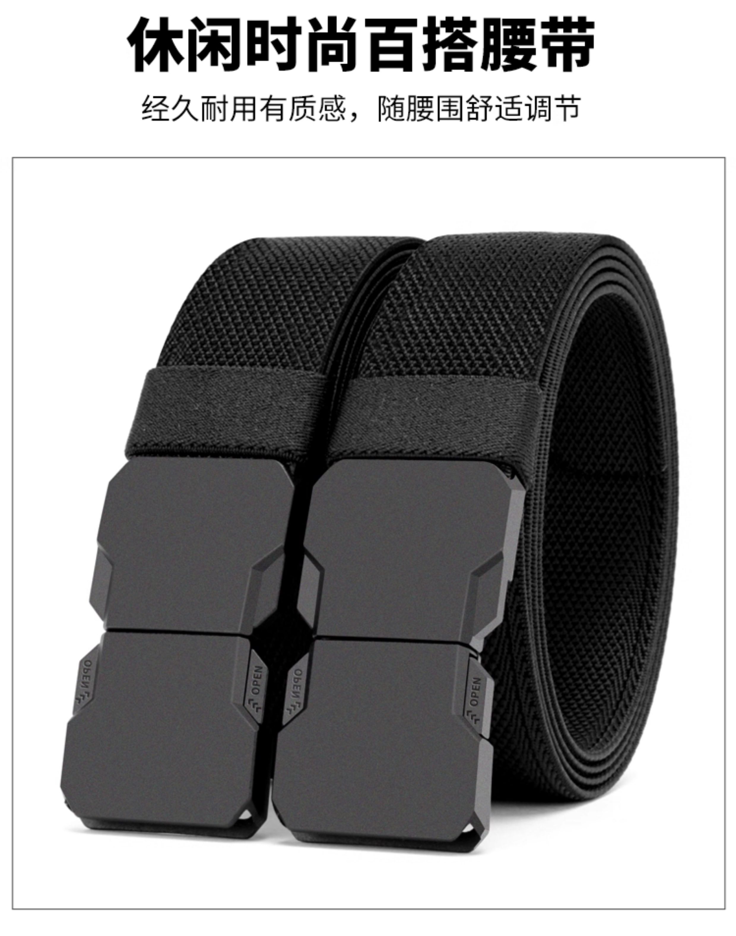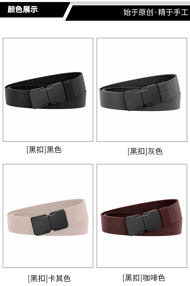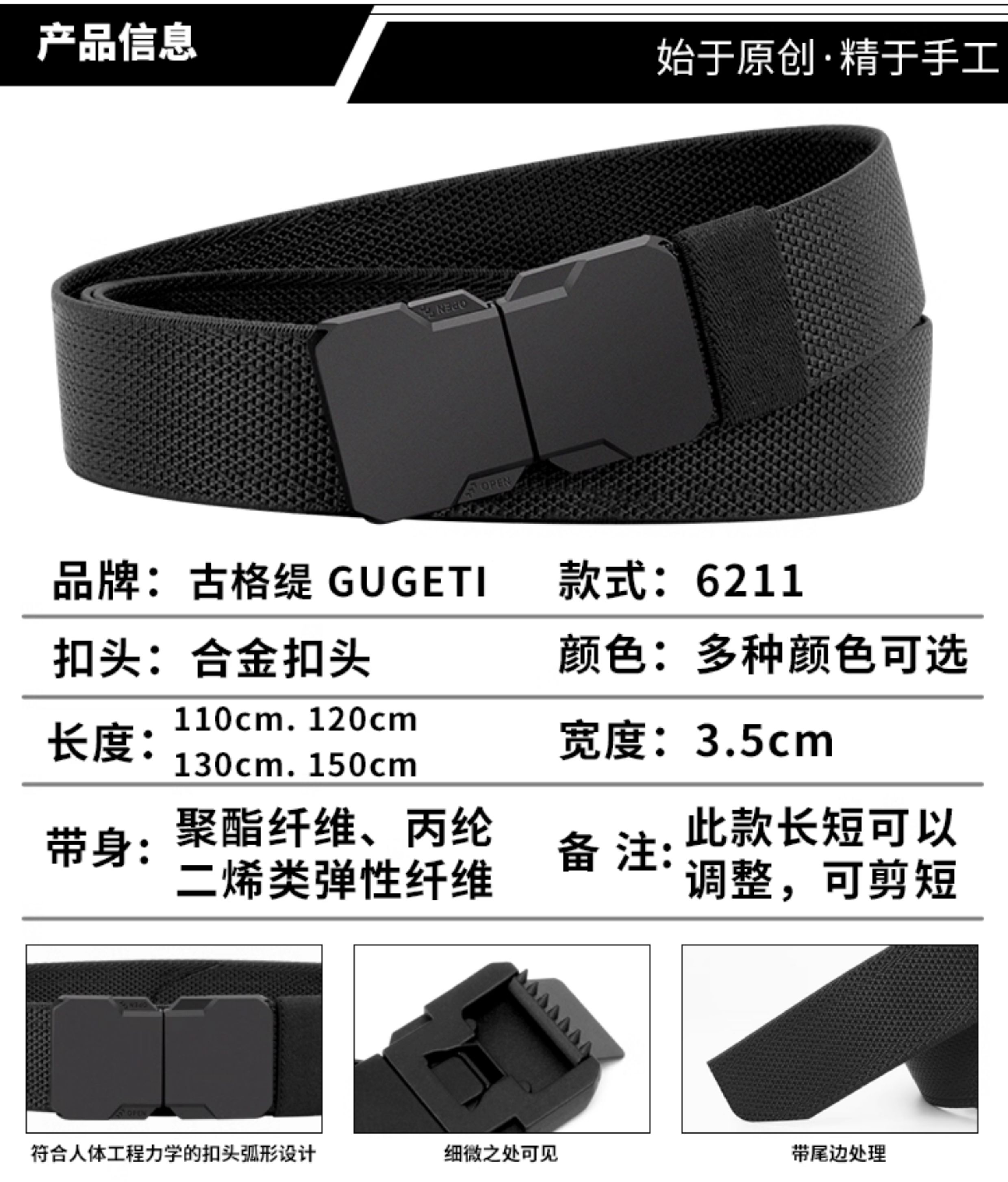 Guguti Genuine New Model Belt for Men, Canvas Woven Buckle Elastic Belt, High-Grade Tactical Elastic Pants Belt