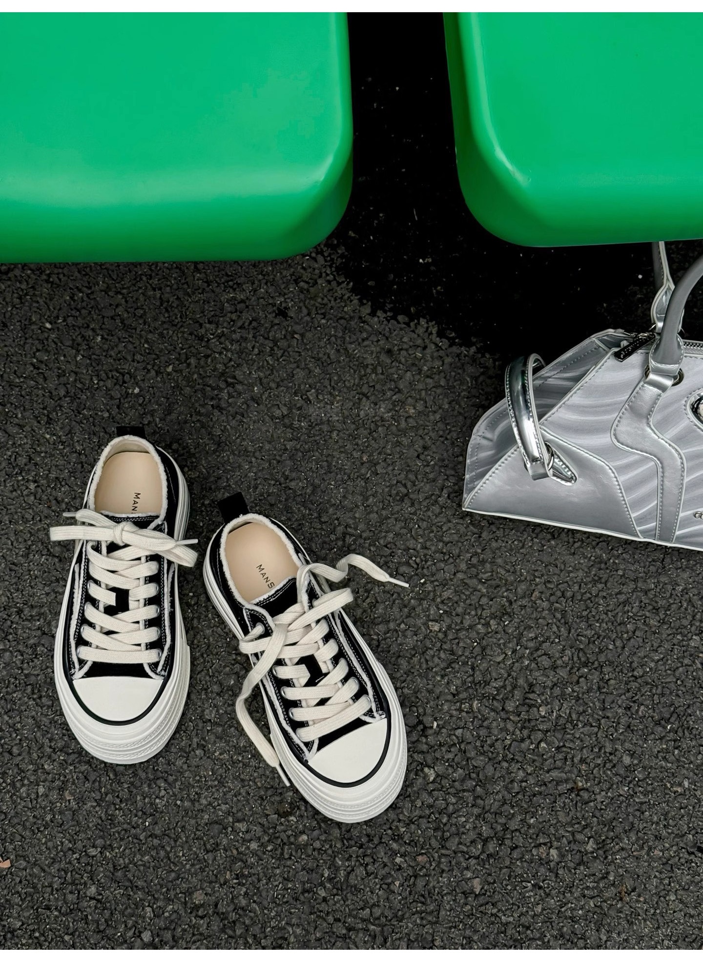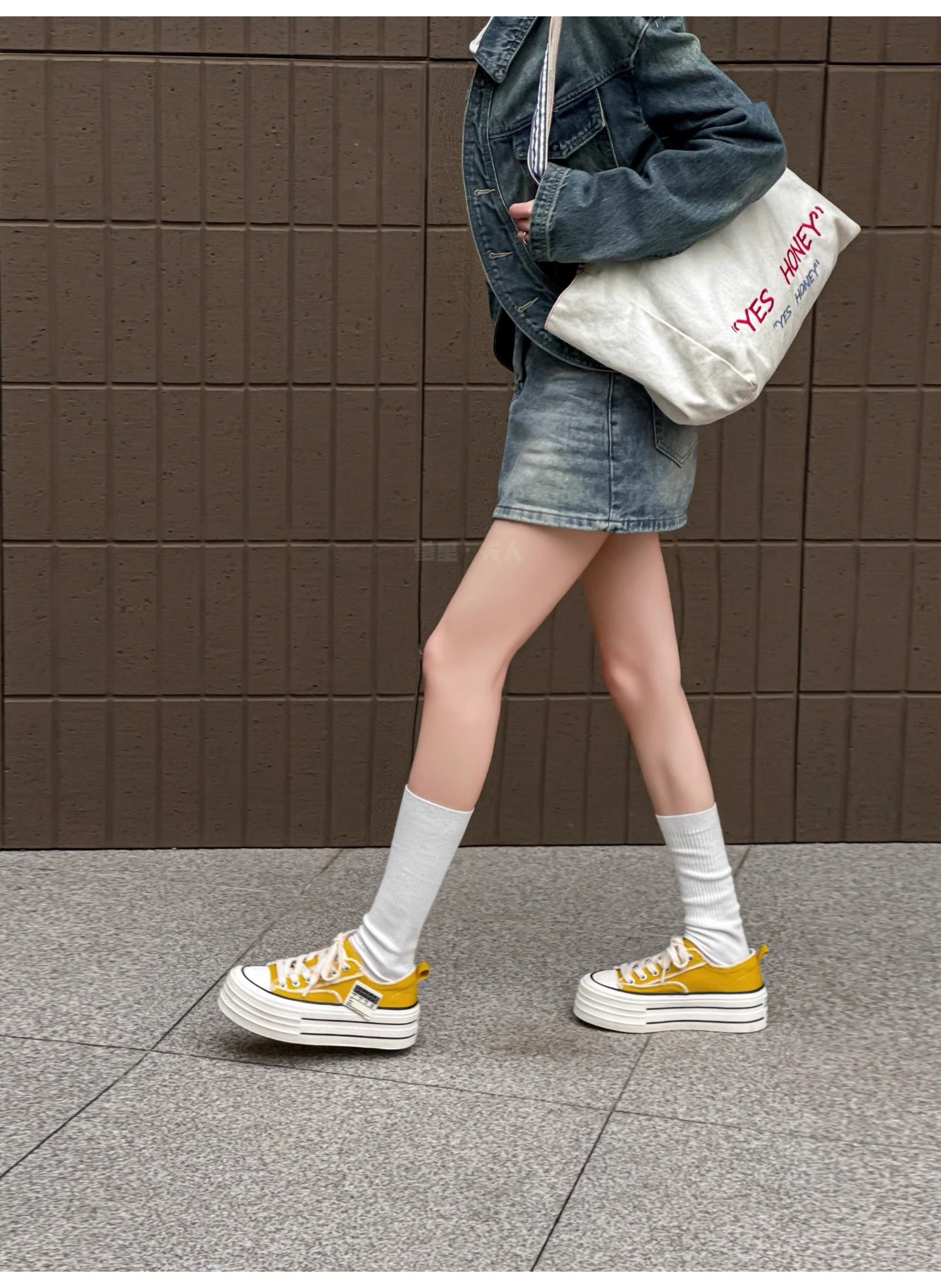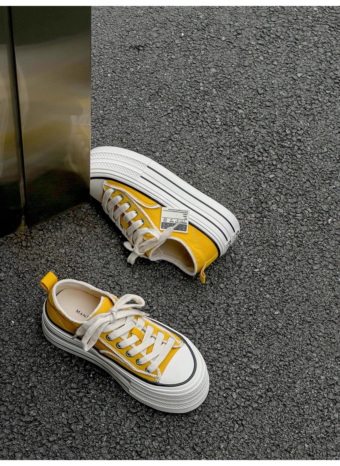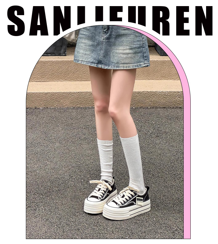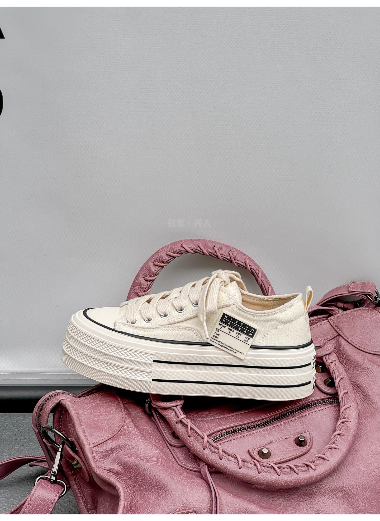 Sanli Fashion Classic Sneakers for Women 2025 New Spring/Summer Style with Height-Increasing Thick Soles, Lace-Up College Style Casual Canvas Shoes