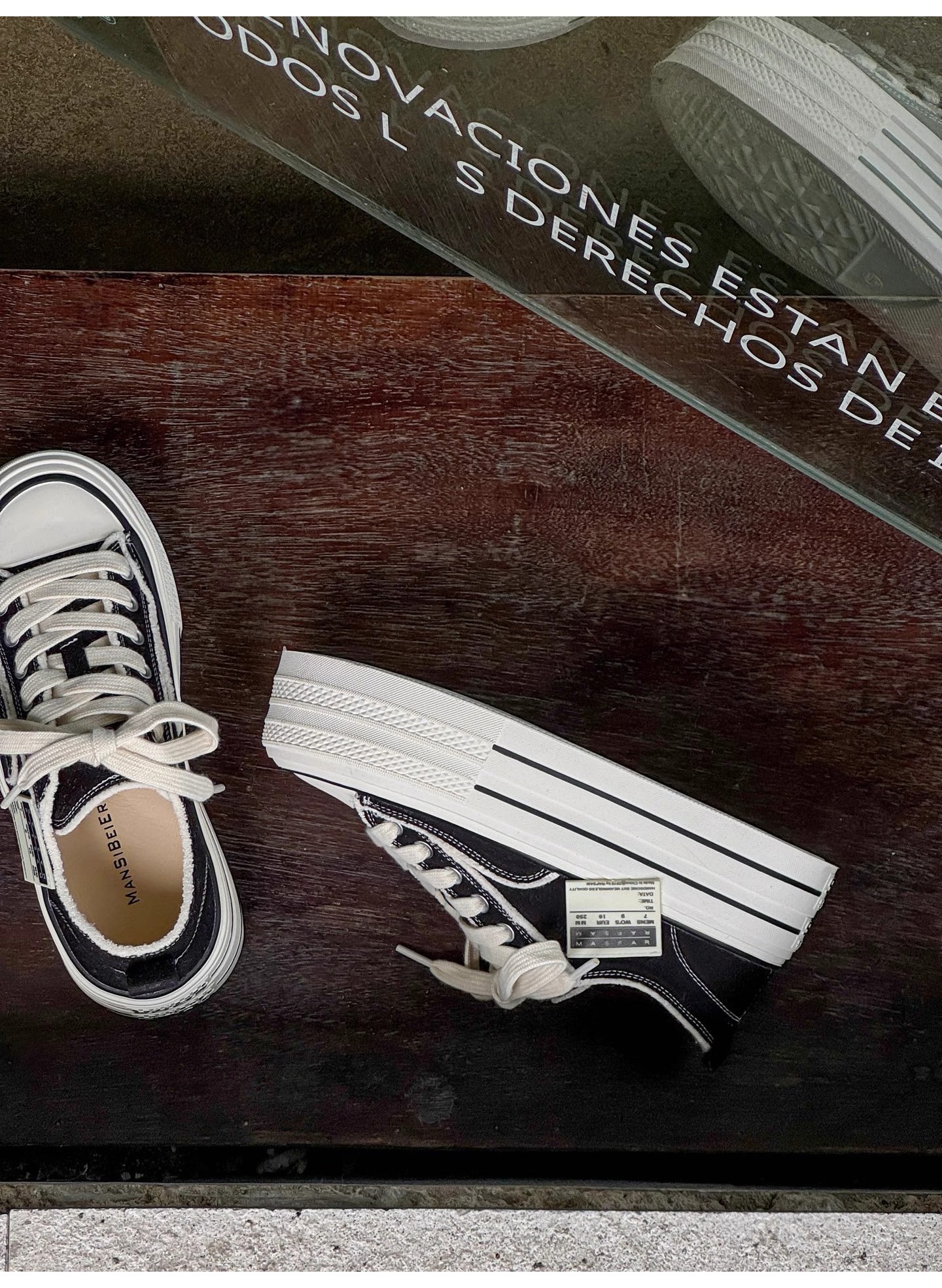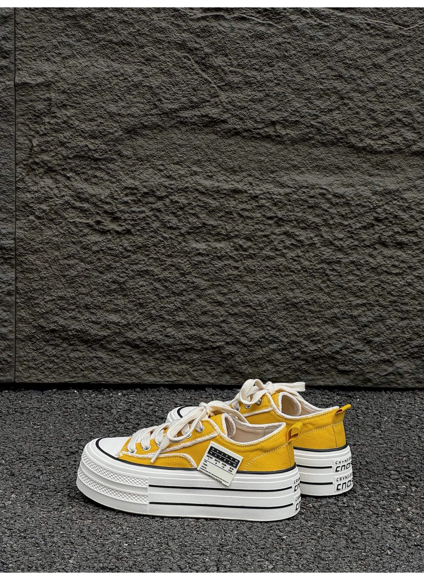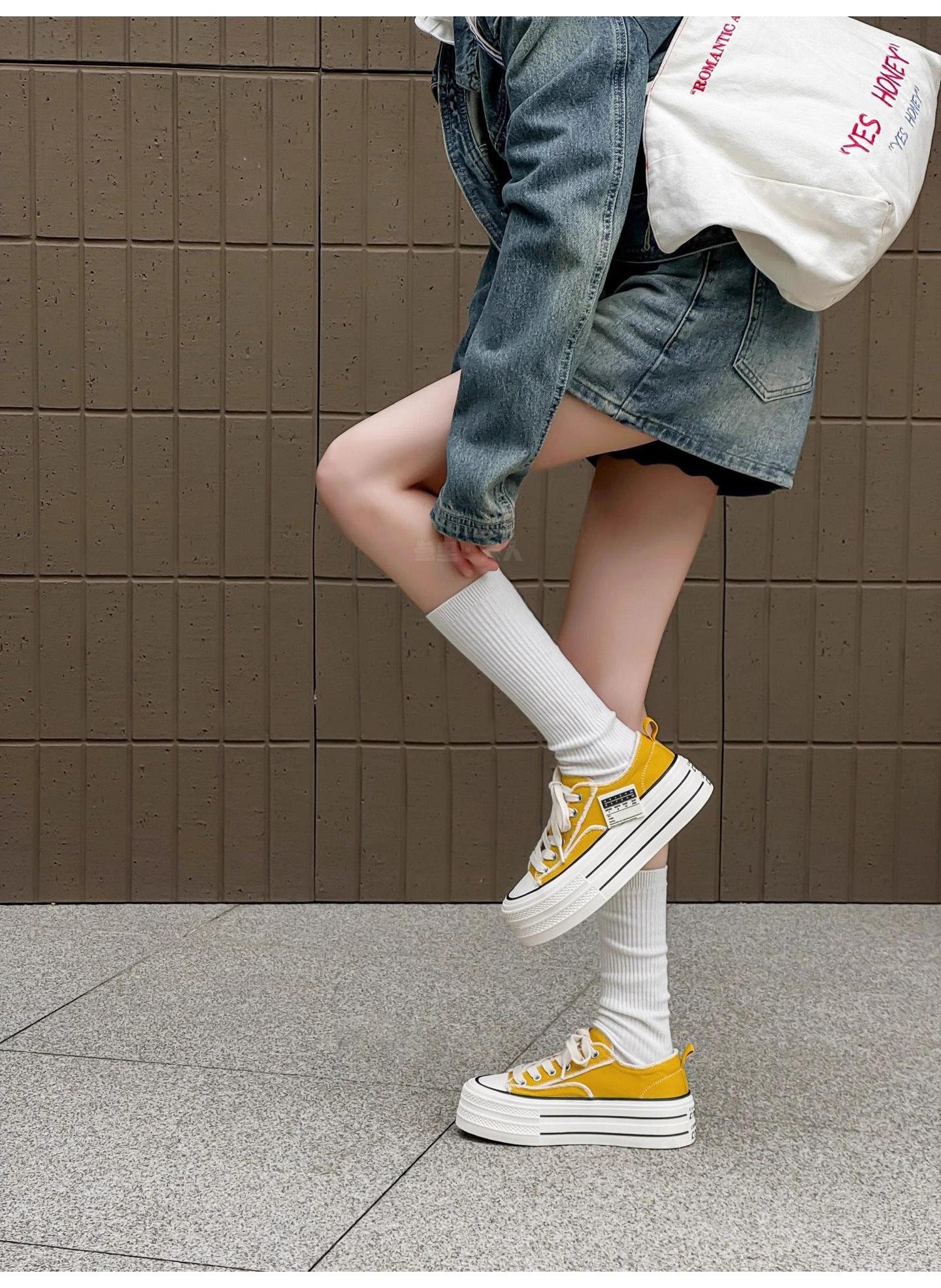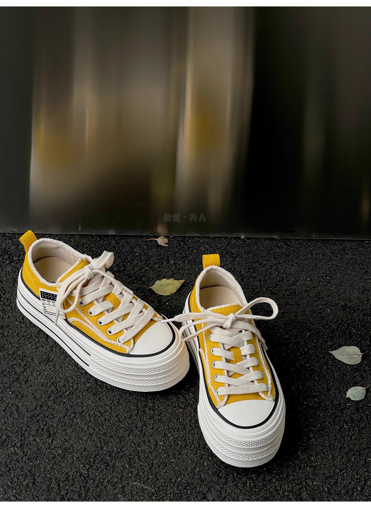 Sanli Fashion Classic Sneakers for Women 2025 New Spring/Summer Style with Height-Increasing Thick Soles, Lace-Up College Style Casual Canvas Shoes