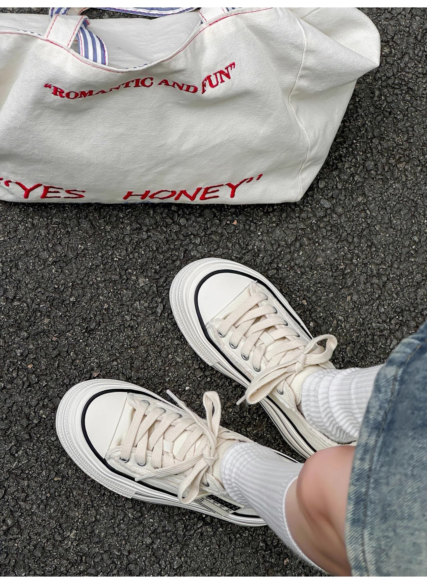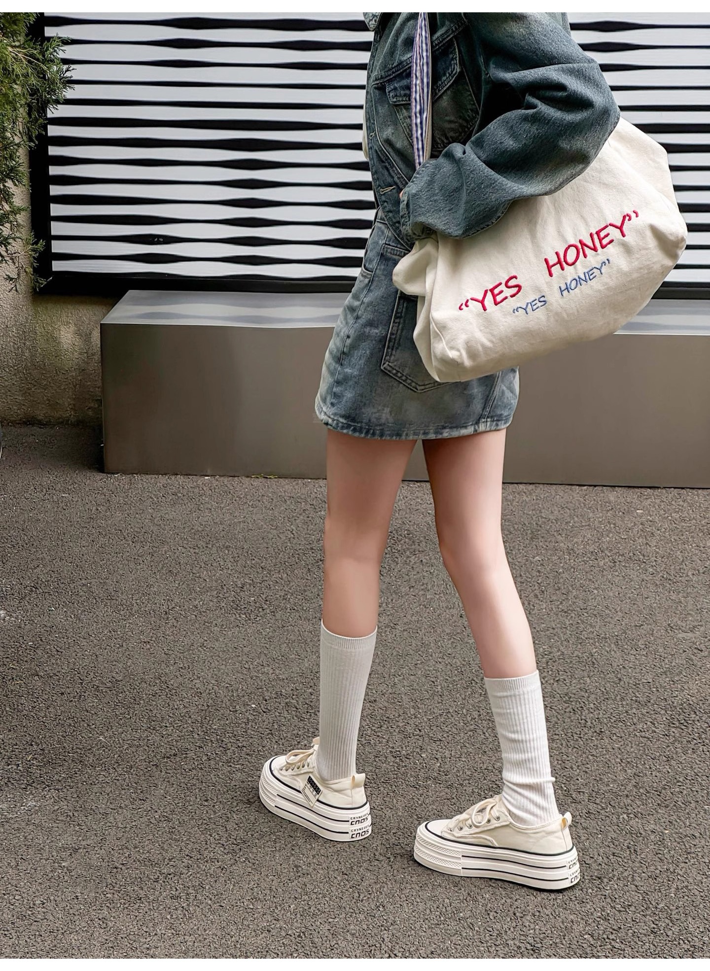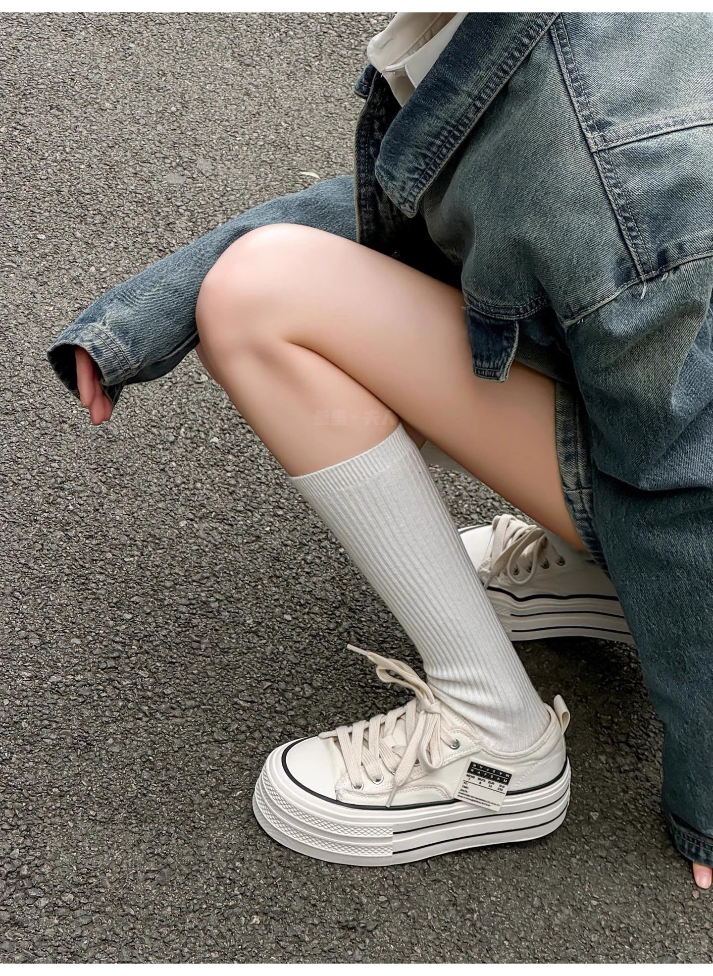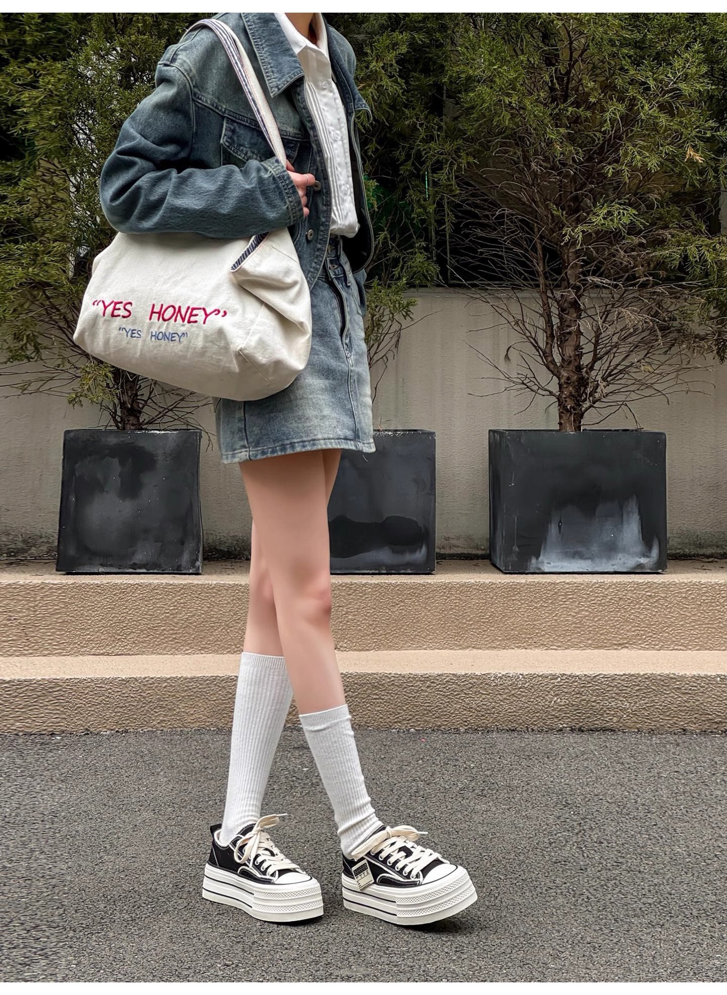 Sanli Fashion Classic Sneakers for Women 2025 New Spring/Summer Style with Height-Increasing Thick Soles, Lace-Up College Style Casual Canvas Shoes