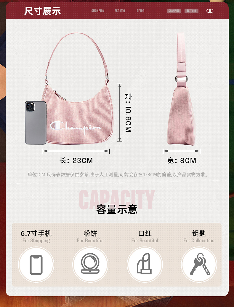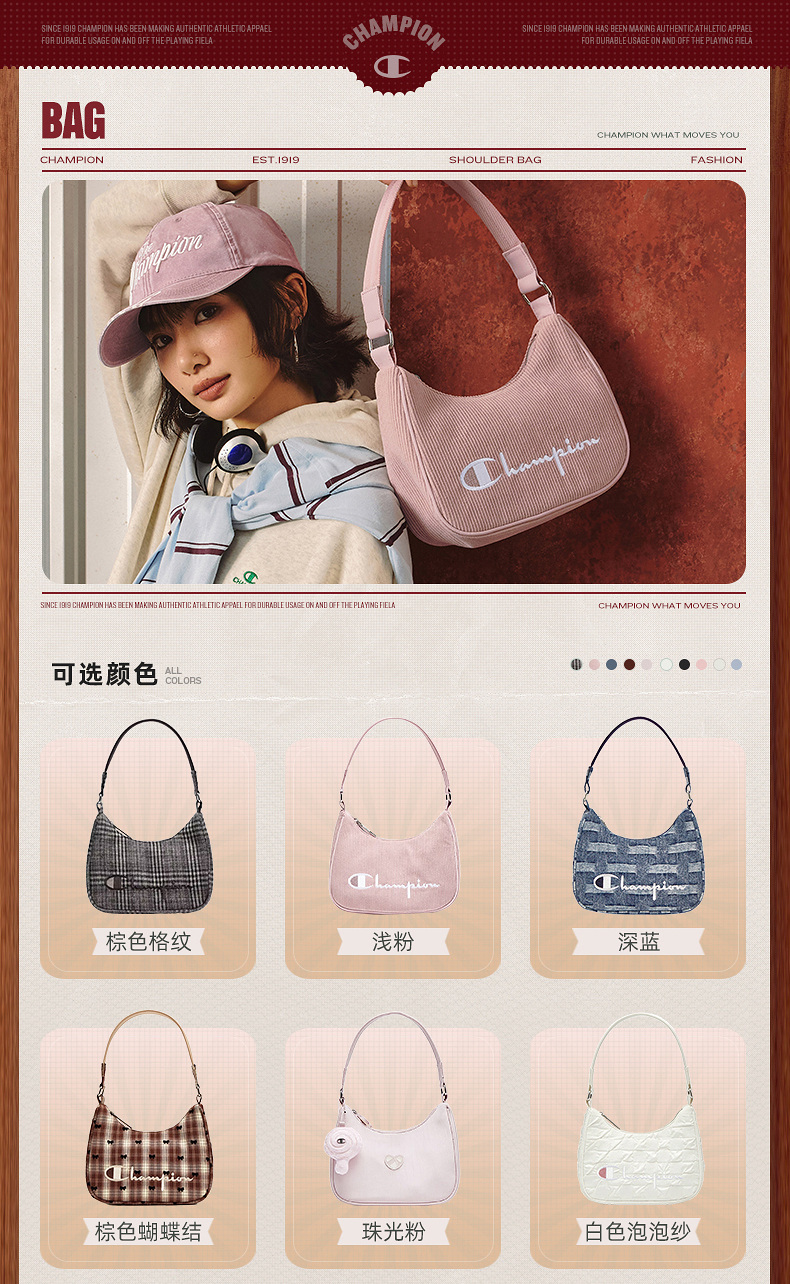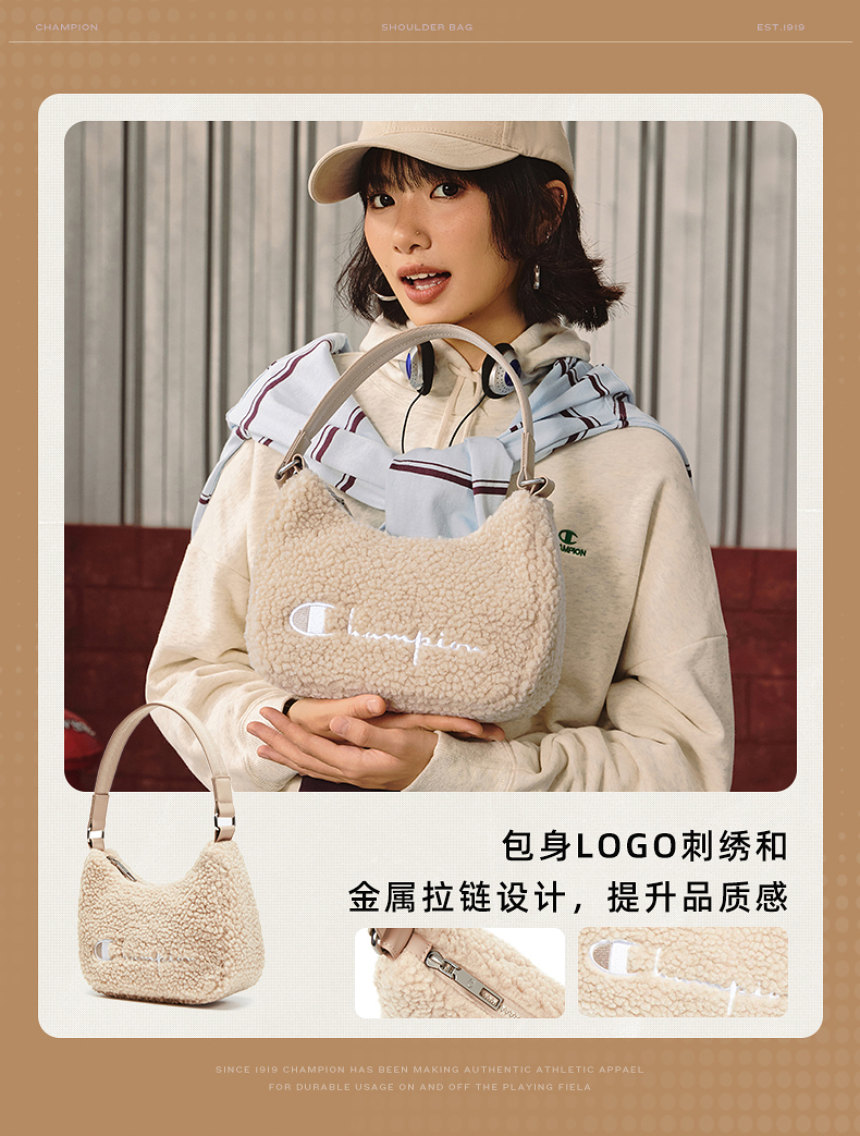 Champion Women's Underarm Bag 2025 Autumn/Winter New Vintage Style Patterned Shoulder Bag Trendy Brand Butterfly Embroidery