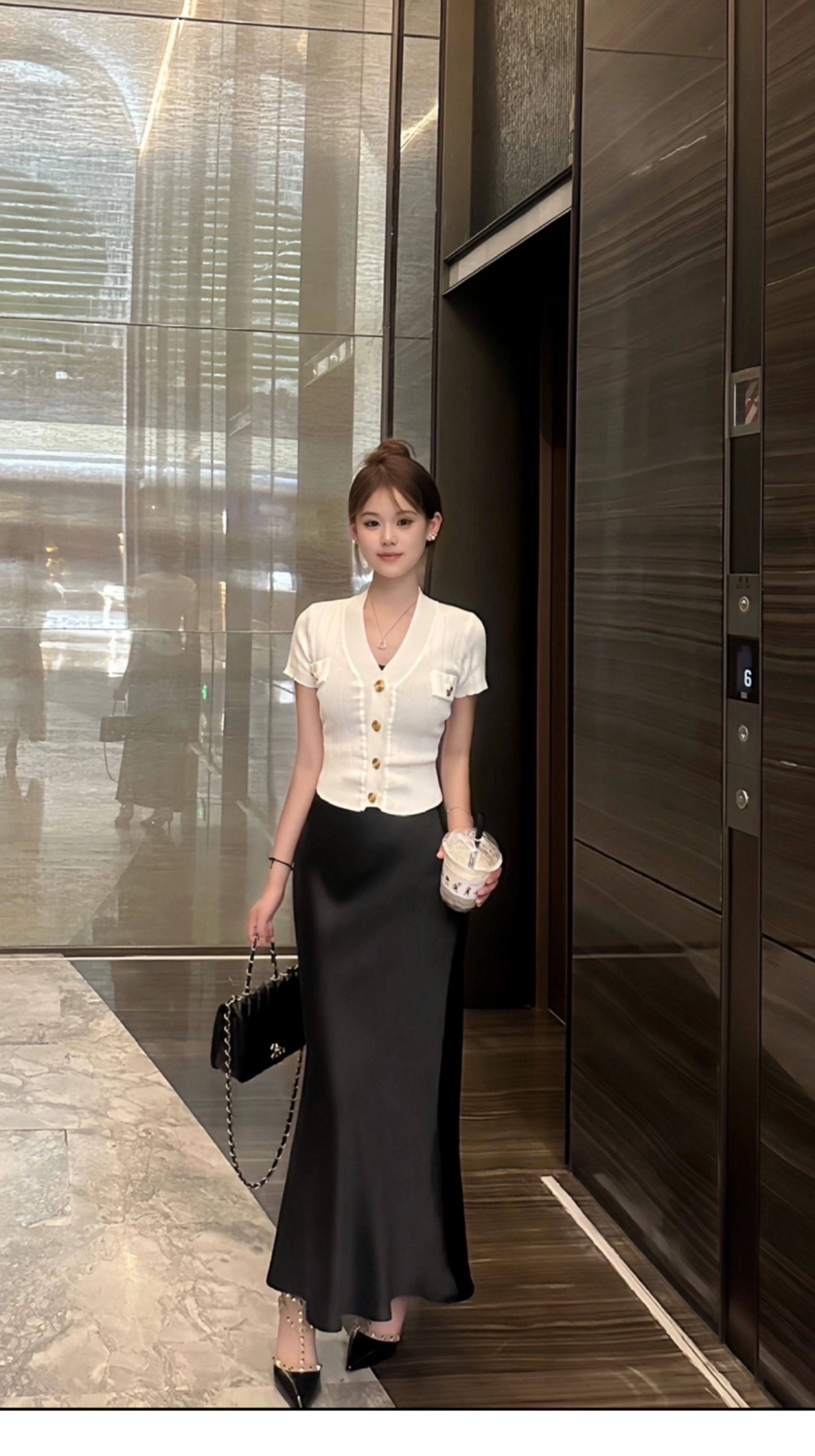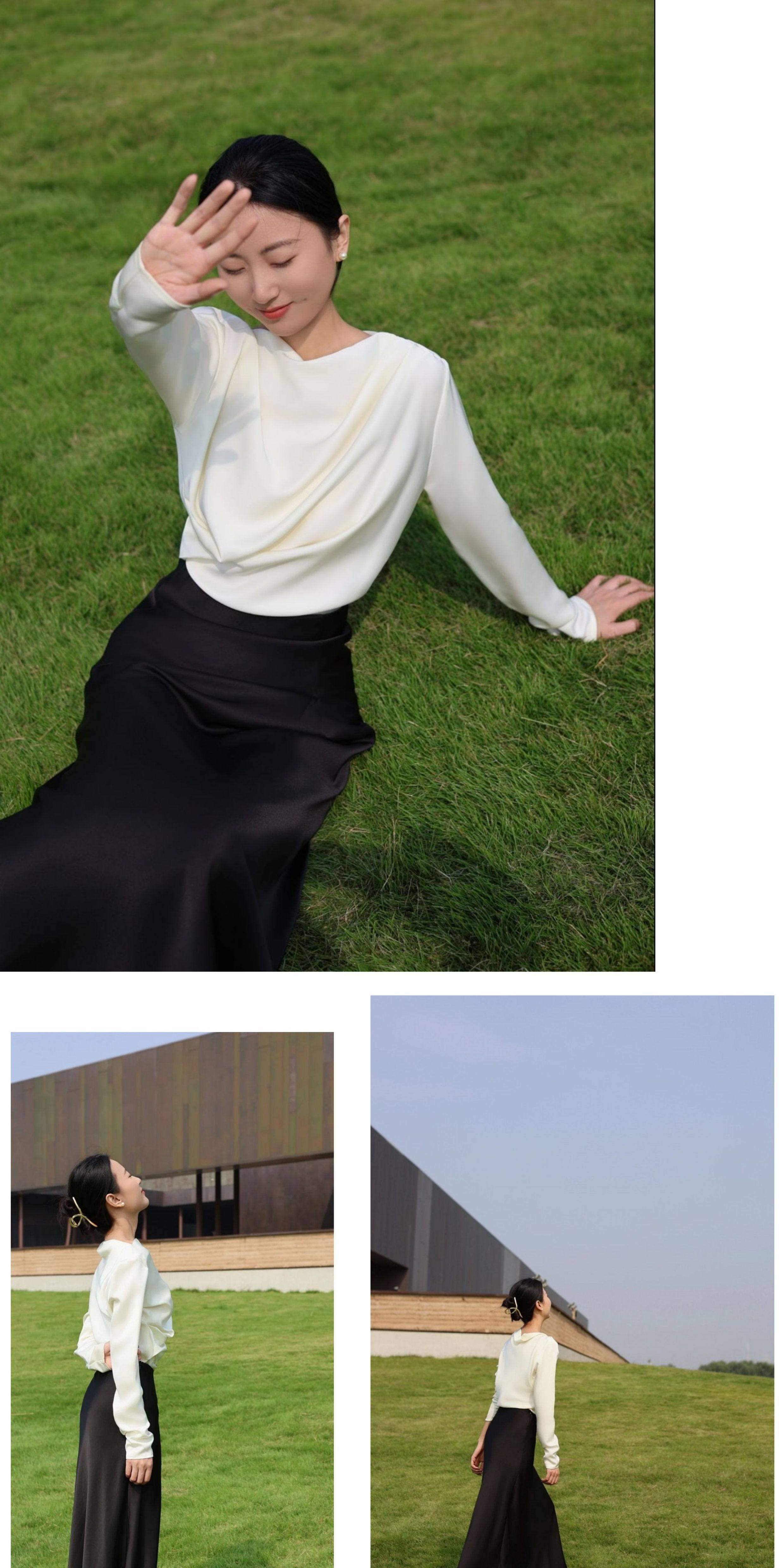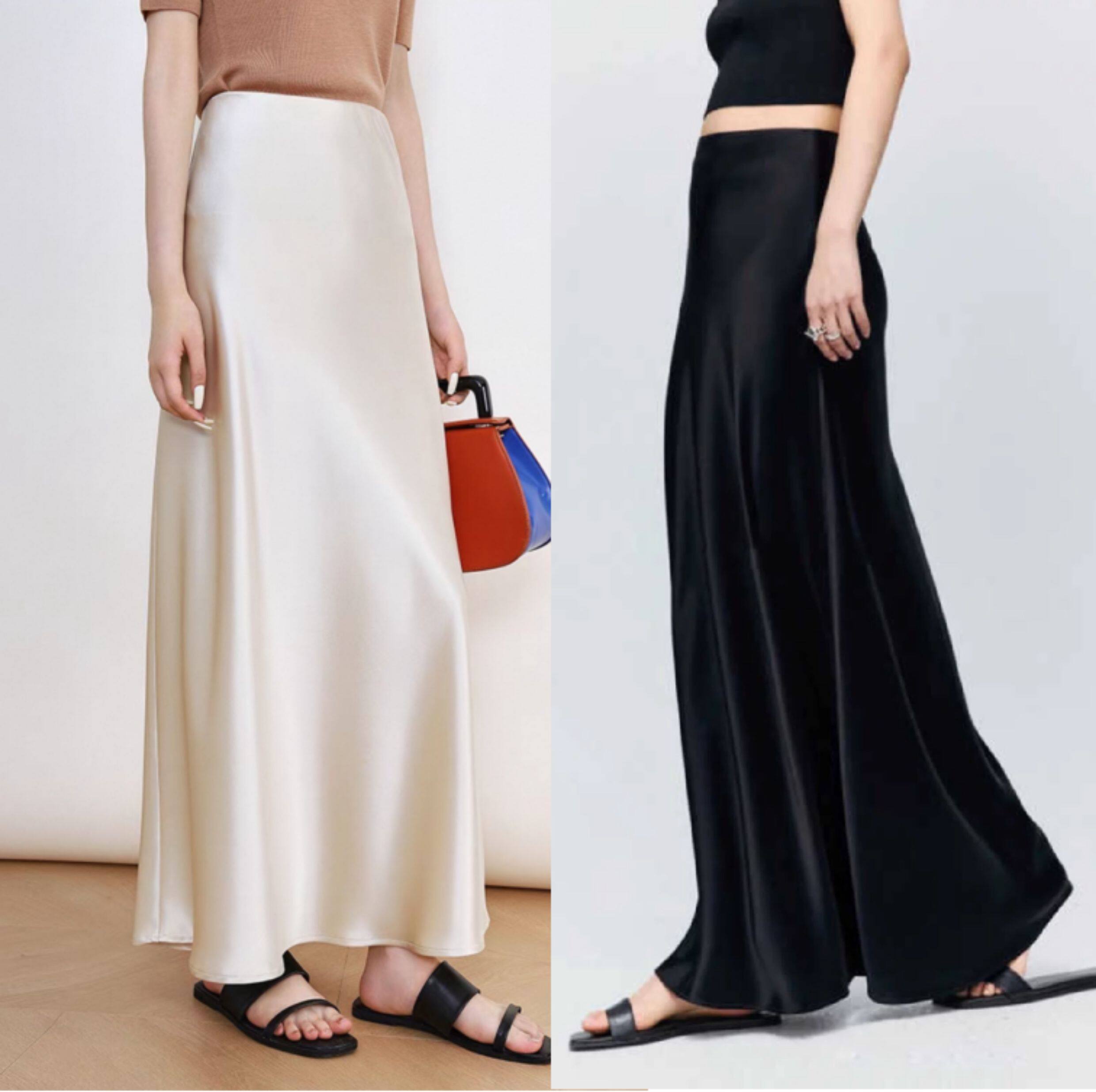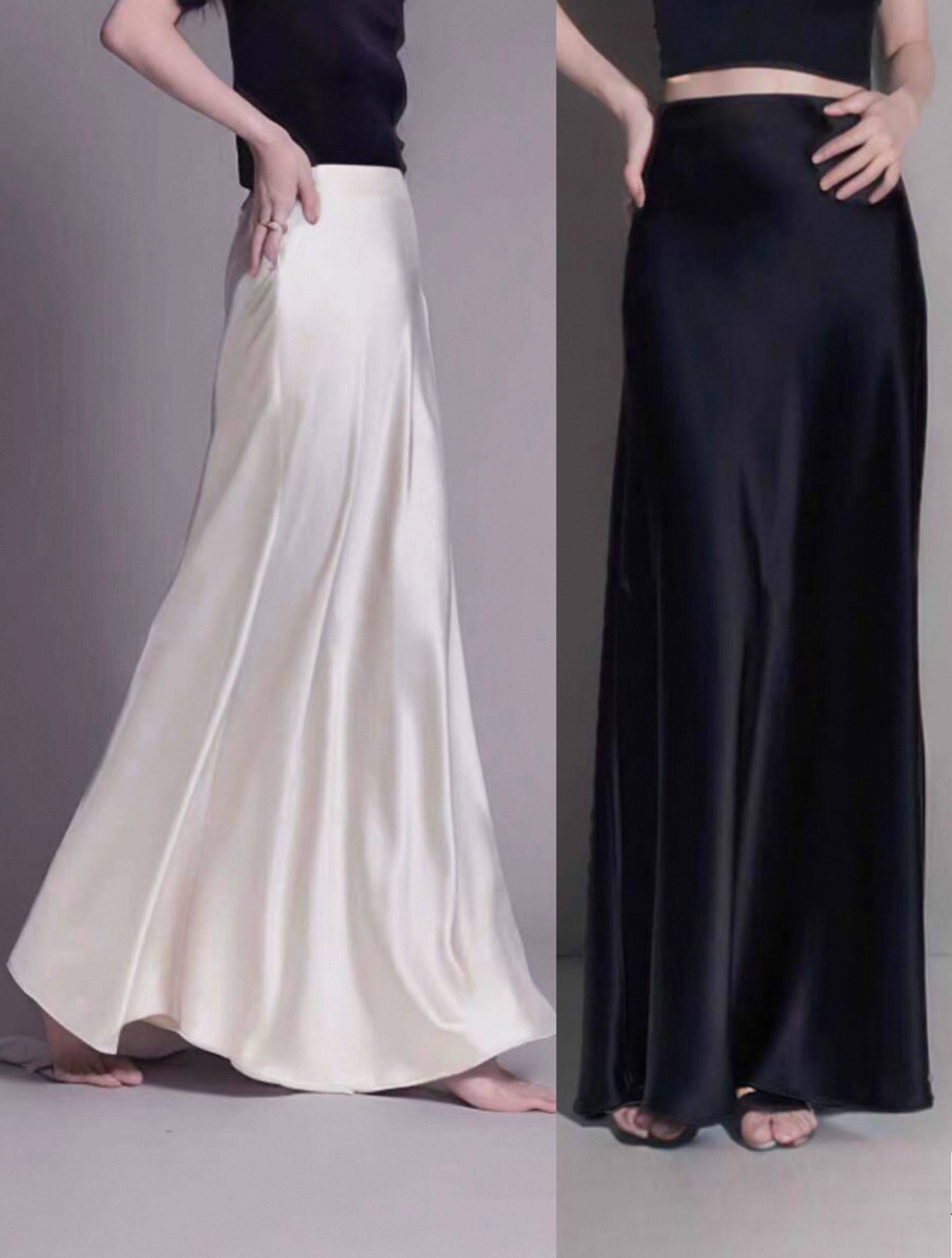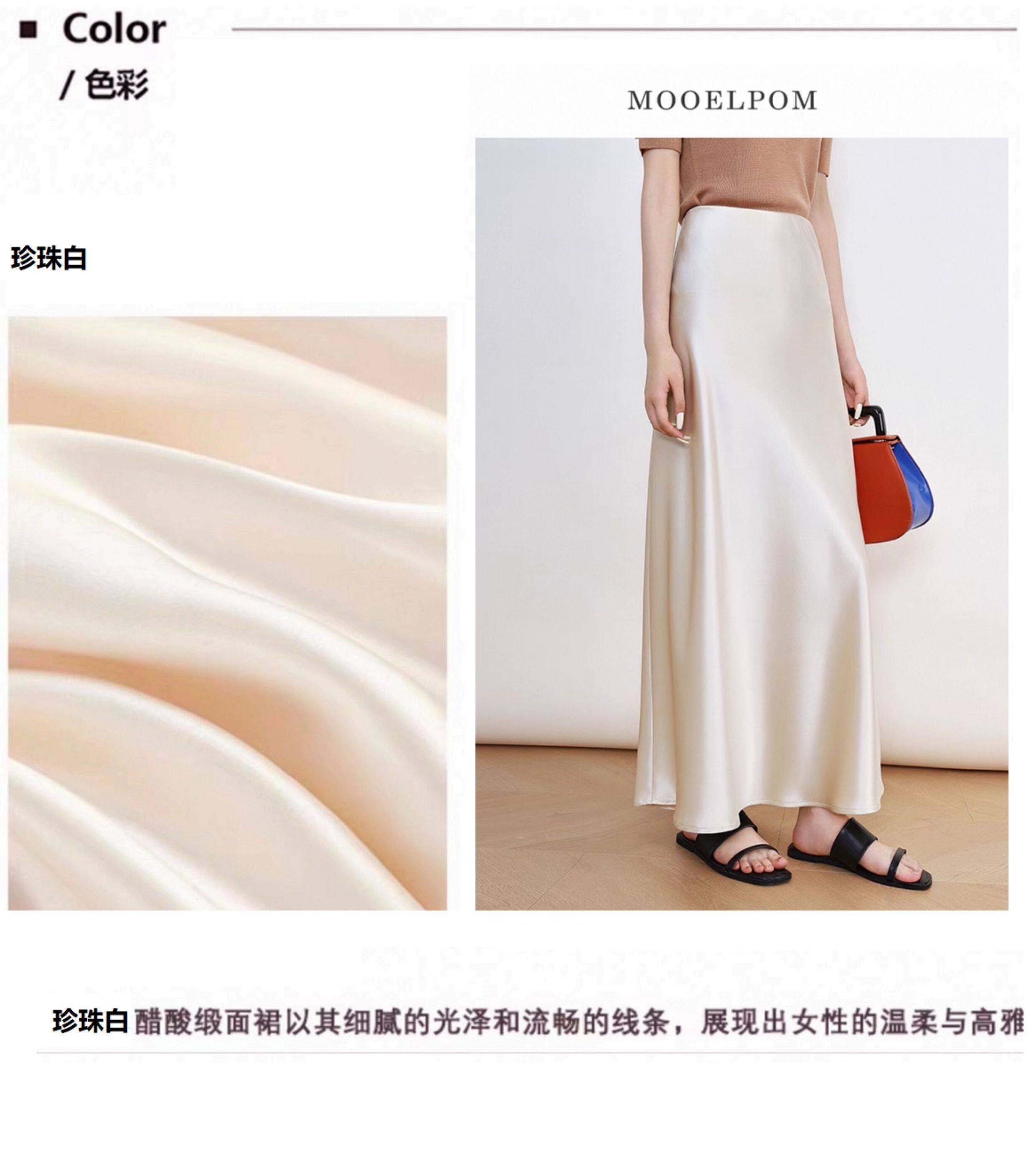 Light Luxury Genuine Acetate Heavy Drape Silky White Short Skirt for Women, Imported Satin High-Waisted Slimming Half-Body Fishtail Long Skirt