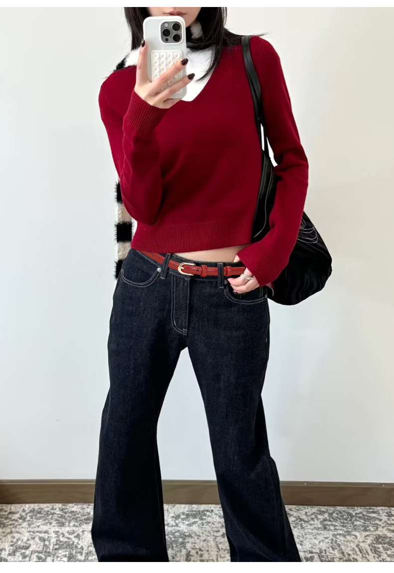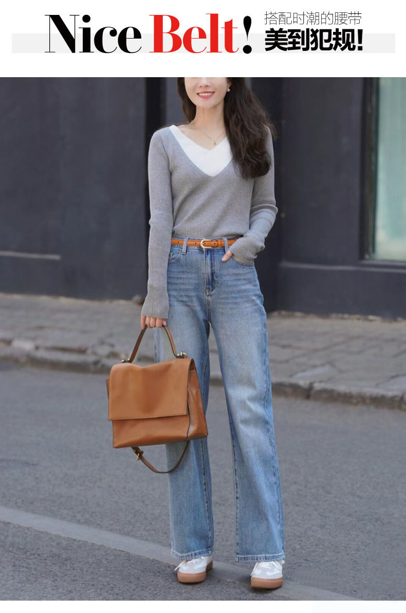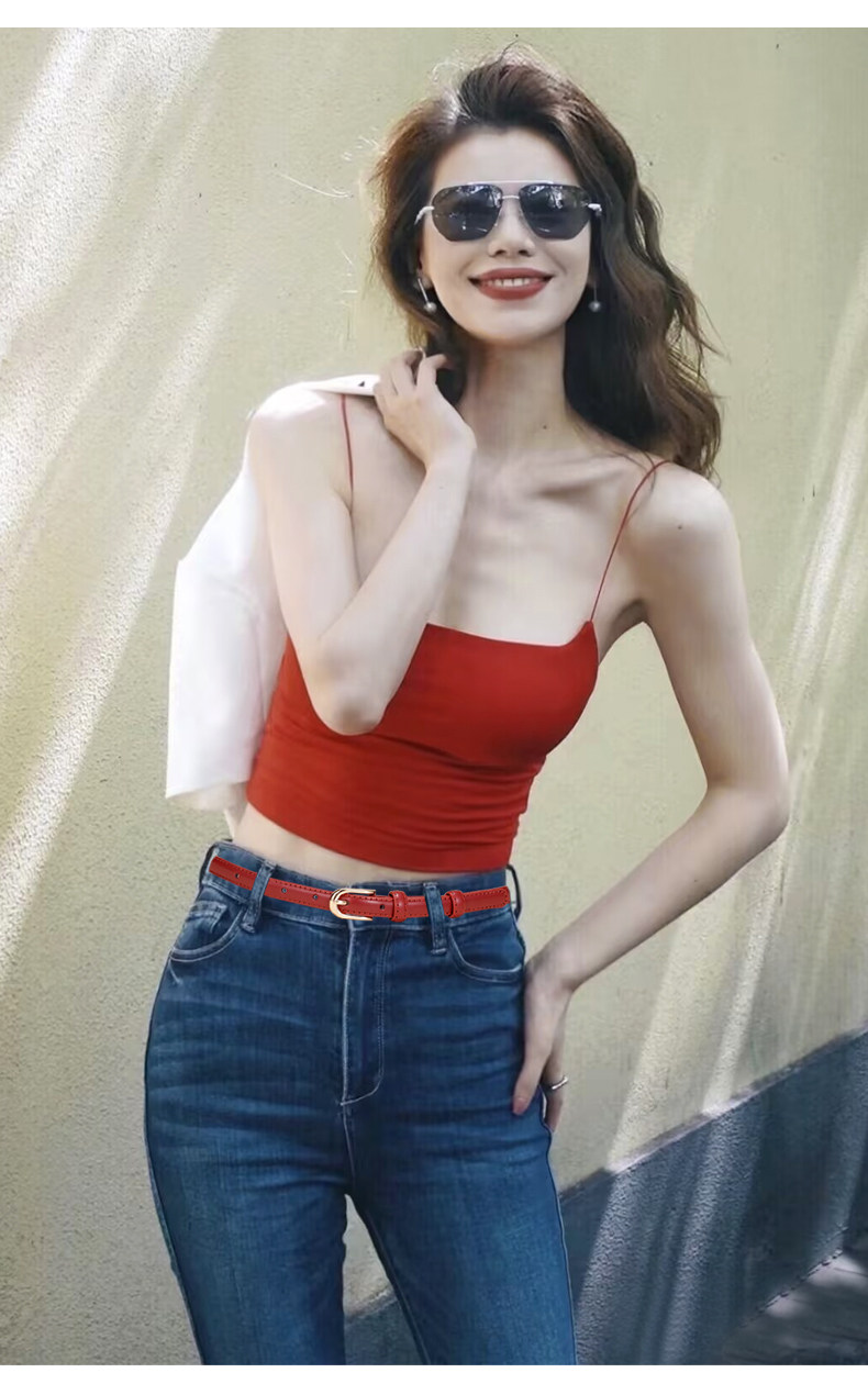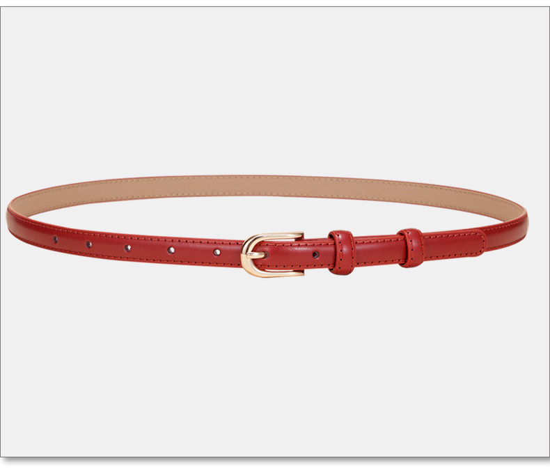 Thin Belt for Women, Vintage Red Genuine Leather Belt to Match Jeans, Niche Design Accessory, 2026 New Style Belt