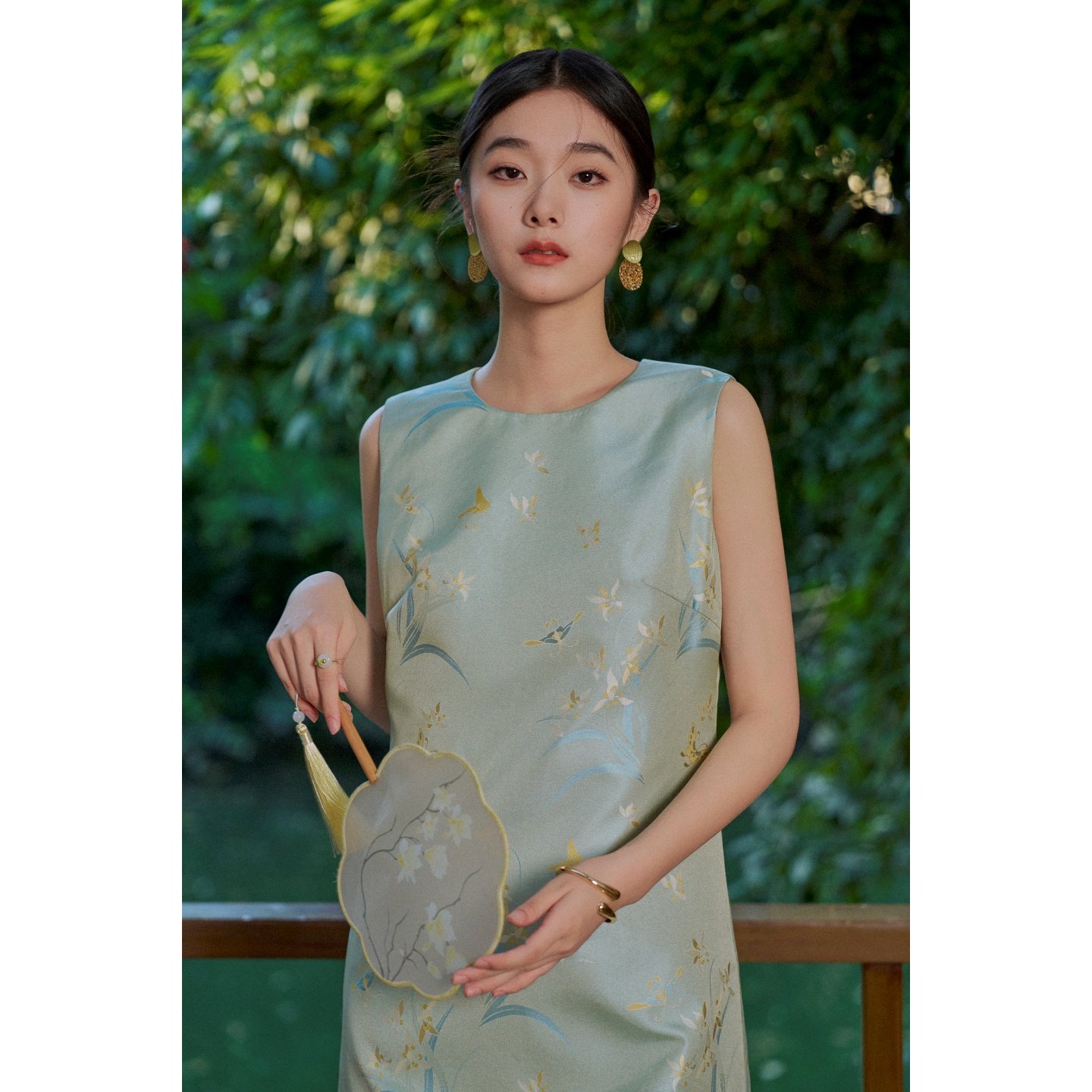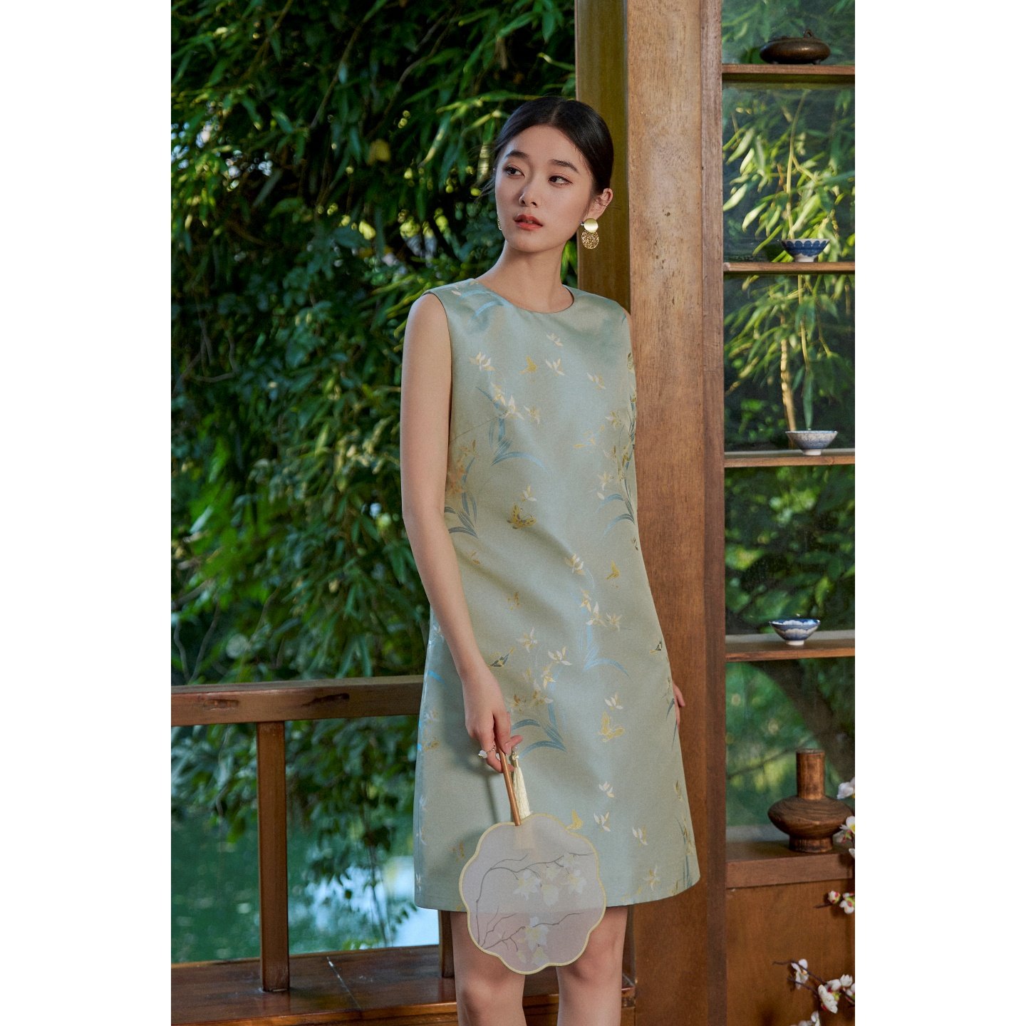 Xunyan Qian Xiaoping Orchid New Chinese Style Song Brocade Dress with Triple Weft