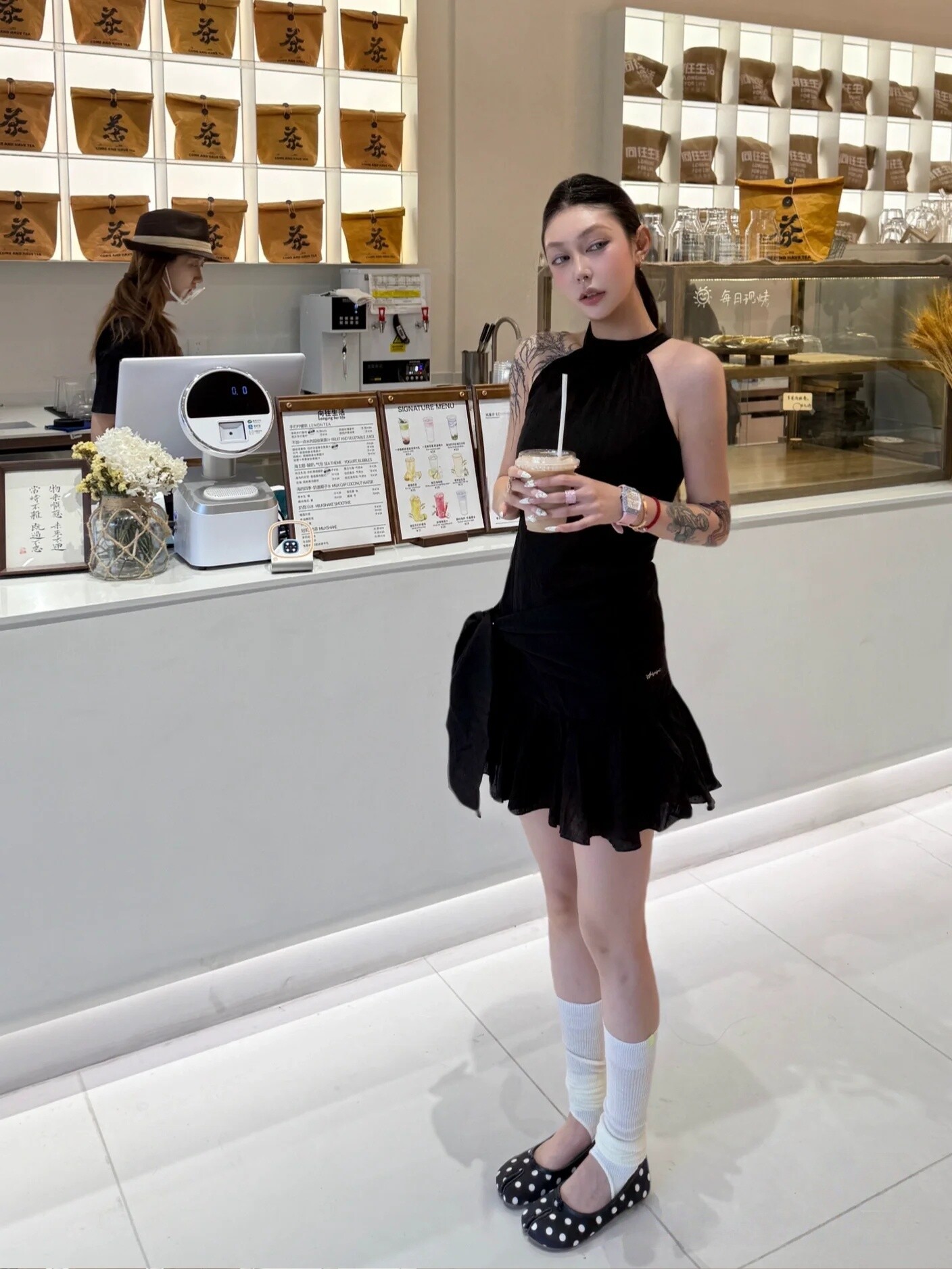 Jw Stylish Flamenco Retro Black and White Polka Dot Shoes Horseshoe Split-Toe Shoes Women's Spring and Summer Flats Shoes