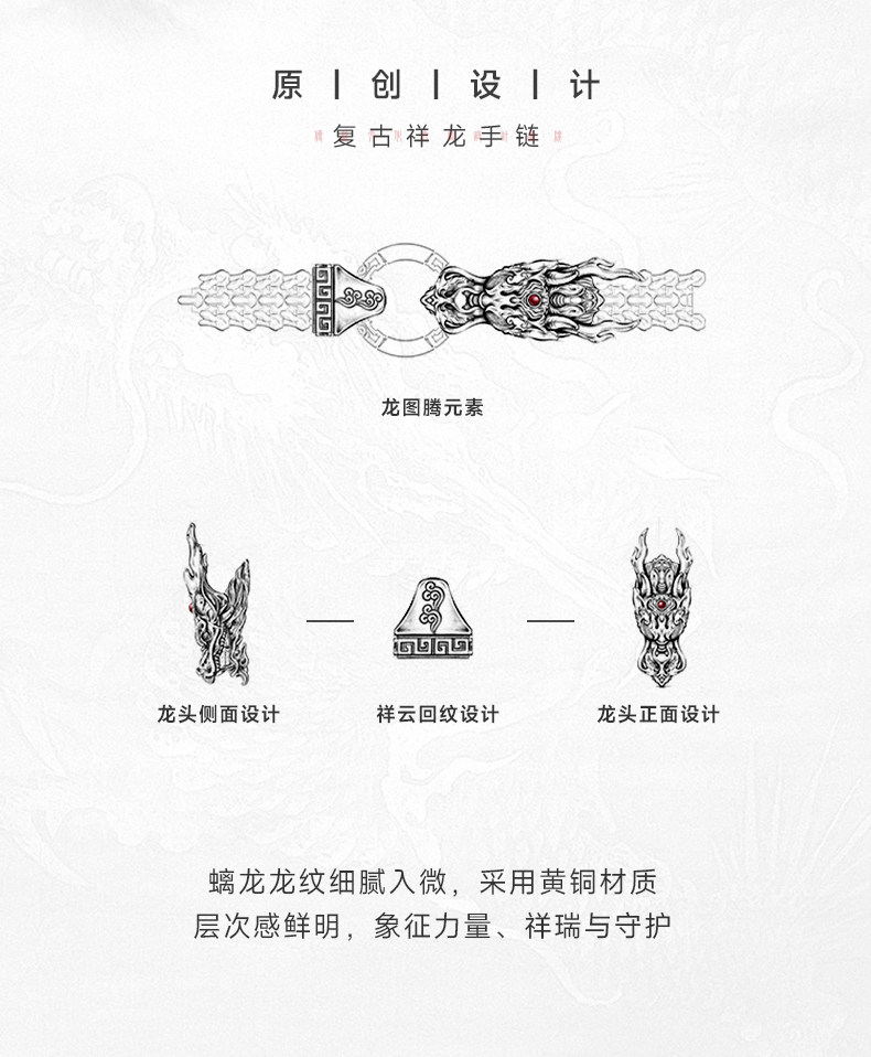 Yunchi Pure Silver Dragon Bracelet for Men, Chinese Style, National Trend, Niche Original Design, Retro Fashion, Versatile Hand Accessory
