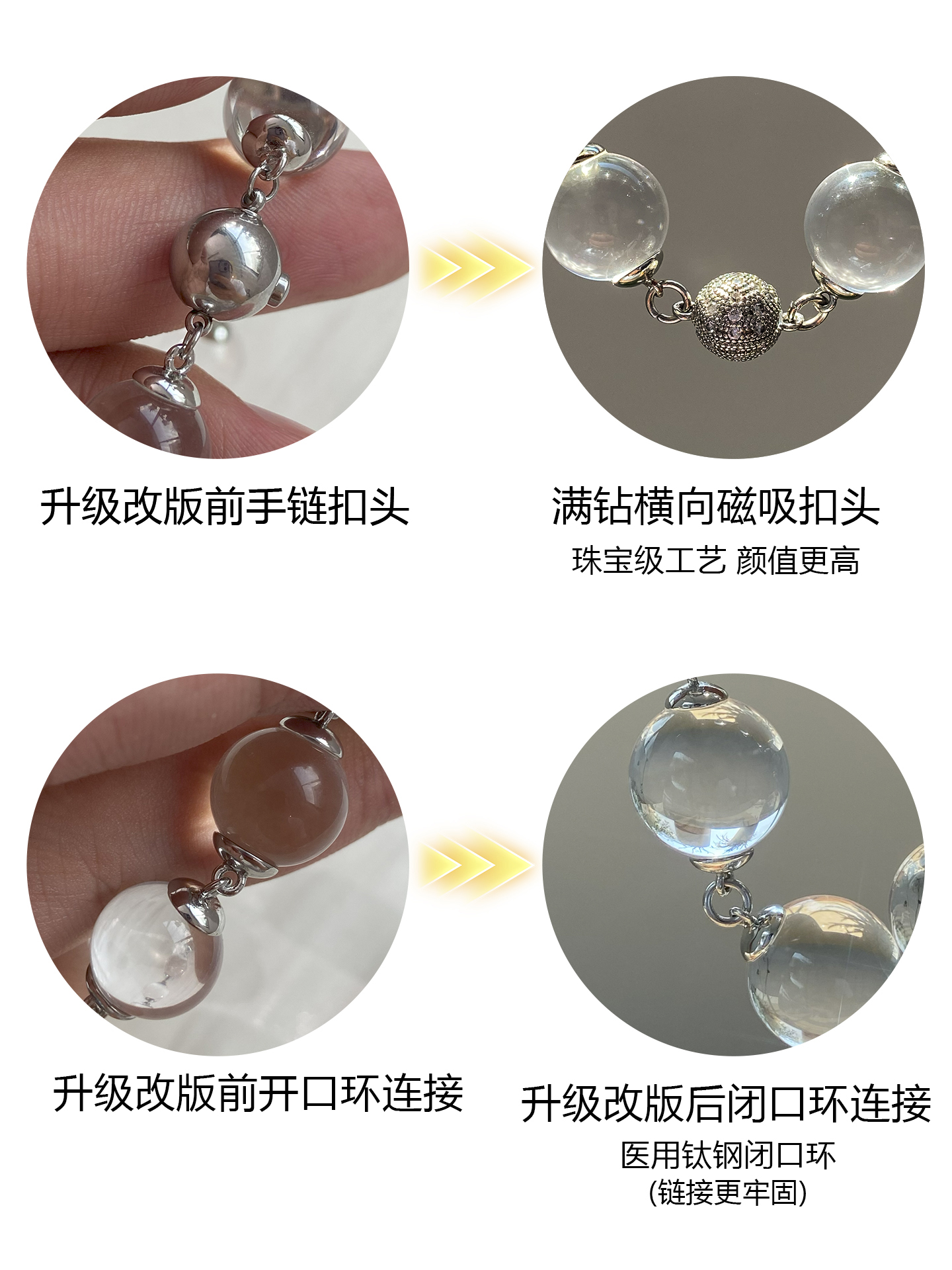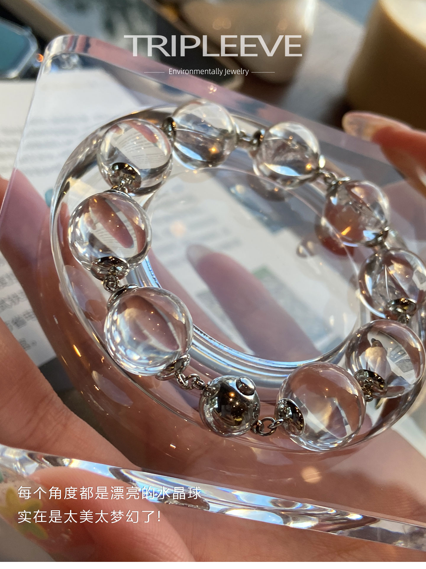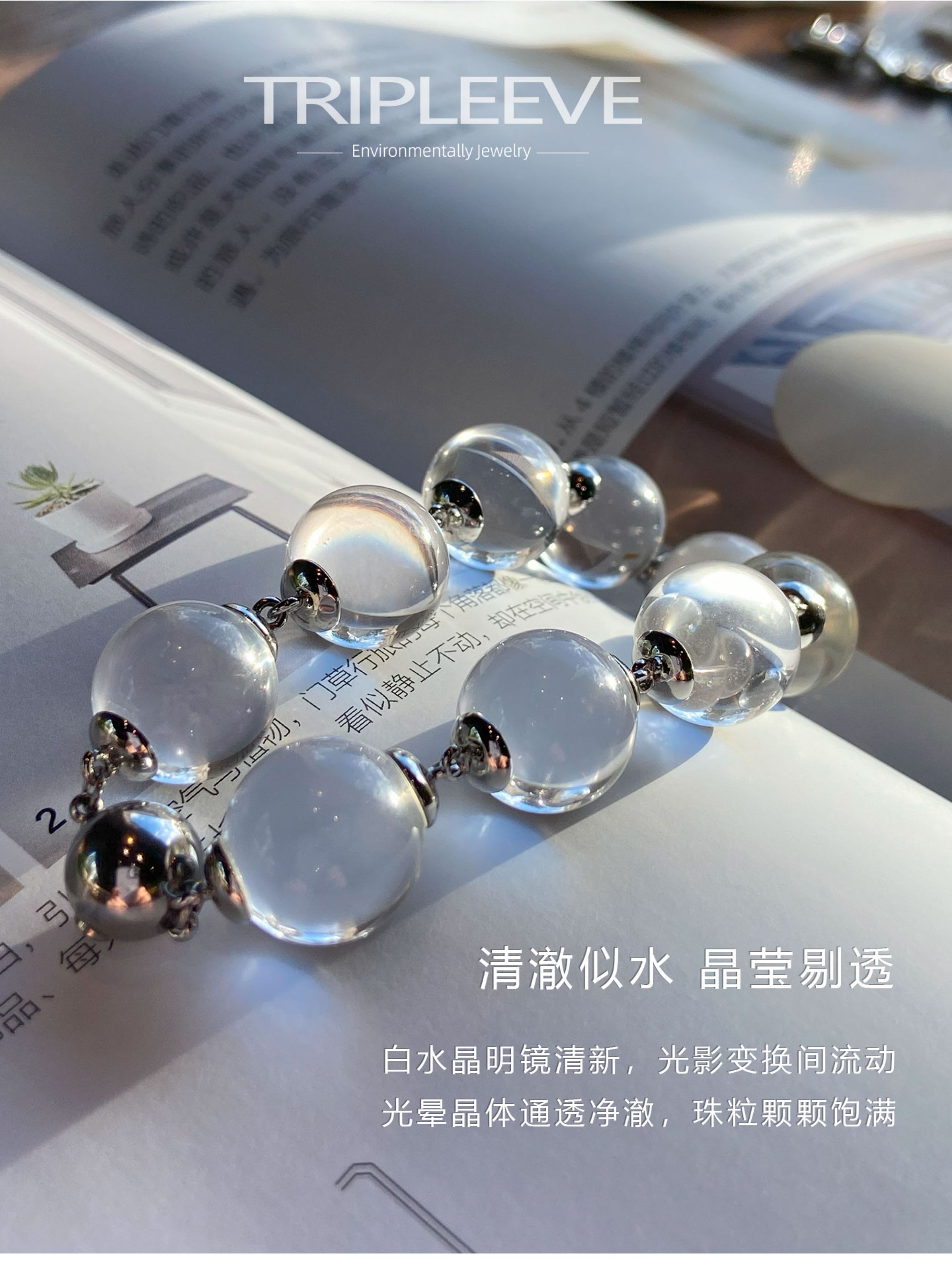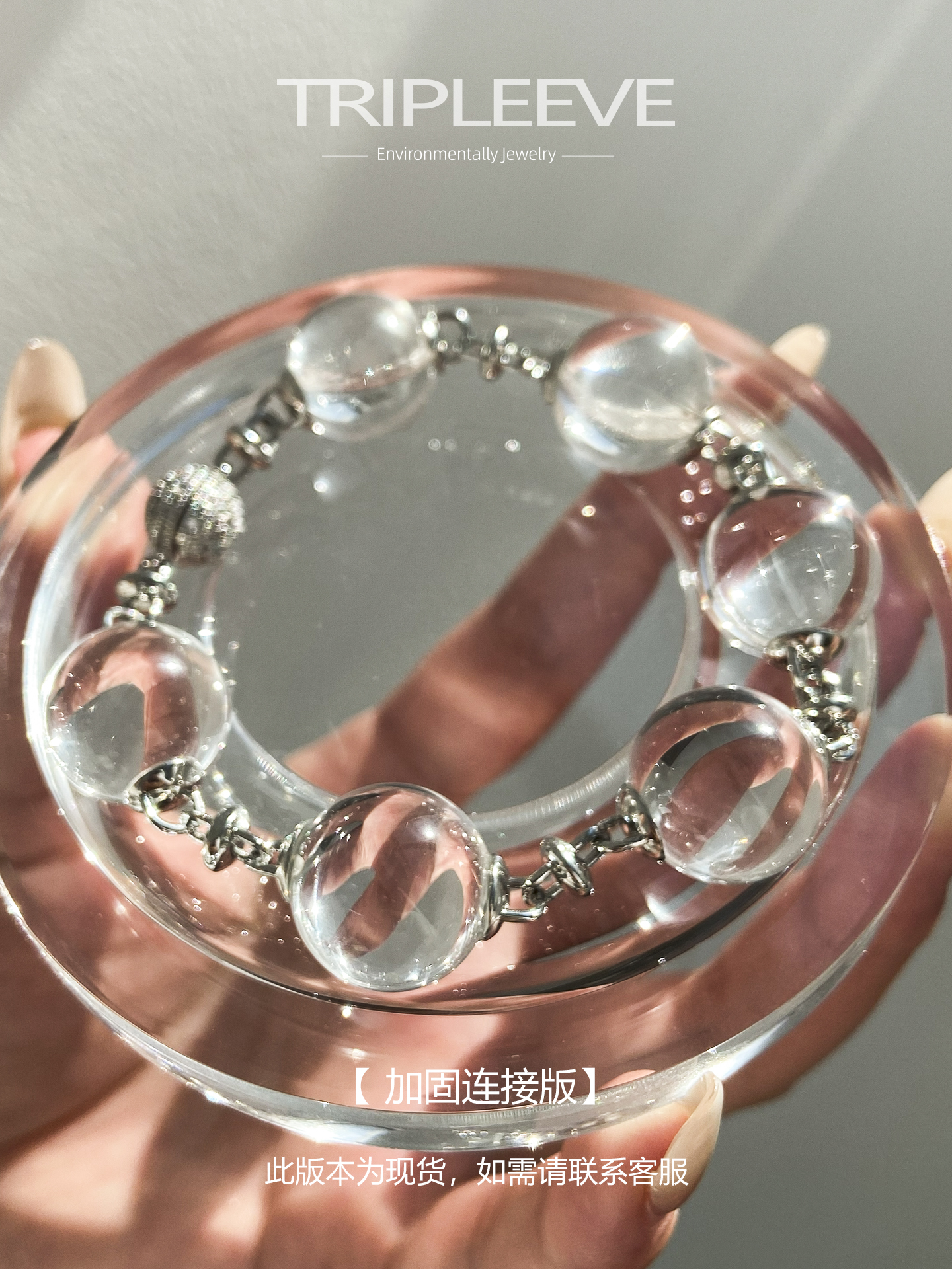 Emotional Stabilizer! Original Design White Crystal Bracelet, Fully Clear 8A Large Hole-Free Ox-Nose Crystal Ball