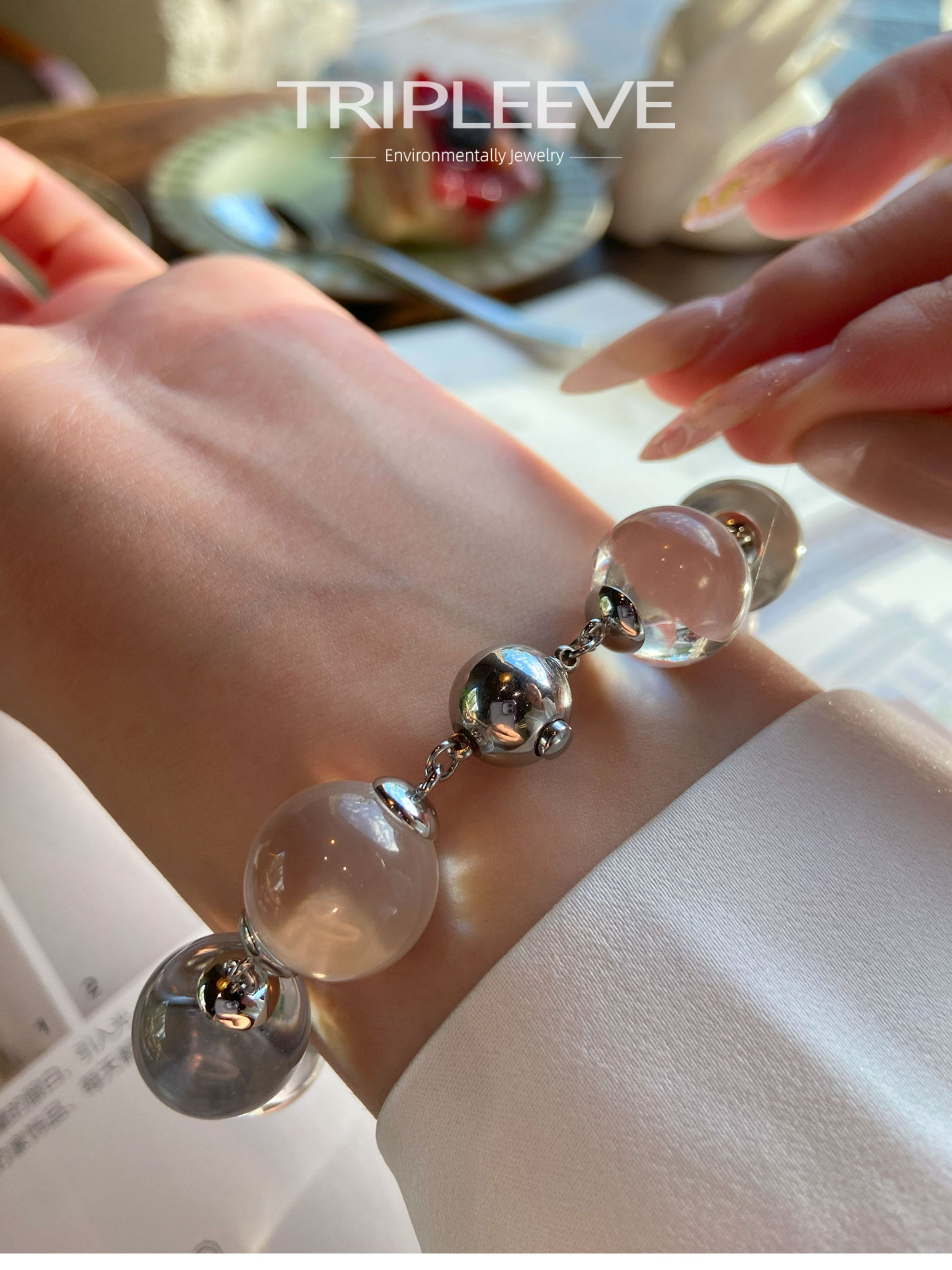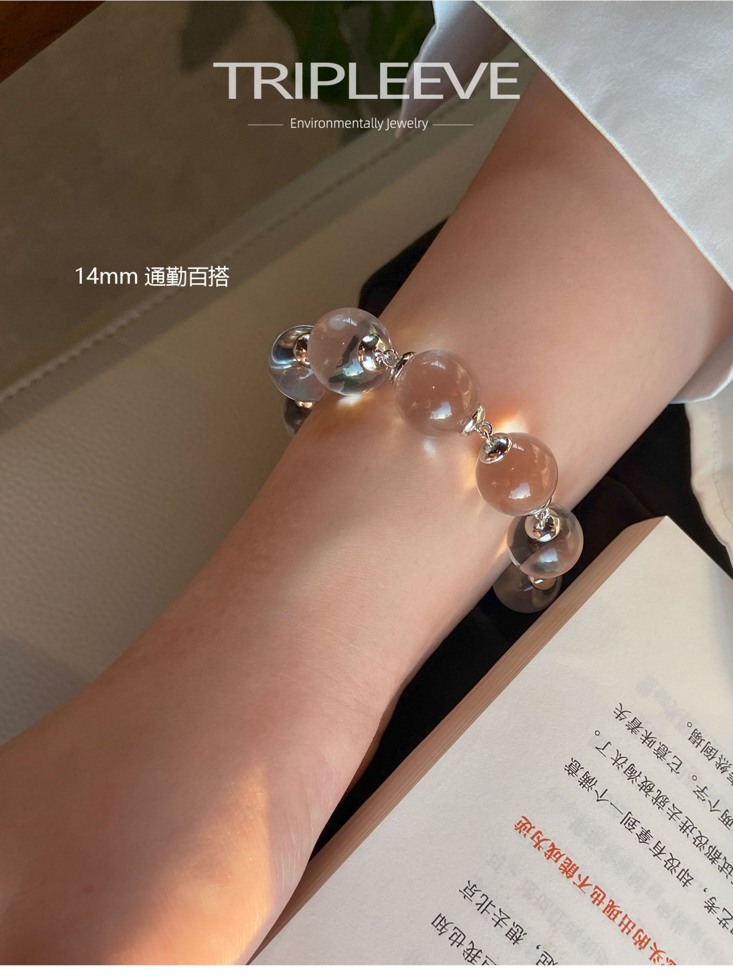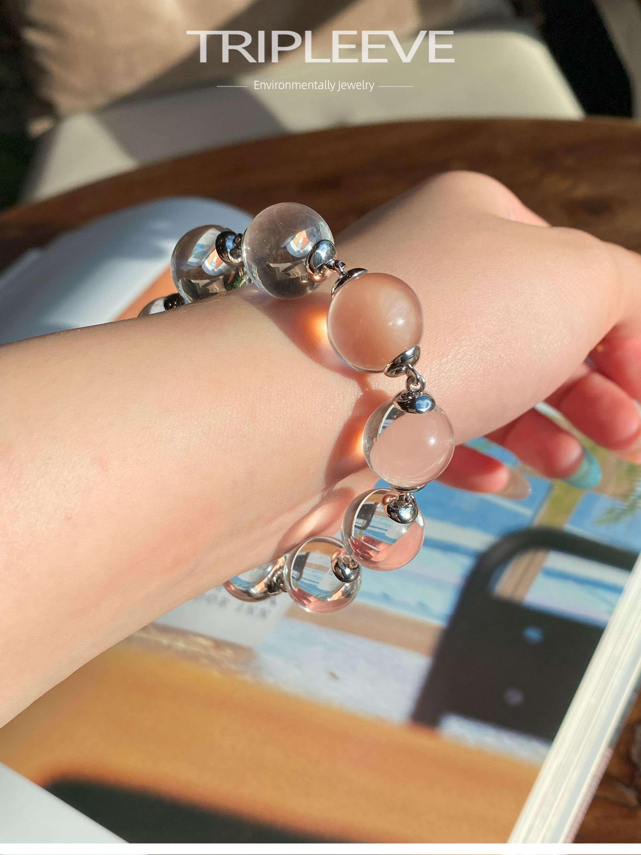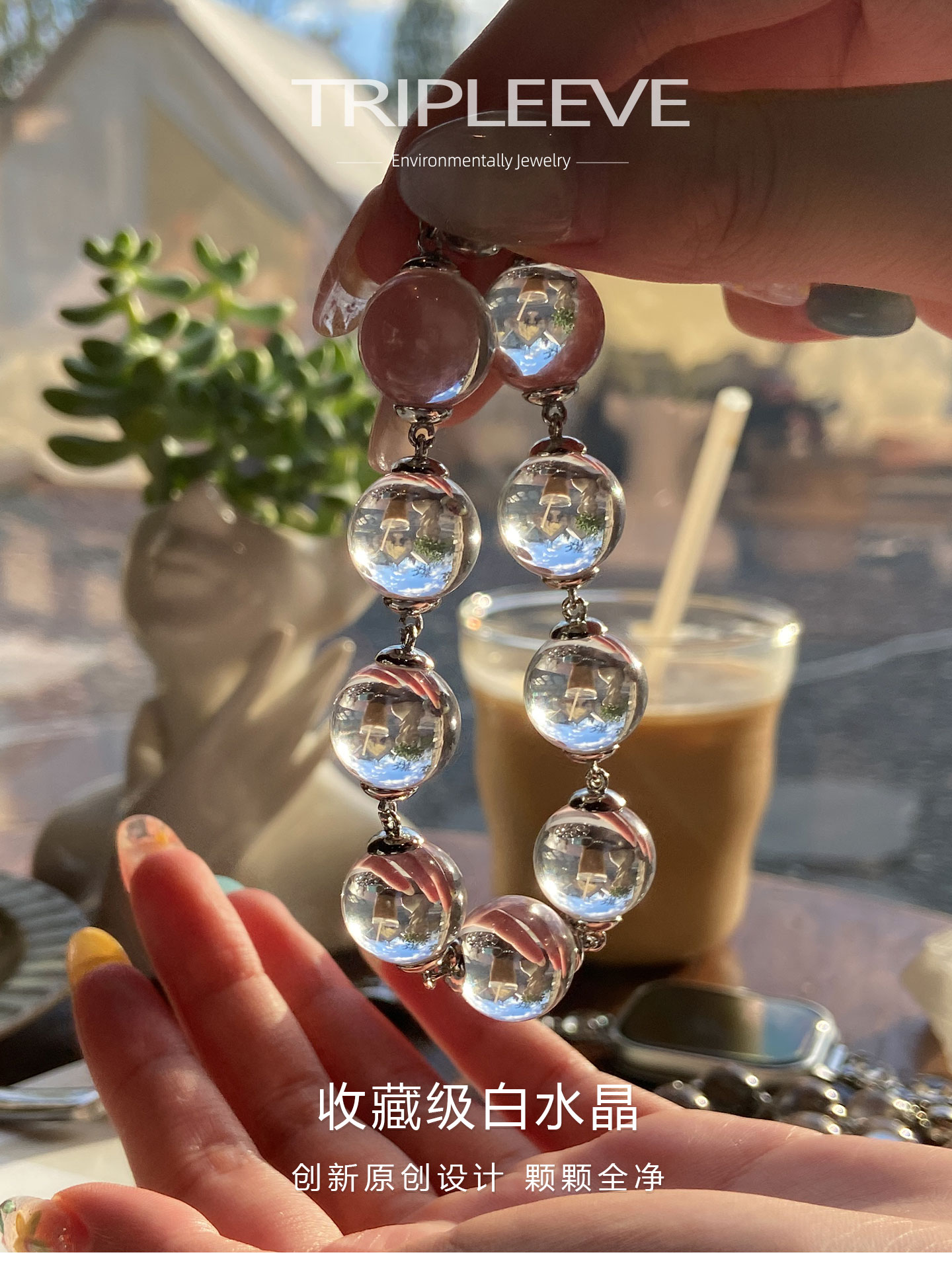 Emotional Stabilizer! Original Design White Crystal Bracelet, Fully Clear 8A Large Hole-Free Ox-Nose Crystal Ball