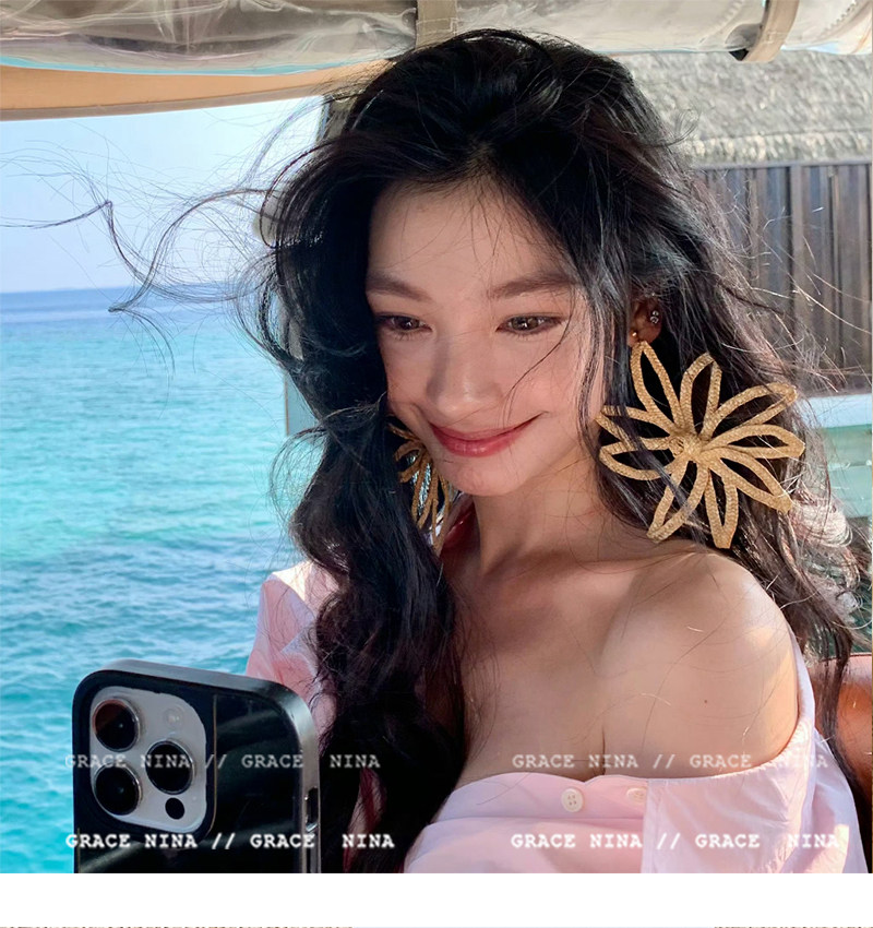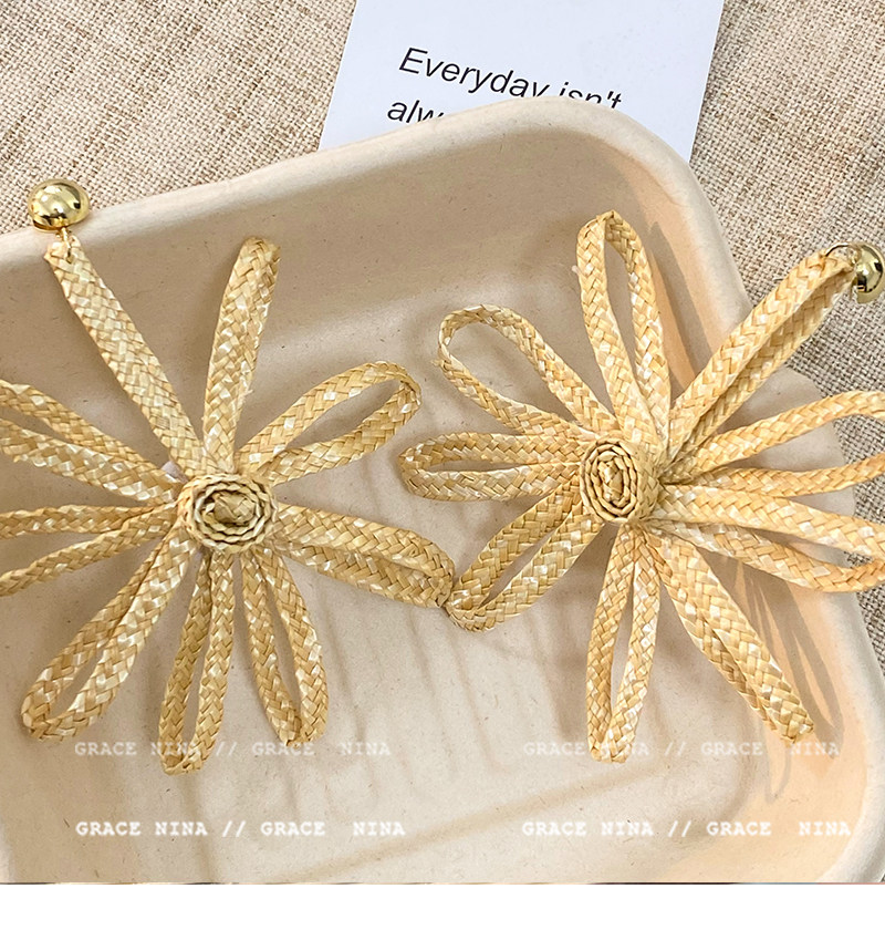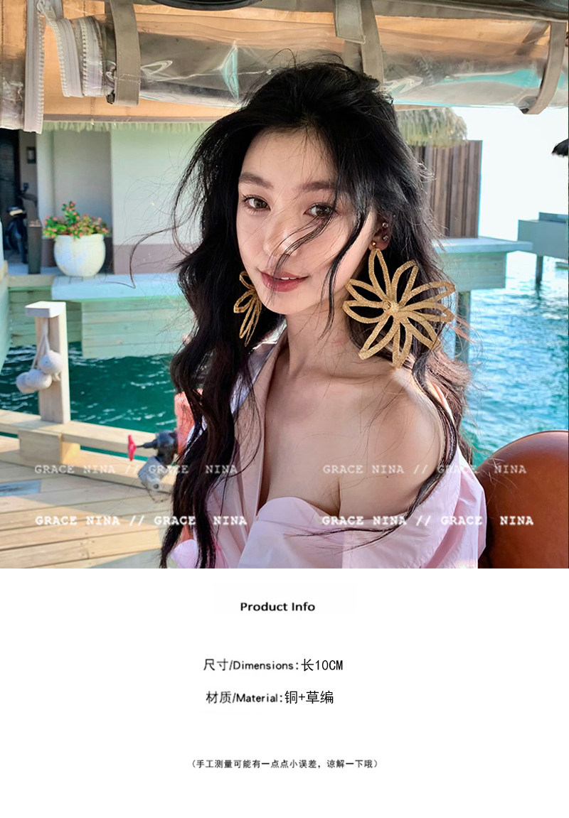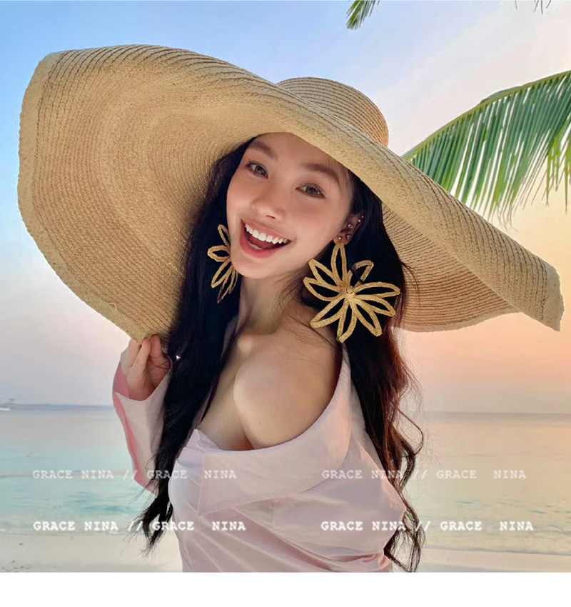 Island Vacation! Yi Mengling's Same Style Straw Flower Earrings for Women, Exaggerated Earrings, Vacation Style Seaside Accessories, Ear Studs