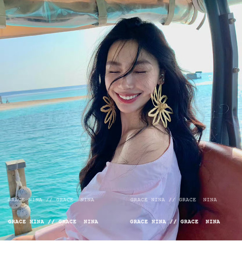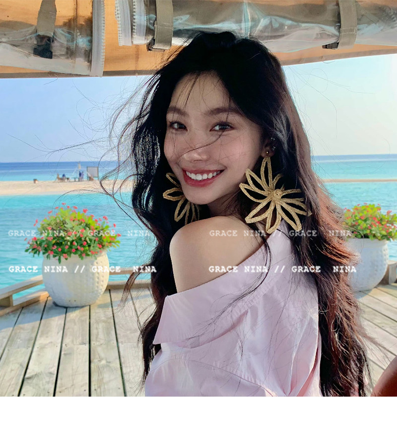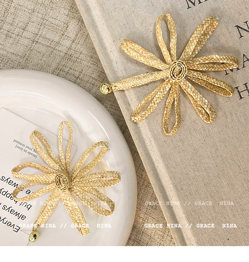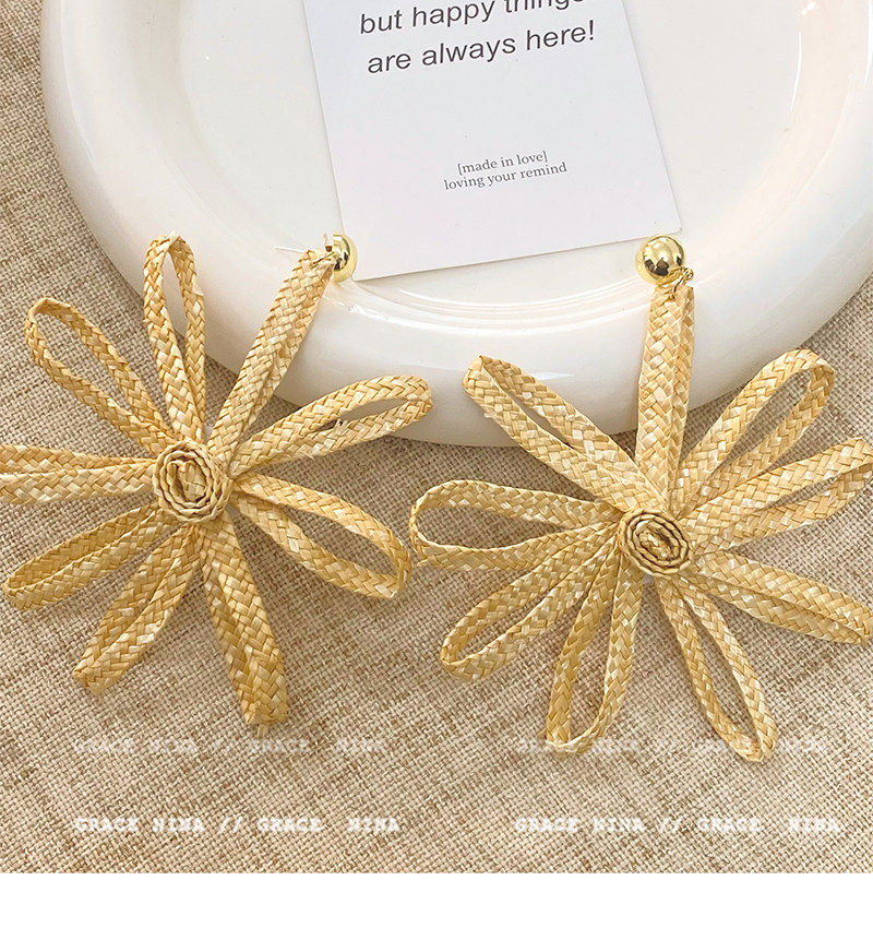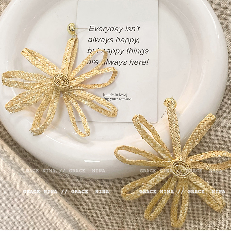 Island Vacation! Yi Mengling's Same Style Straw Flower Earrings for Women, Exaggerated Earrings, Vacation Style Seaside Accessories, Ear Studs