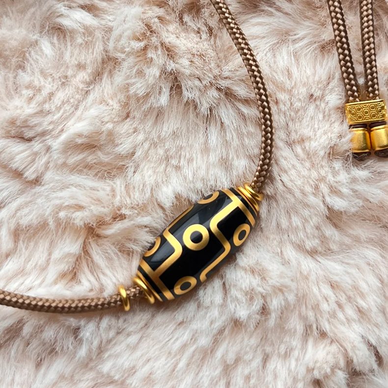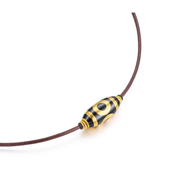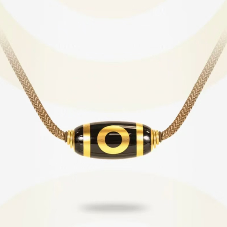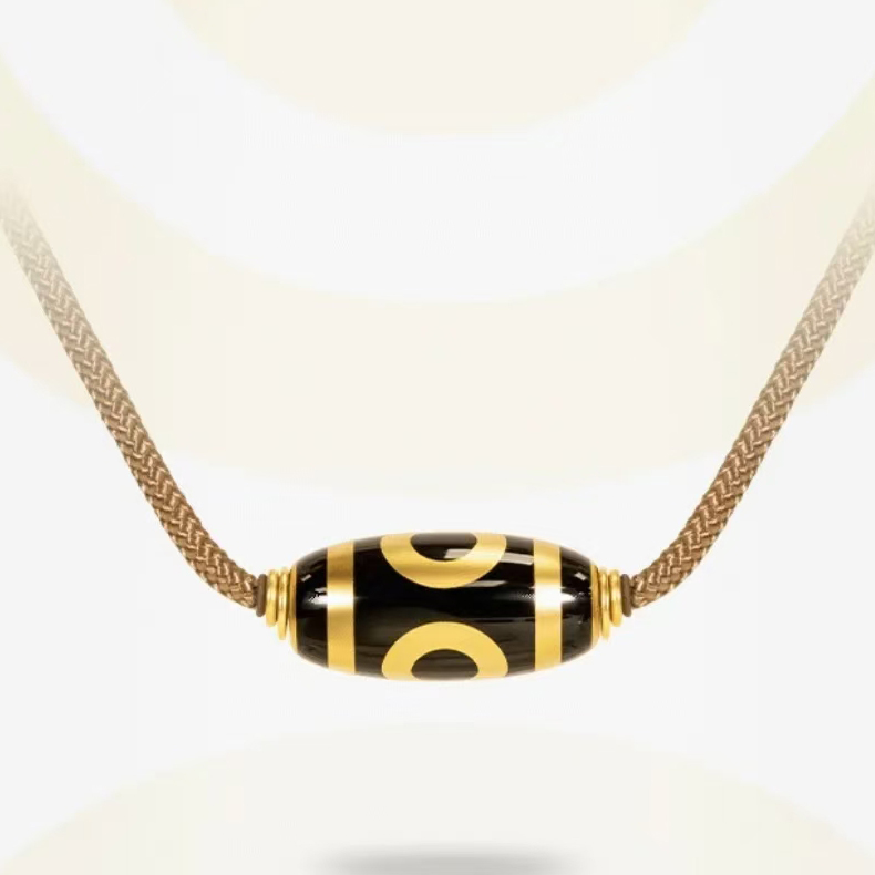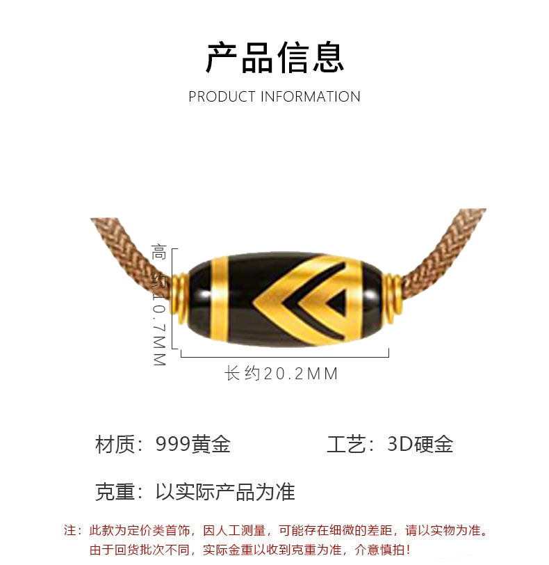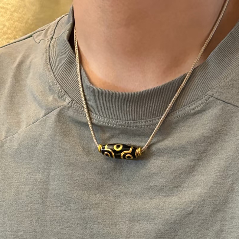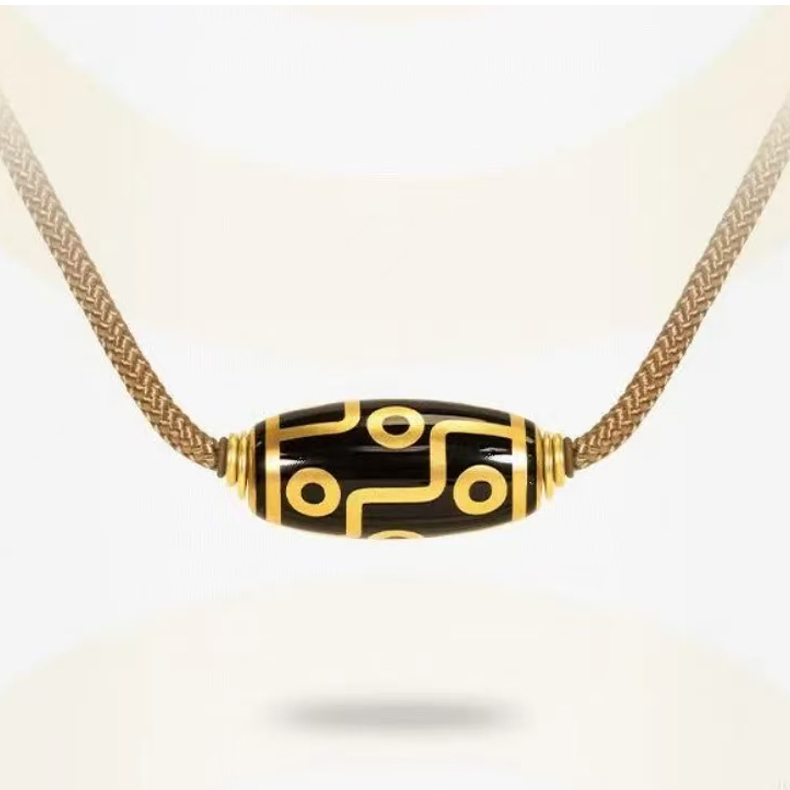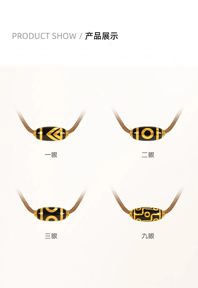 999 Pure Gold Nine-Eyed Dzi Bead Necklace, Six-Eyed Pendant, One-Eye Two-Eye Cylindrical Bead, Ancient Enamel Three-Eyed Fortune Bead for Men
