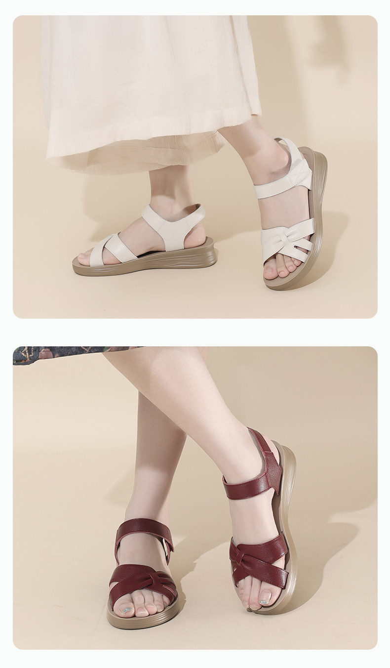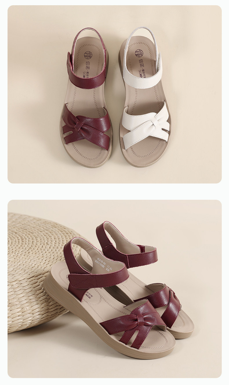Cigna Burgundy Mom Sandals 2025 New Summer Style Comfortable Soft-Soled Elderly Shoes Genuine Leather Women's Shoes Beach Shoes