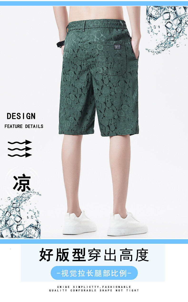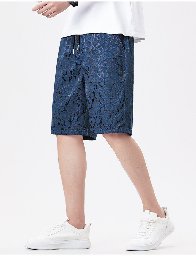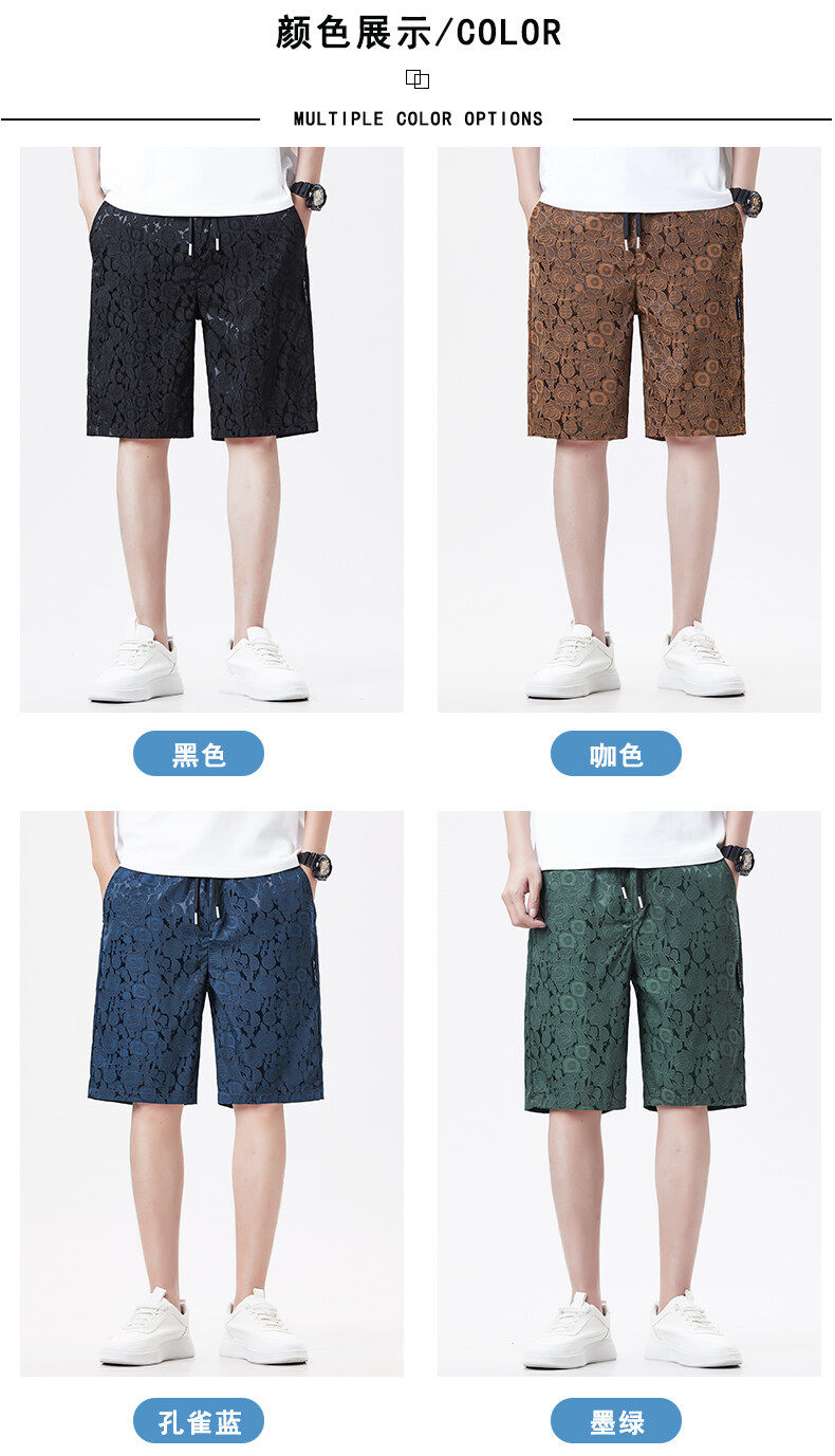 Men's Ice Silk Jacquard Shorts, Summer Casual Fashion Thin Shorts, Straight-Leg Versatile Loose Breathable Beach Shorts