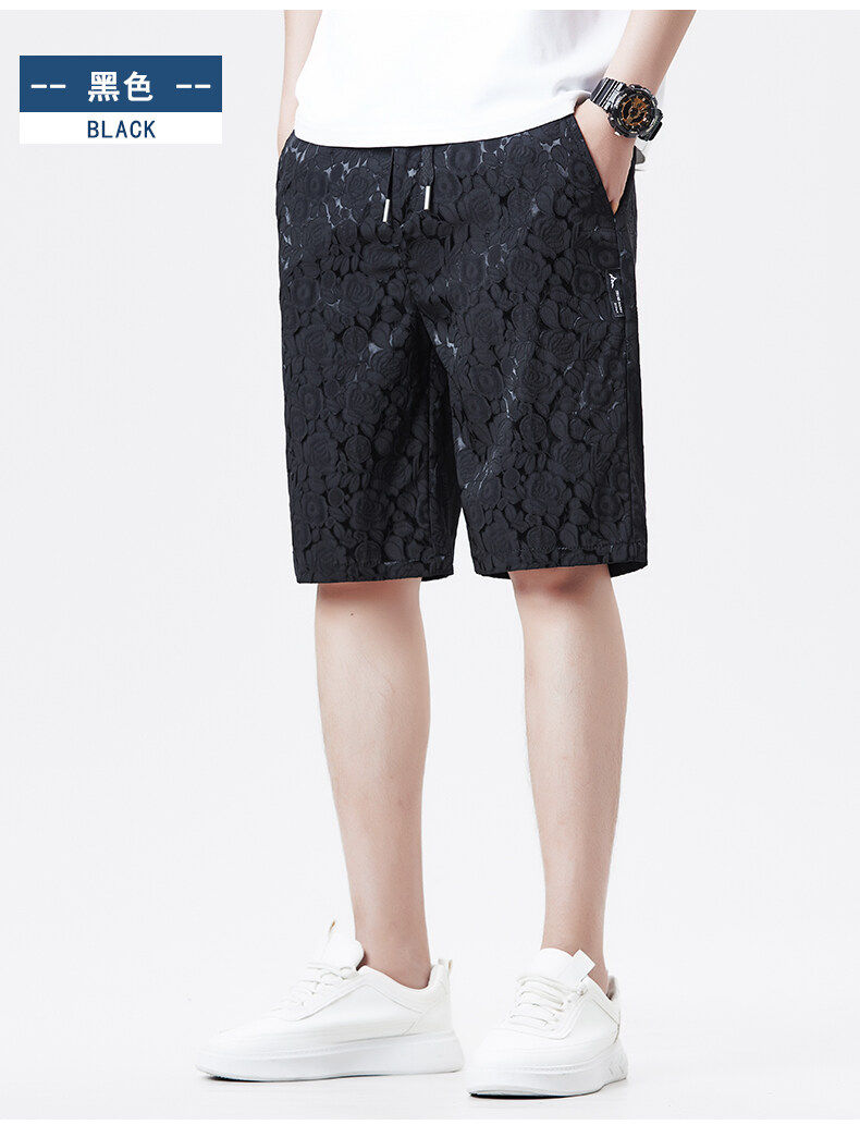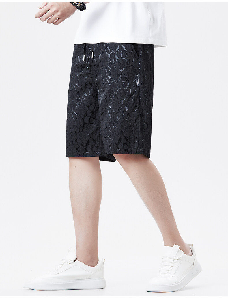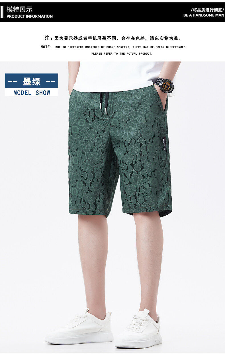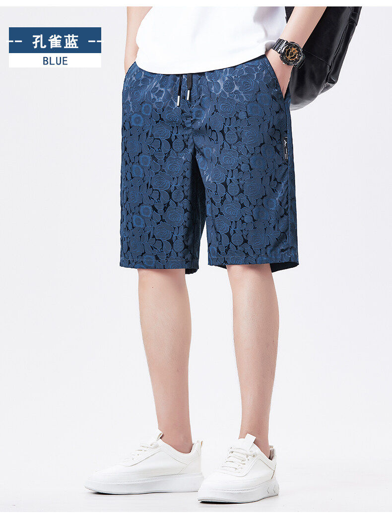 Men's Ice Silk Jacquard Shorts, Summer Casual Fashion Thin Shorts, Straight-Leg Versatile Loose Breathable Beach Shorts
