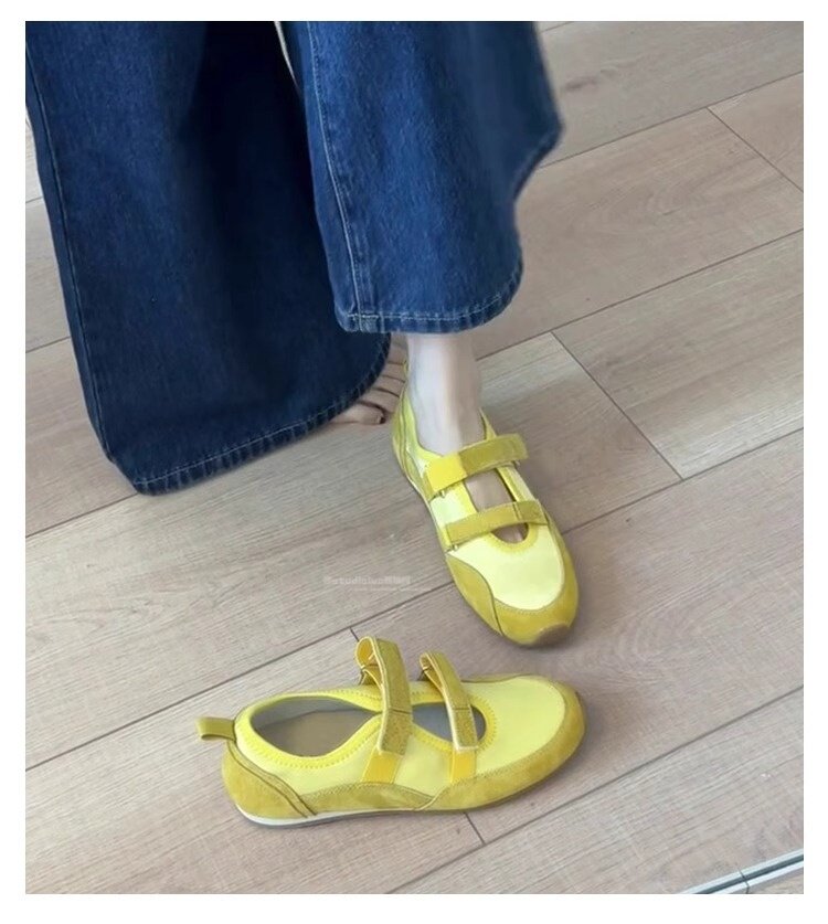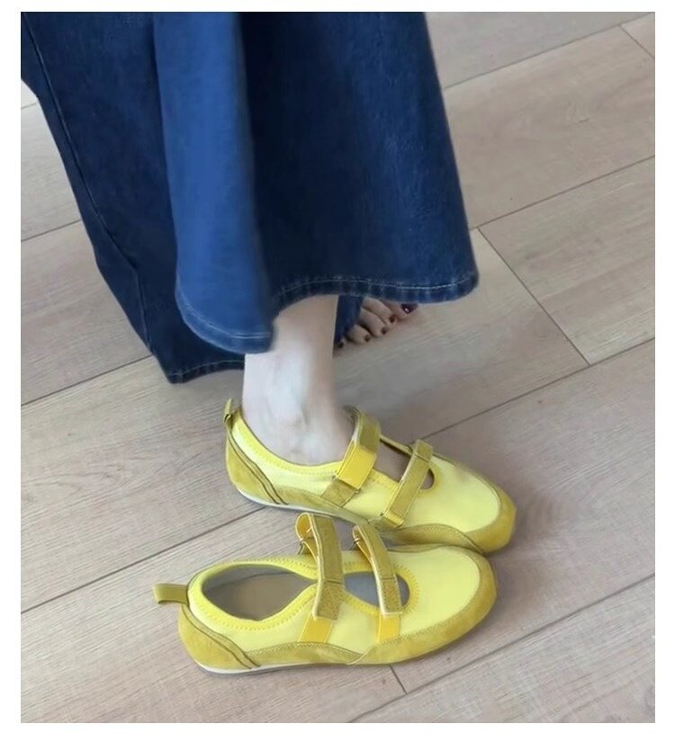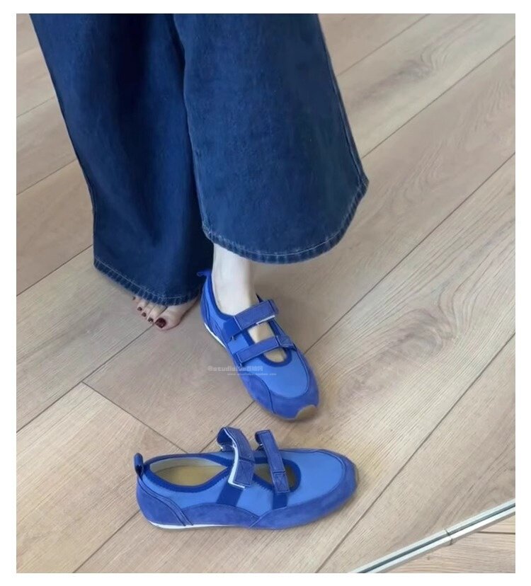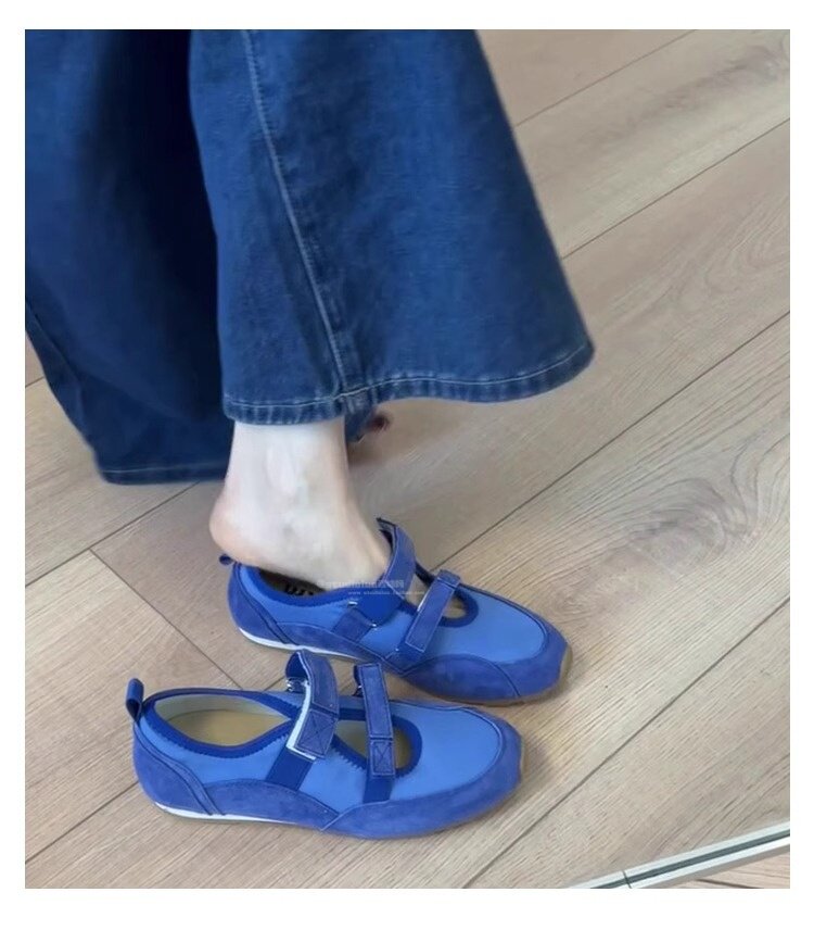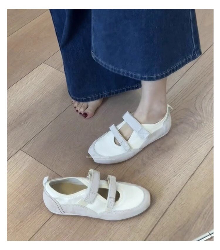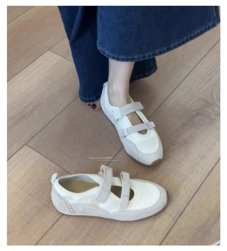 Hong Kong Hollow Flat Shoes for Women 2026 Summer New Ballet Style Versatile Mary Jane Shoes with Velcro Casual Shoes