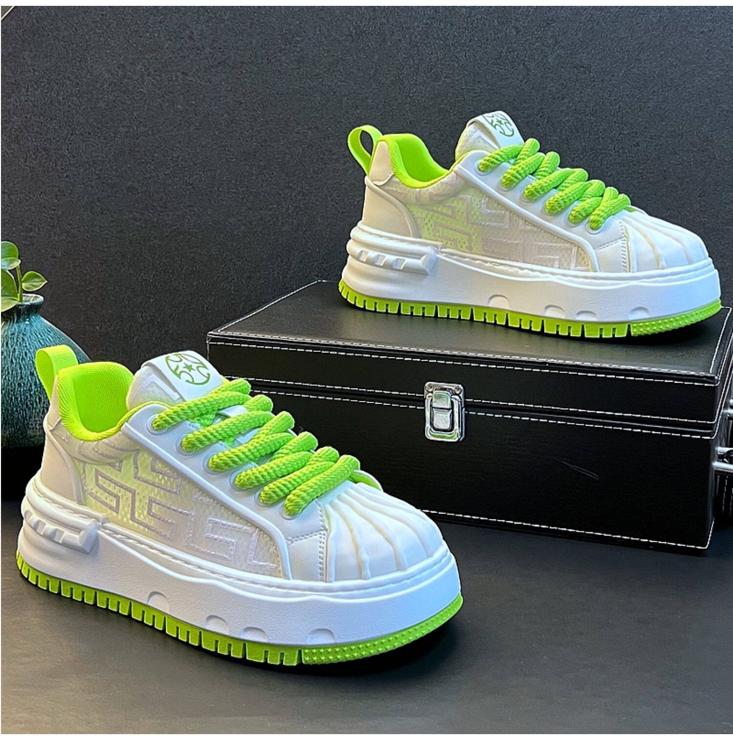 Breathable Mesh Panel Shoes for Men 2025 Summer White Shoes Korean Style Trendy Green Casual Shoes Fashionable Versatile Men's Shoes