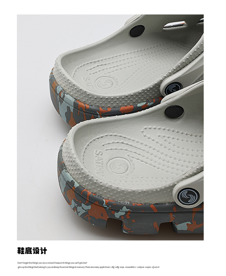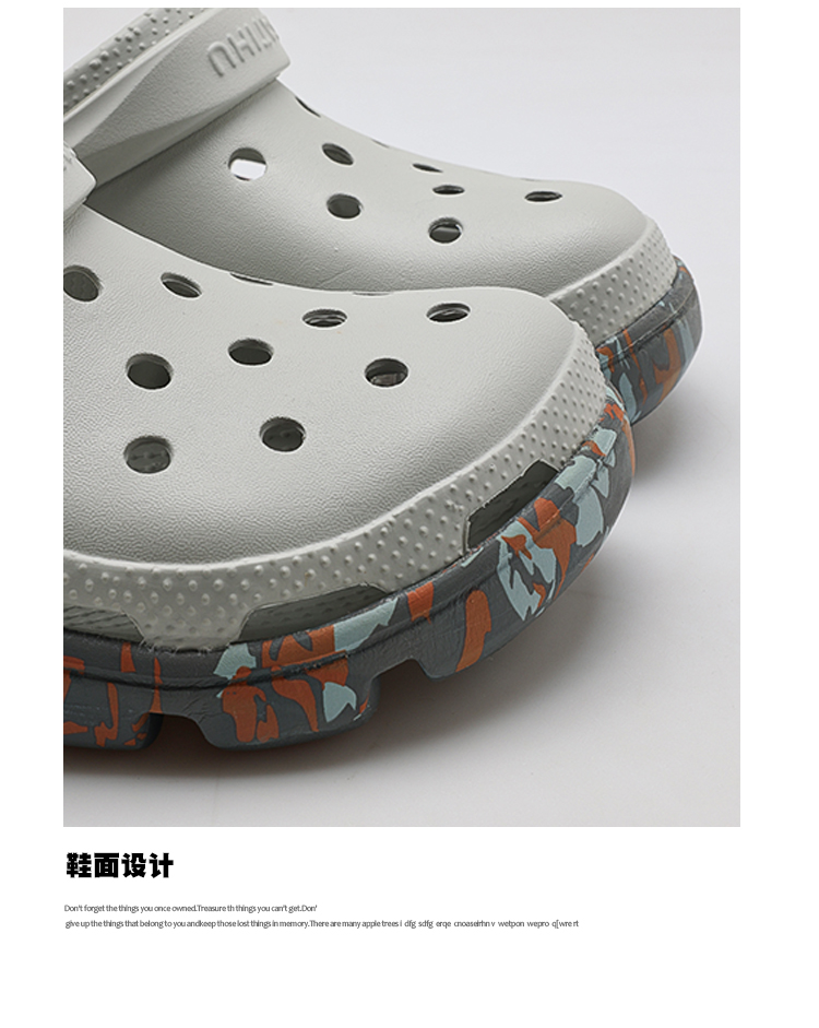 Longing for Life Croc Shoes Men's Outdoor Beach Shoes Non-Slip Soft Sole Large Size Closed-Toe Slippers Couple's Summer Sandals