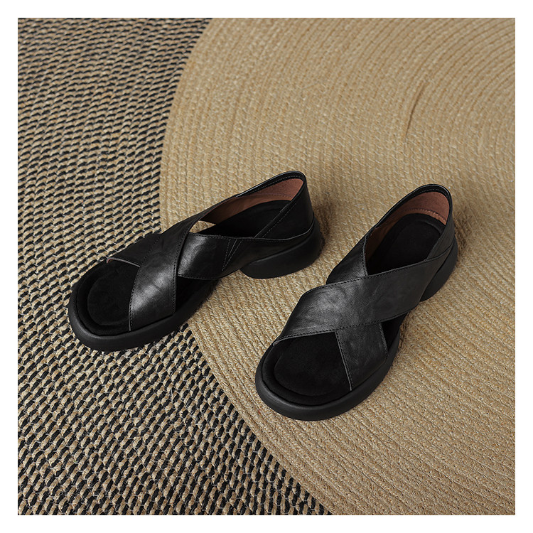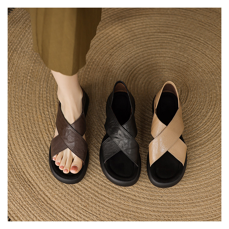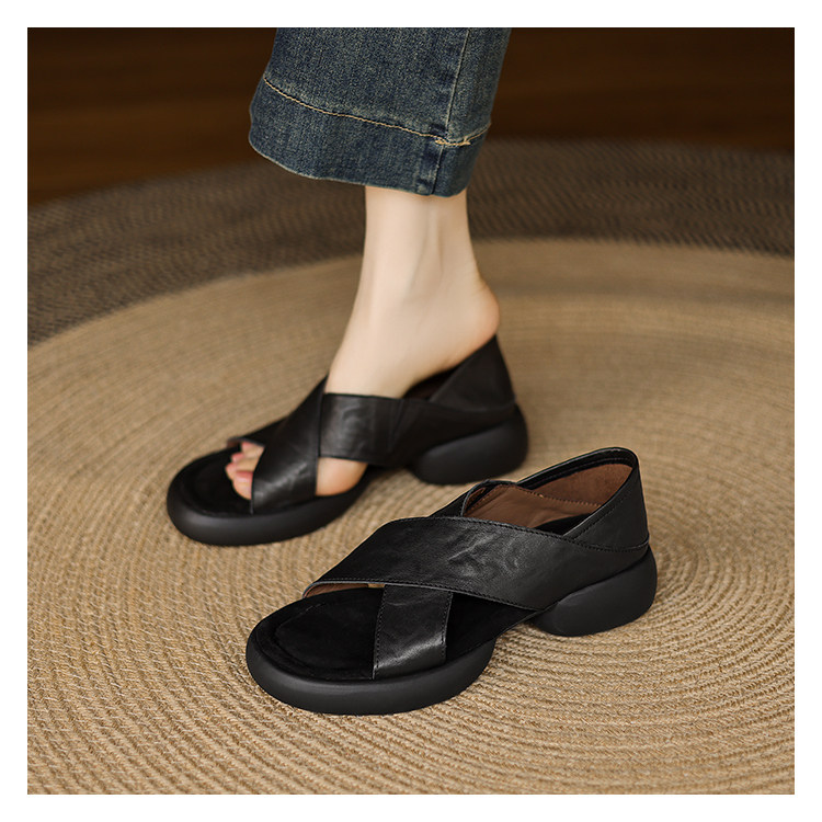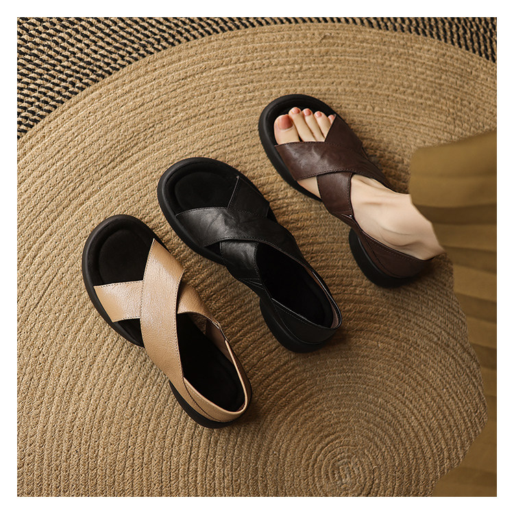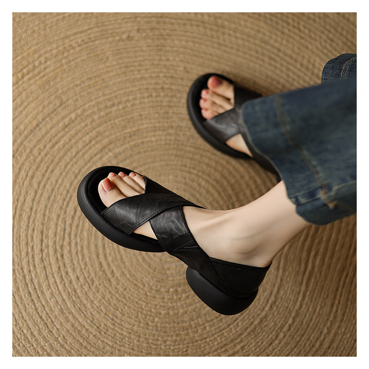 Genuine Leather Thick-Soled Heeled Sandals for Women 2025 Summer New Style, Suitable for Outdoor Wear, Soft Sole, Comfortable for Work, Non-Tiring for Feet, Pairs Well with Skirts, Non-Slip