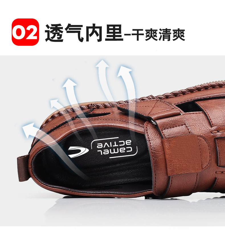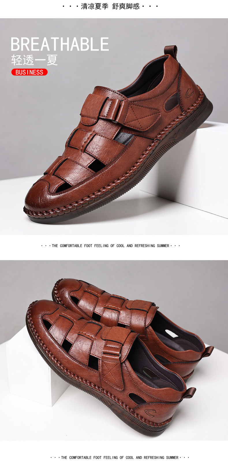 German Camel Dynamic Sandals for Men, Summer Genuine Leather Breathable Perforated Shoes, Soft Rubber Sole, Middle-Aged Dad Shoes