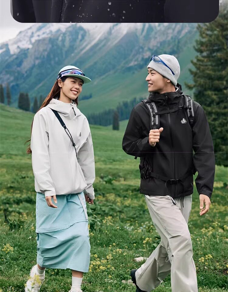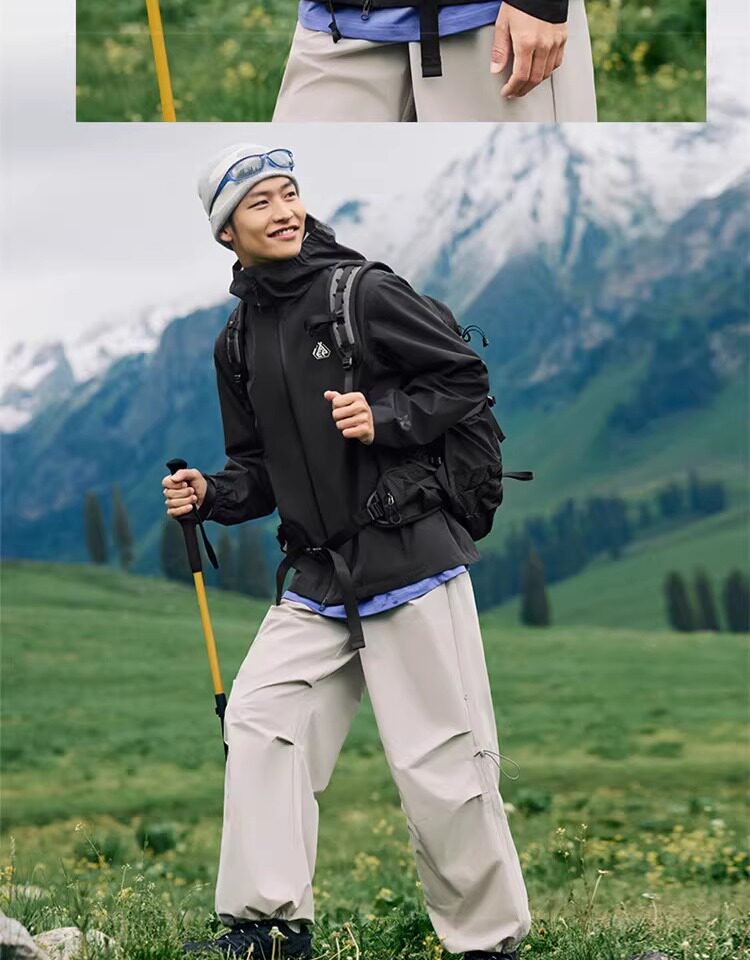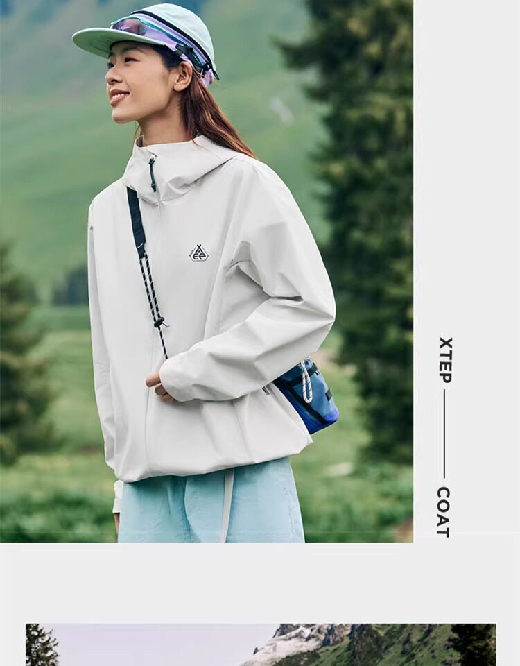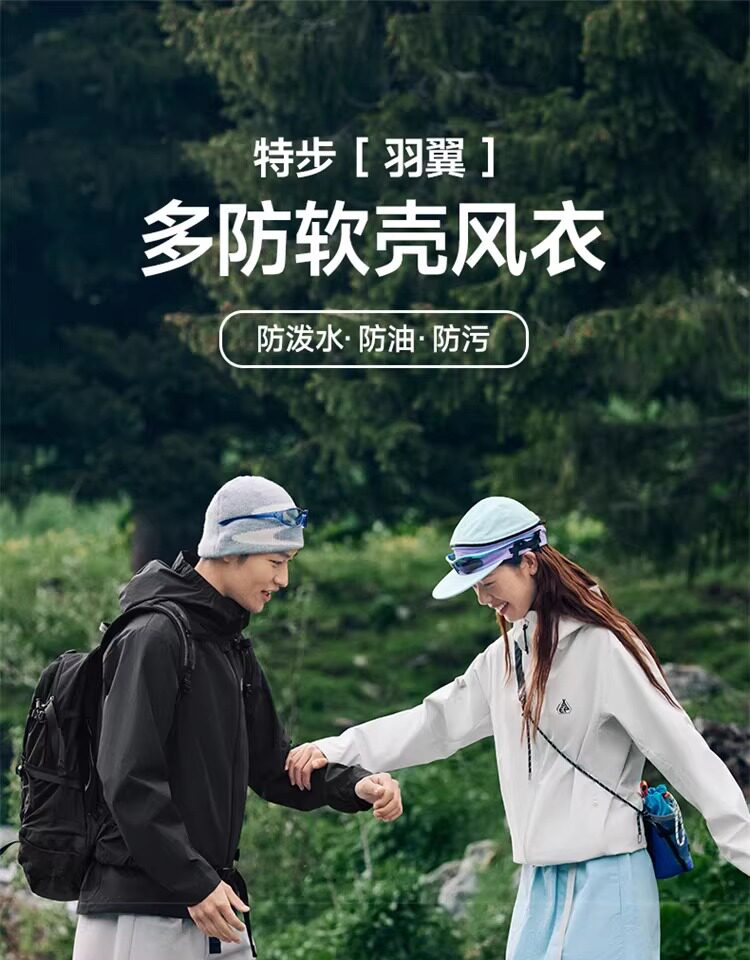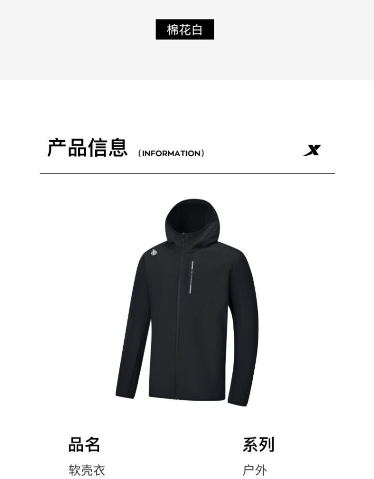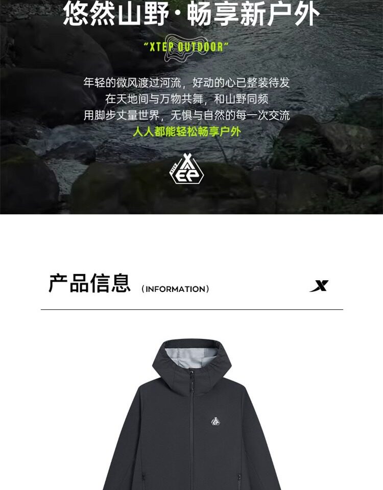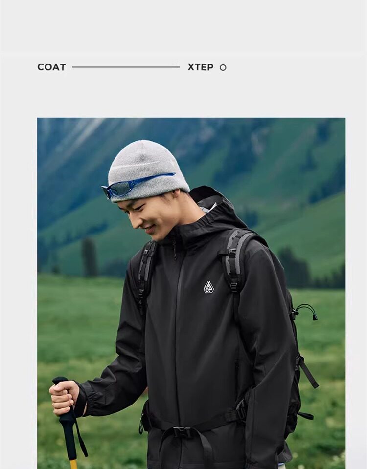 Xtep Wing Soft Shell Jacket for Men and Women, Outdoor Water-Repellent Fleece-Lined Coat, Couple's Hiking Windproof Hooded Jacket