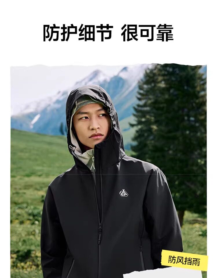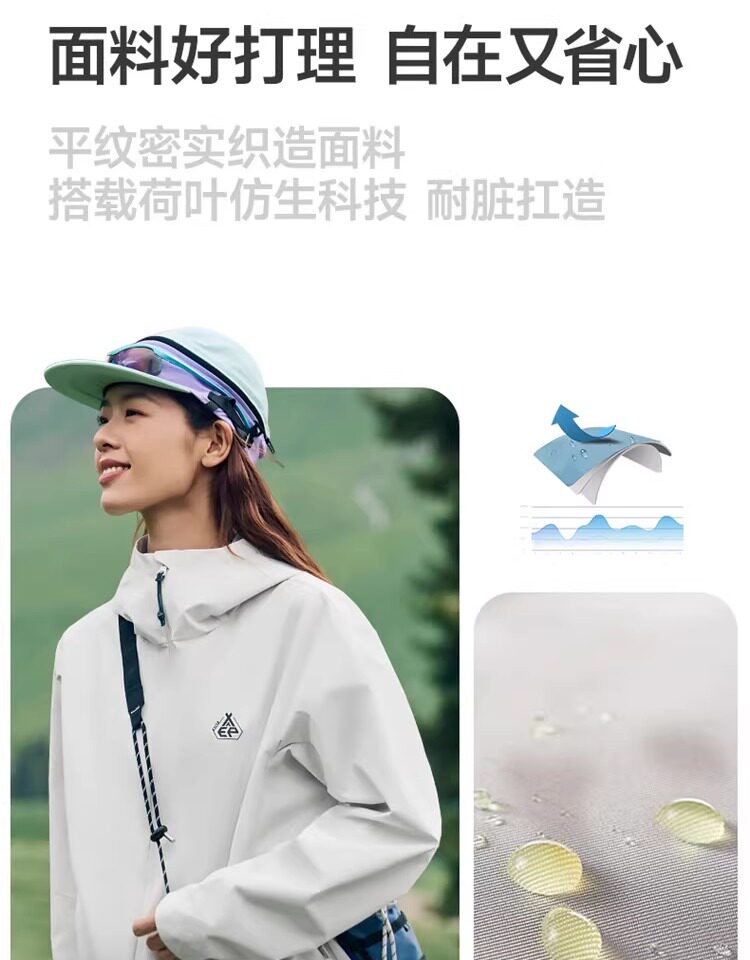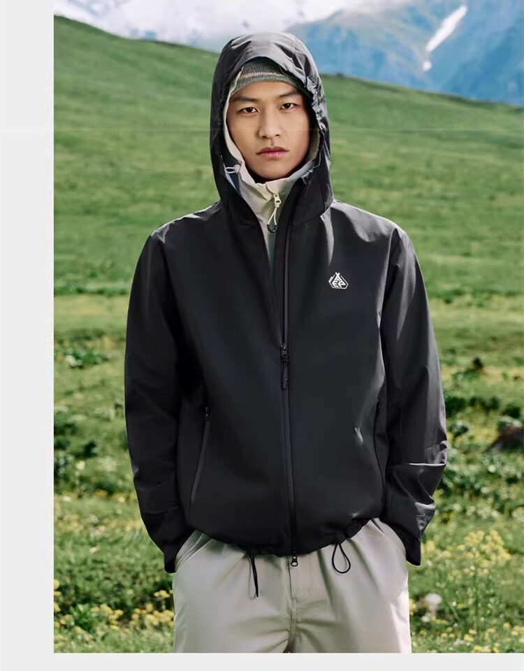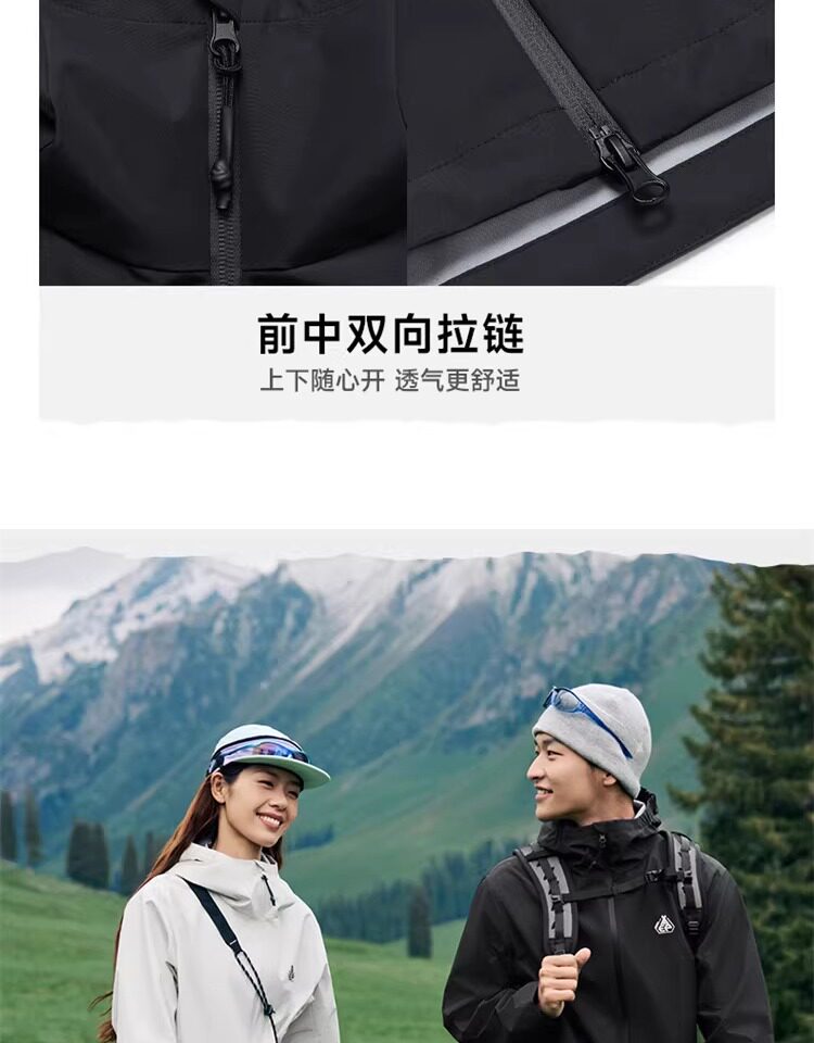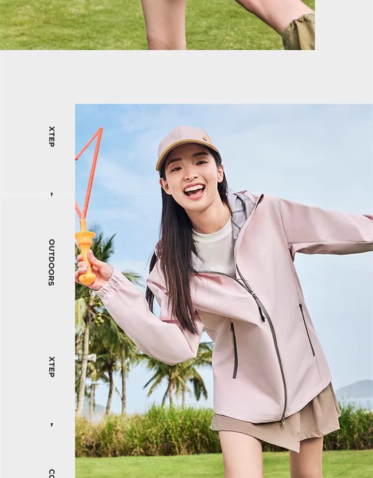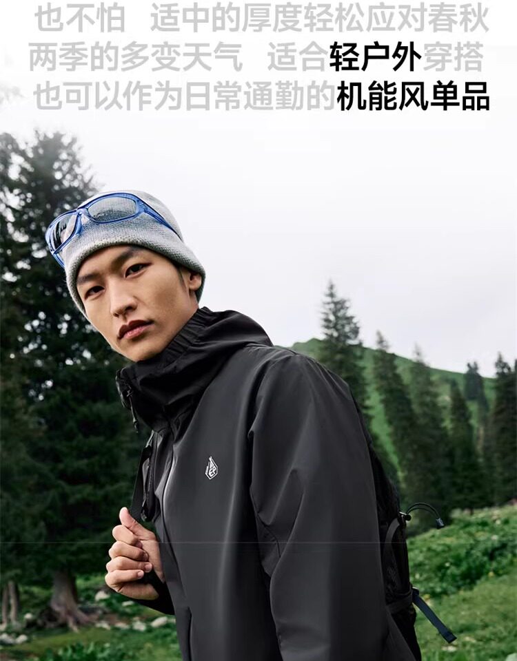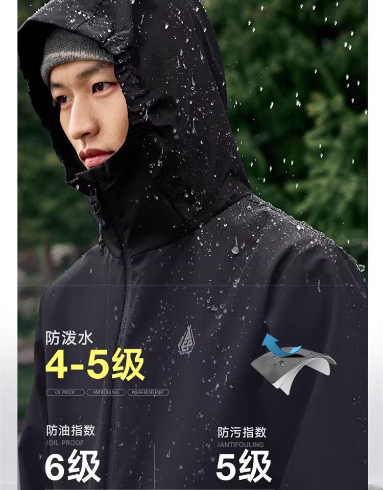 Xtep Wing Soft Shell Jacket for Men and Women, Outdoor Water-Repellent Fleece-Lined Coat, Couple's Hiking Windproof Hooded Jacket