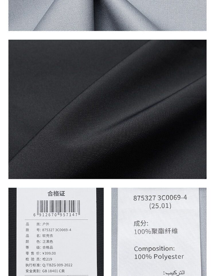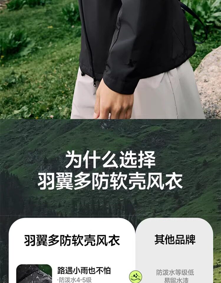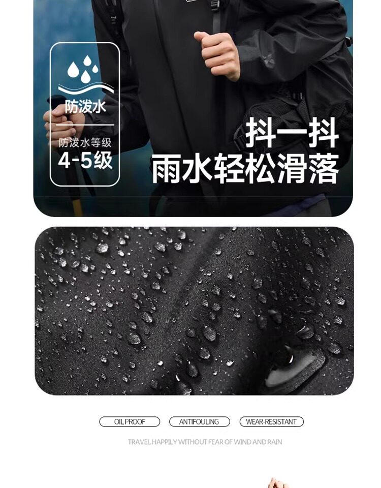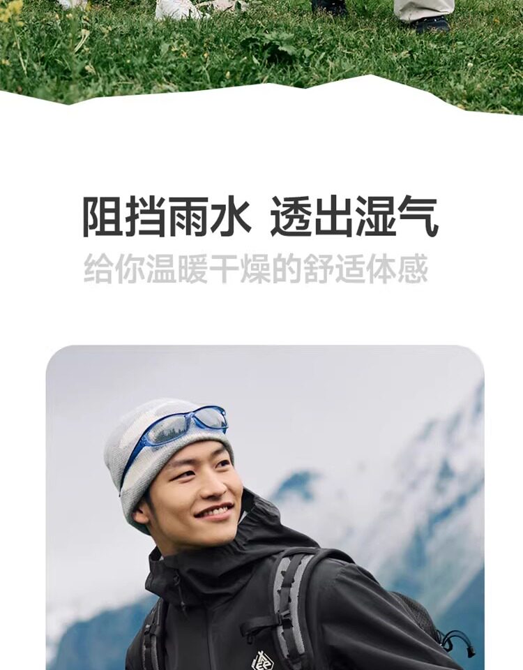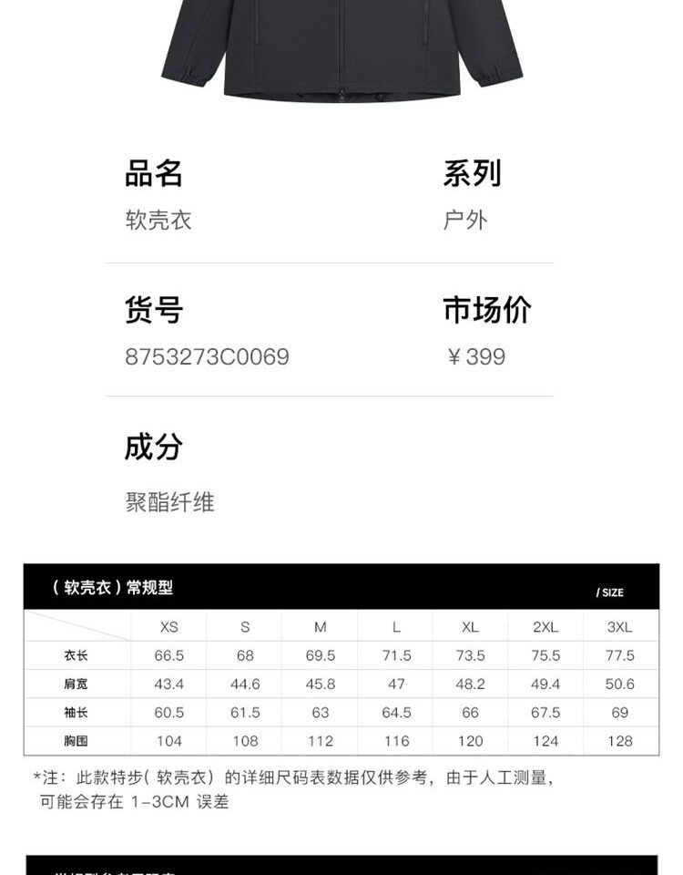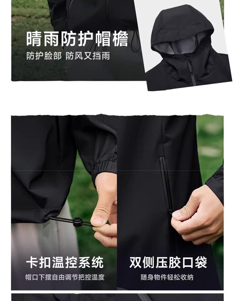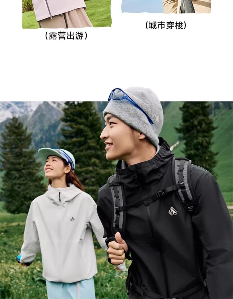 Xtep Wing Soft Shell Jacket for Men and Women, Outdoor Water-Repellent Fleece-Lined Coat, Couple's Hiking Windproof Hooded Jacket