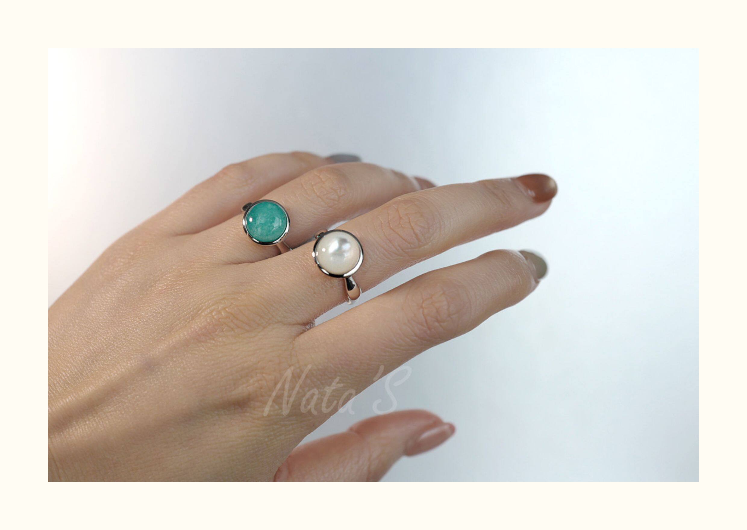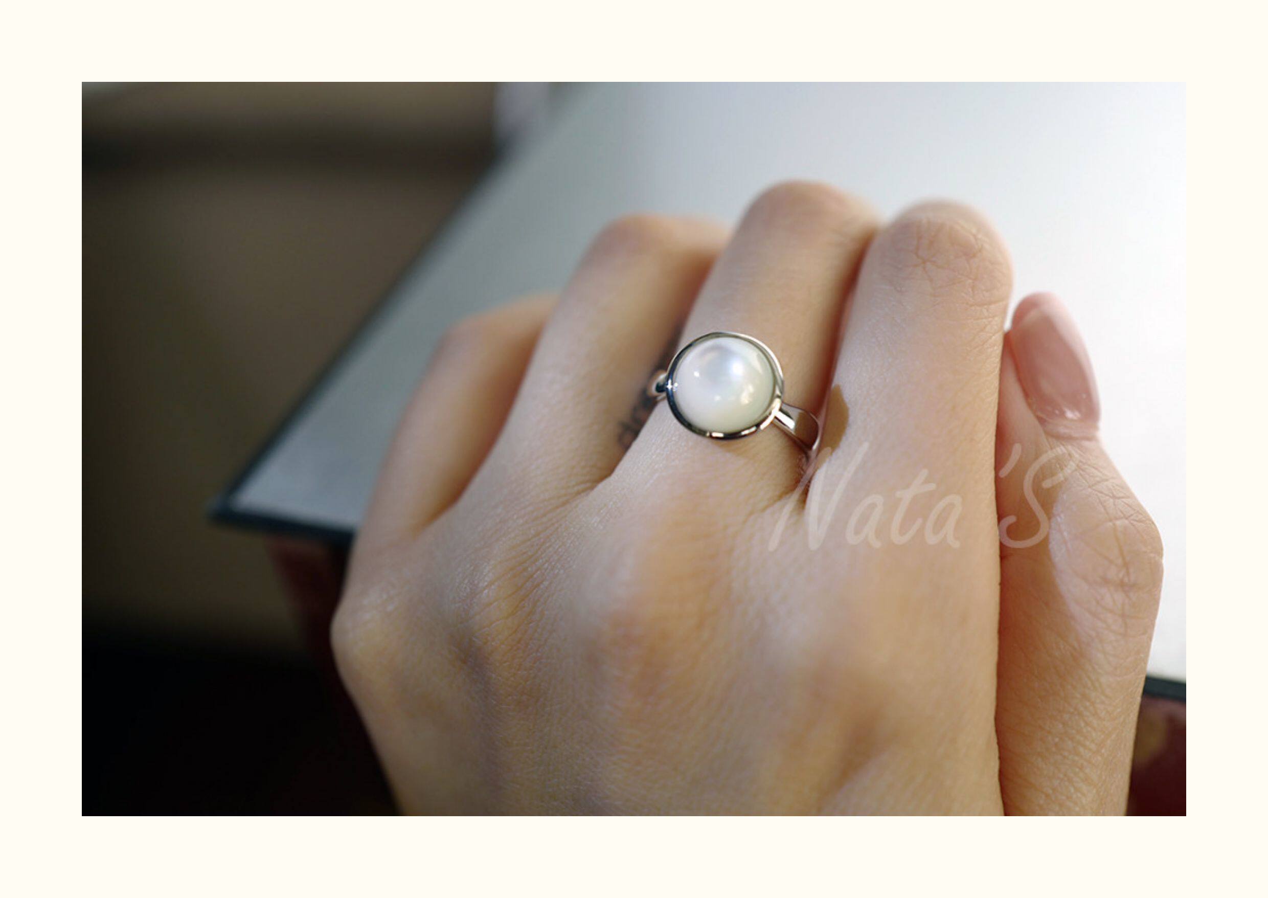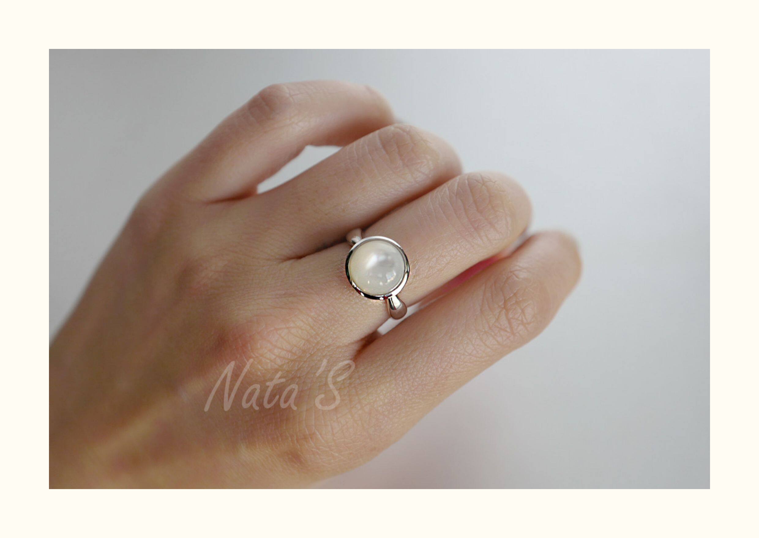 Natalia 925 Silver Friendship Ring: White Mother-Of-Pearl