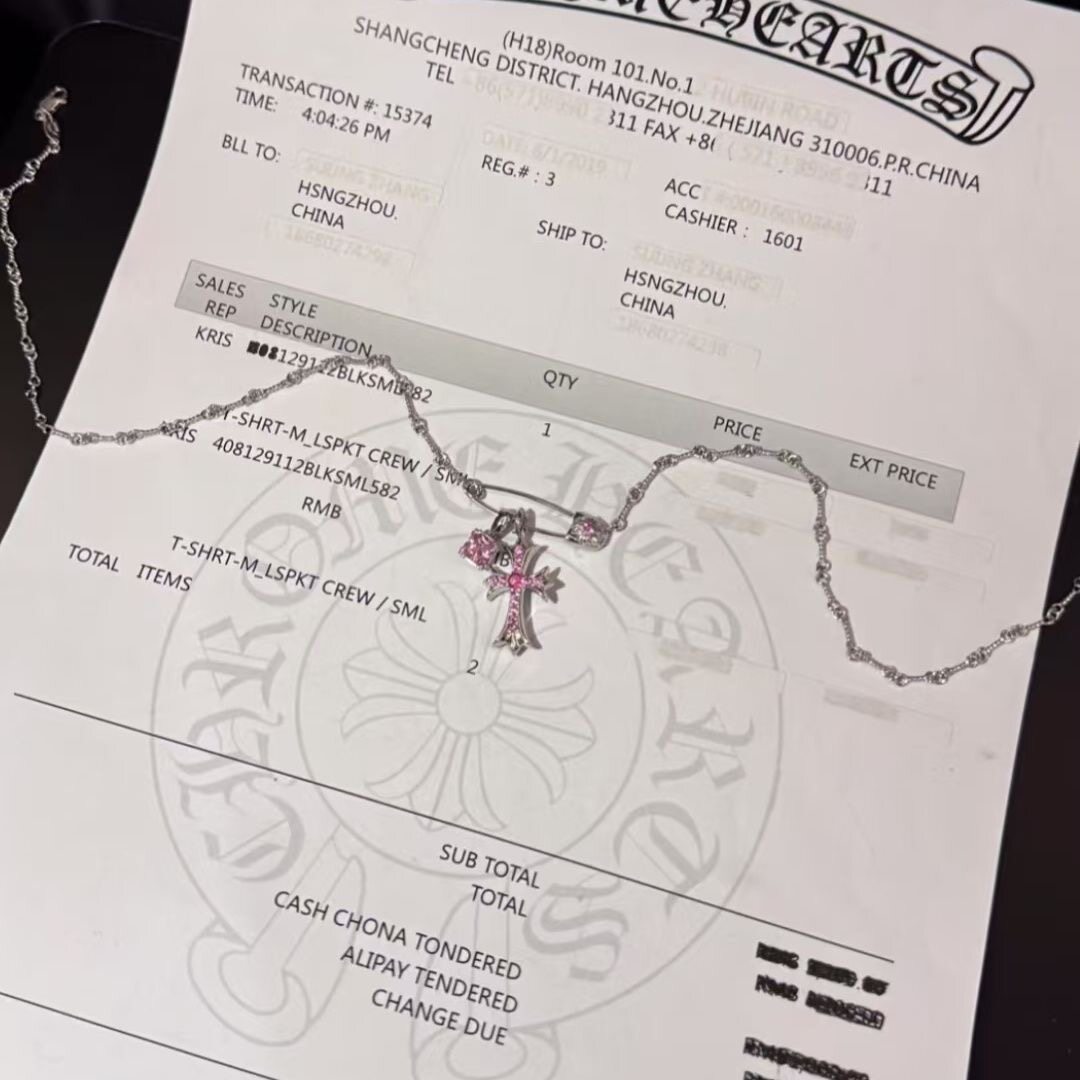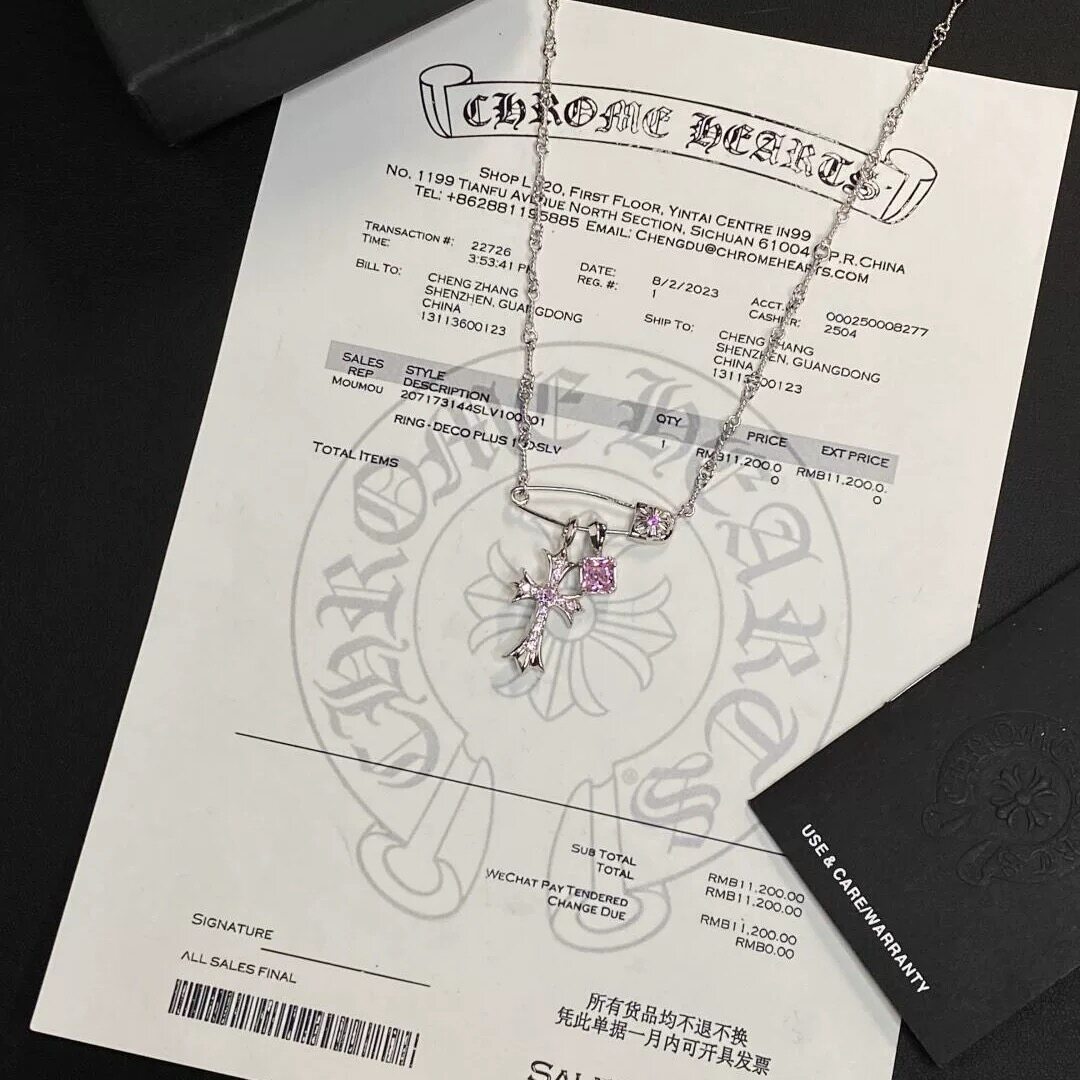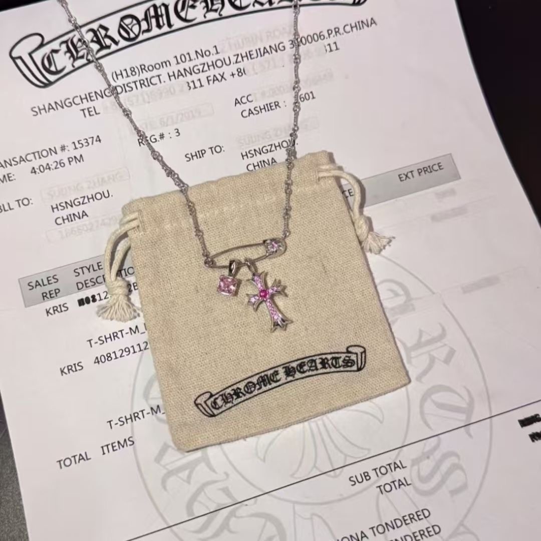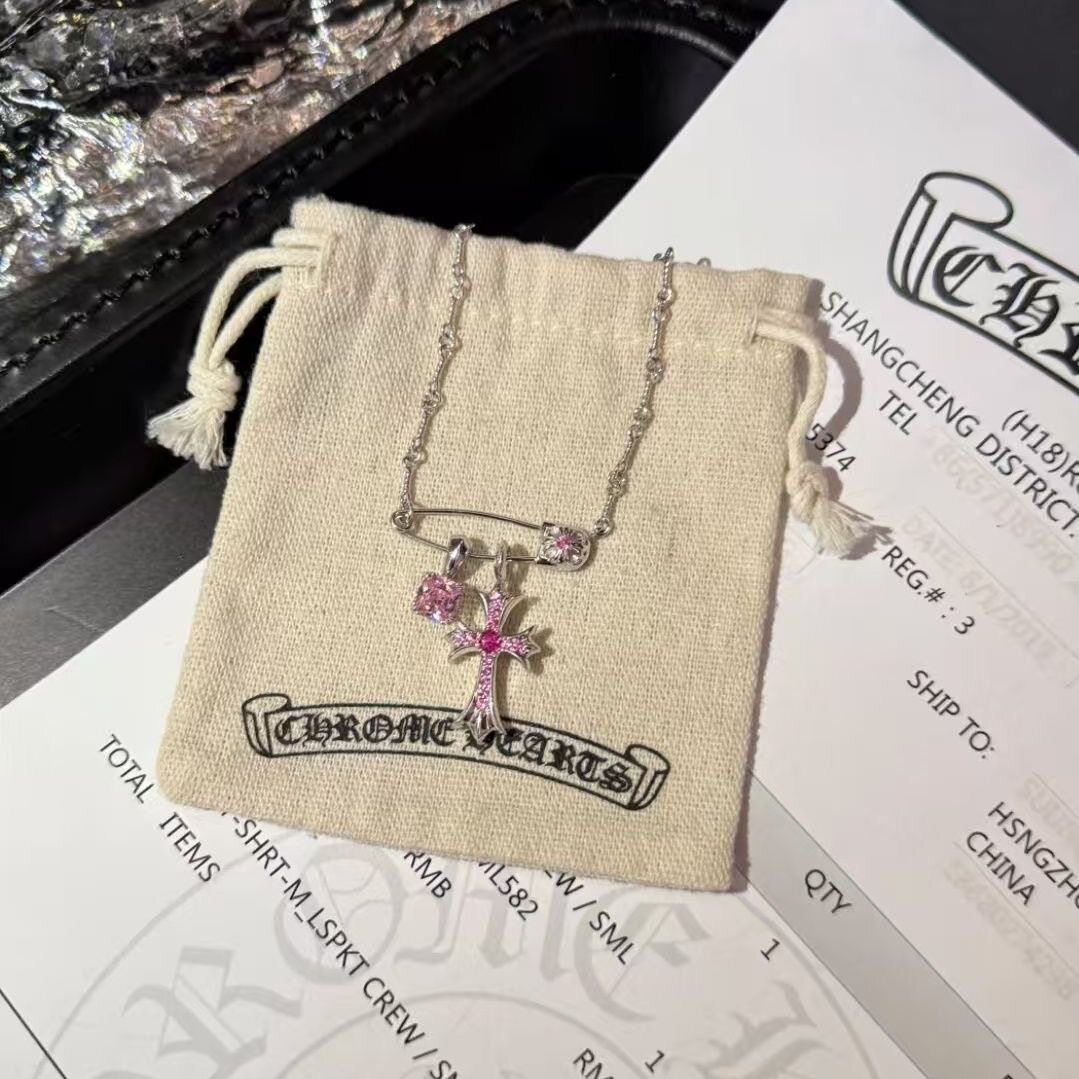 Sweet and Cool Pink Cross Super Shiny Paperclip Necklace for Women, Niche High-End Clavicle Chain, Birthday Gift Choker