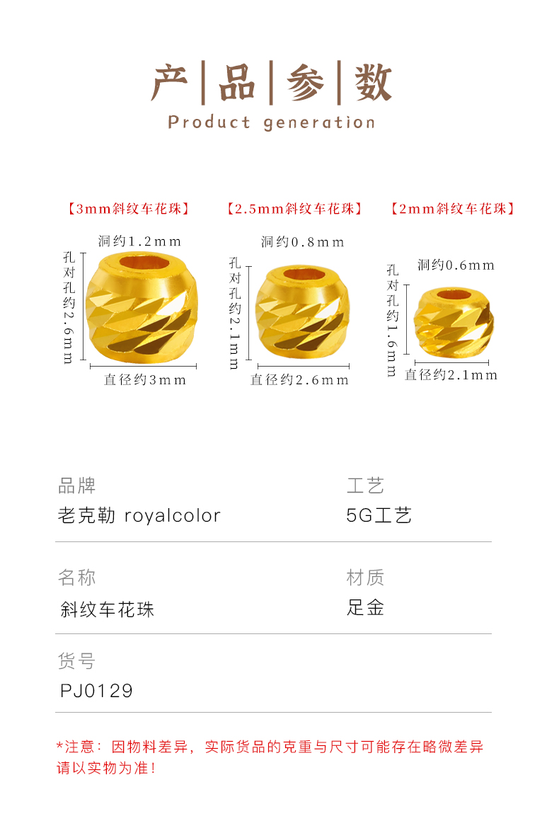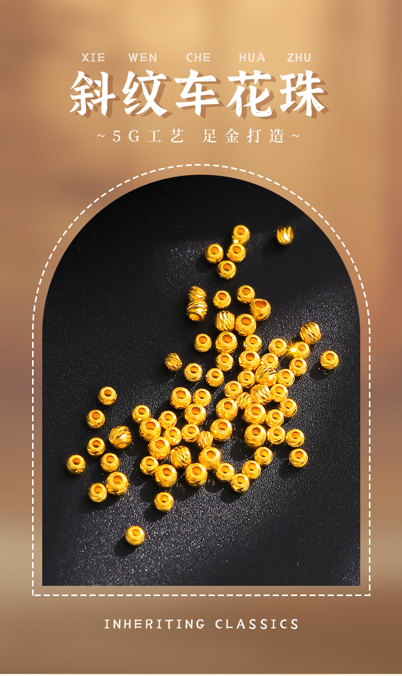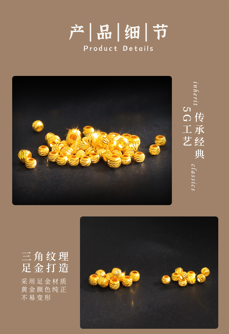 Old-Style Gold 5g Craftsmanship Twill Patterned Beads Pure Gold 999 Spacer Beads Loose Beads DIY Accessories Bracelet for Women