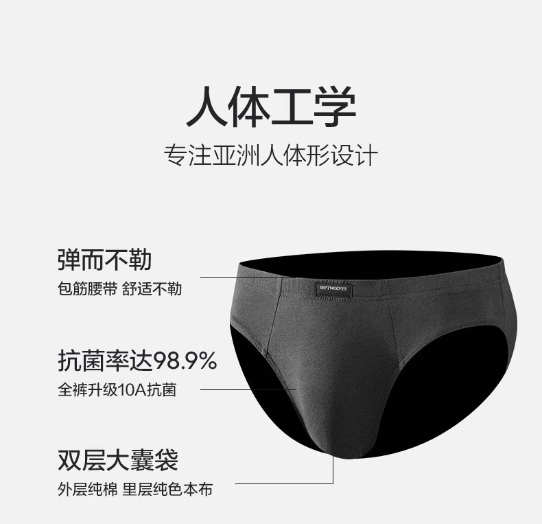 Septwolves Pure Cotton Men's Briefs, Thin Breathable Underwear, 100% Cotton Men's Shorts