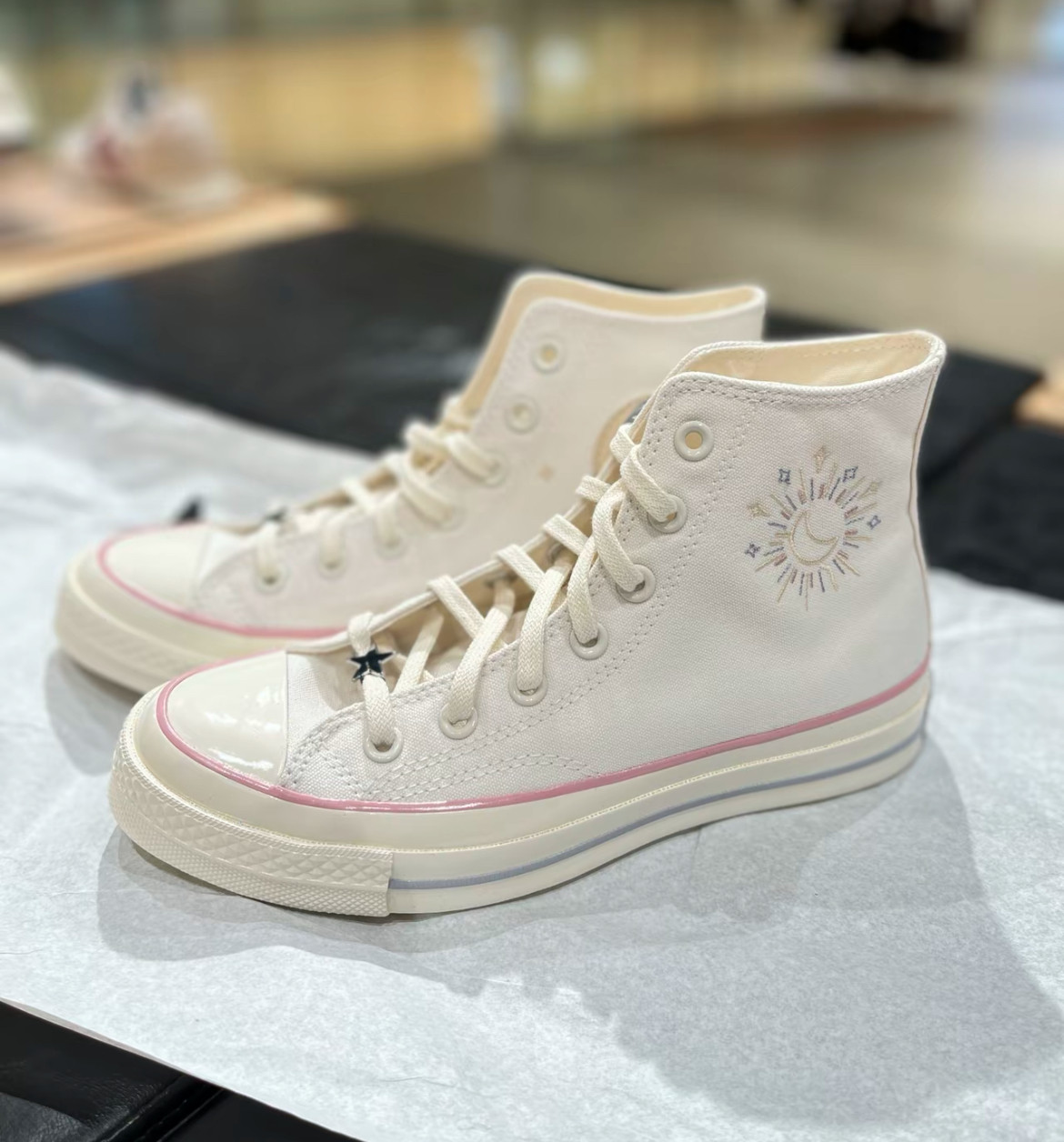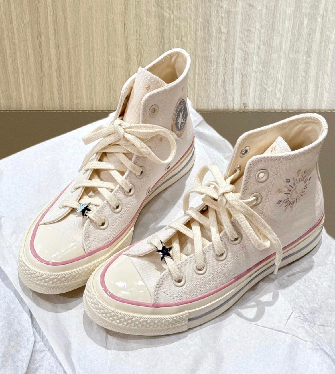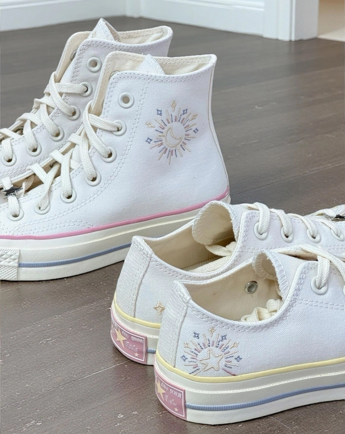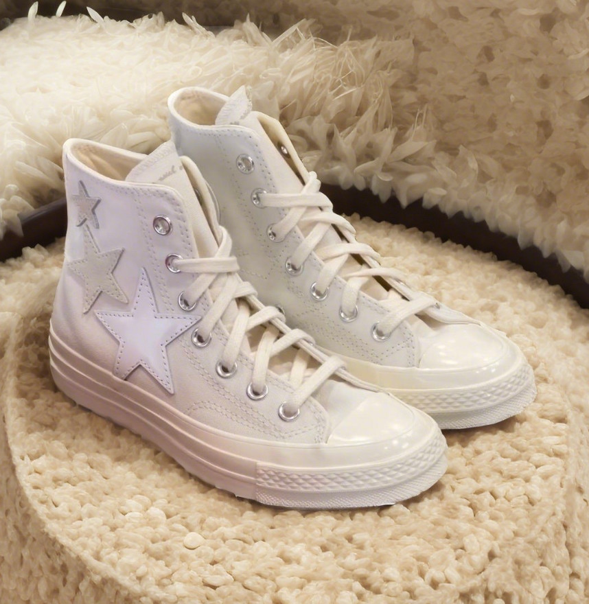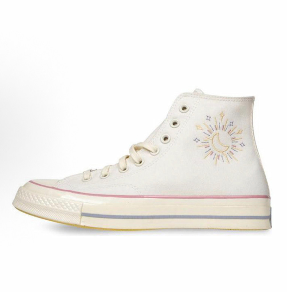 1970m White Star Moon Embroidery High and Low Top Men's and Women's Shoes Sun Beige Canvas Shoes A15750C A15749C