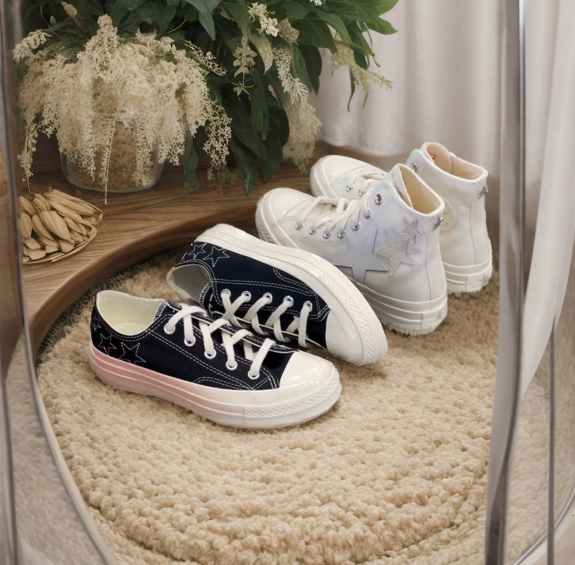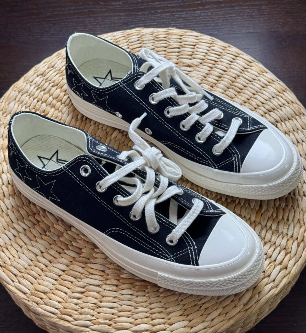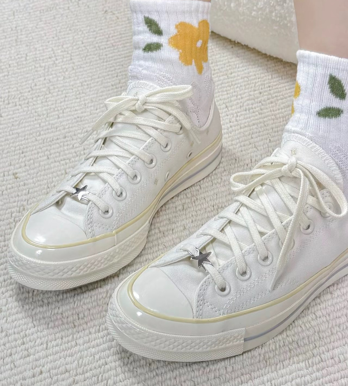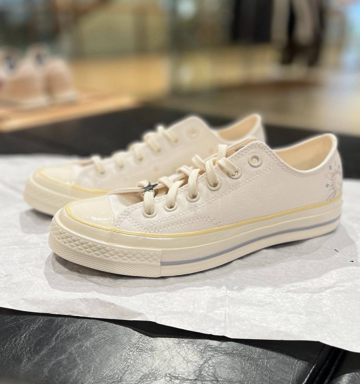 1970m White Star Moon Embroidery High and Low Top Men's and Women's Shoes Sun Beige Canvas Shoes A15750C A15749C