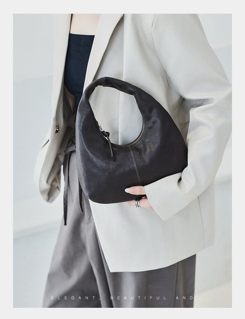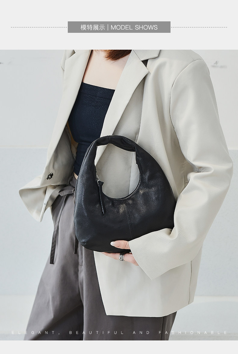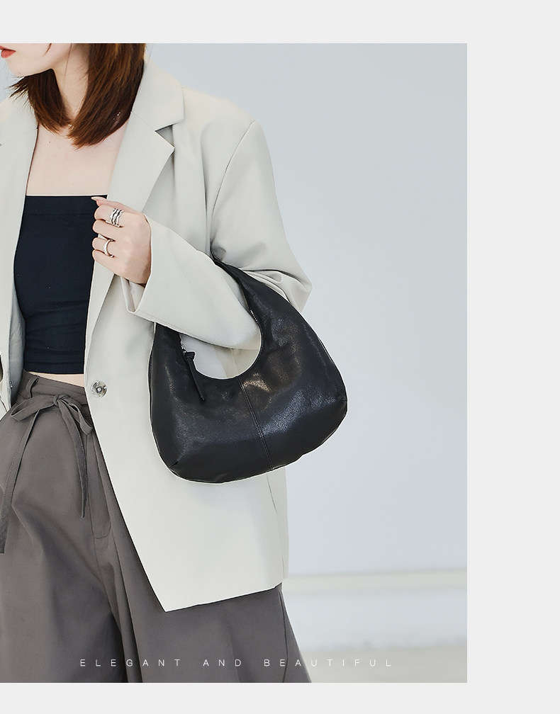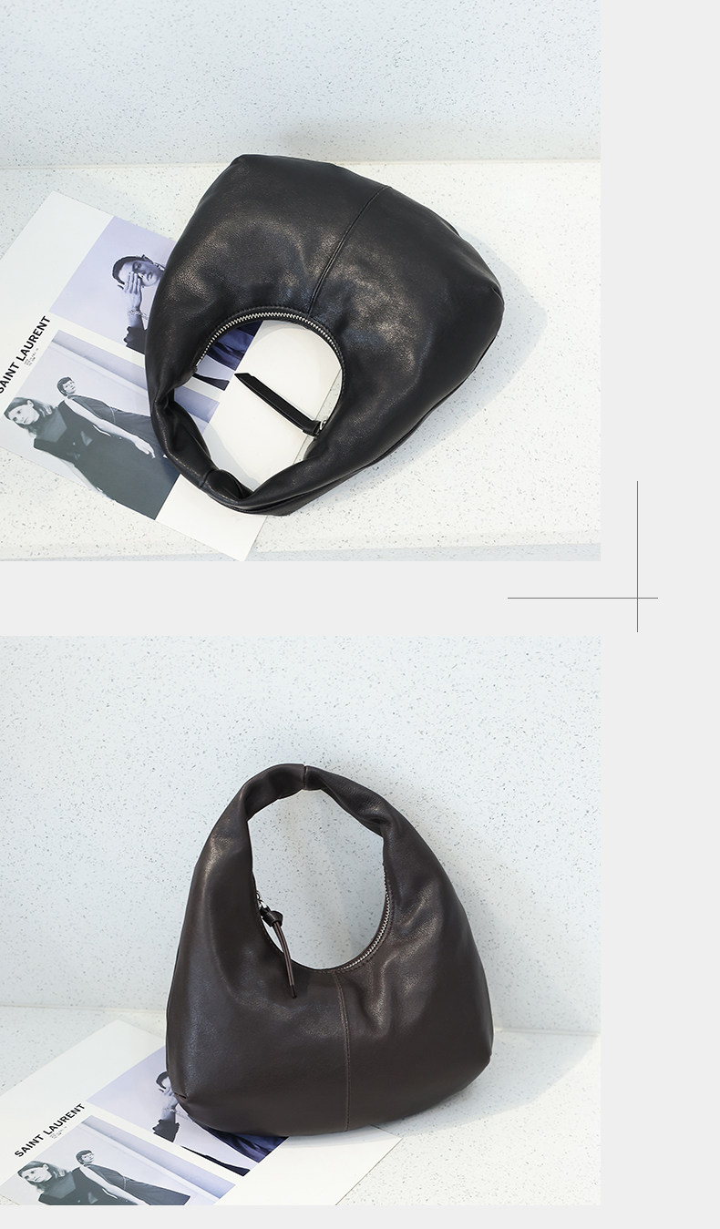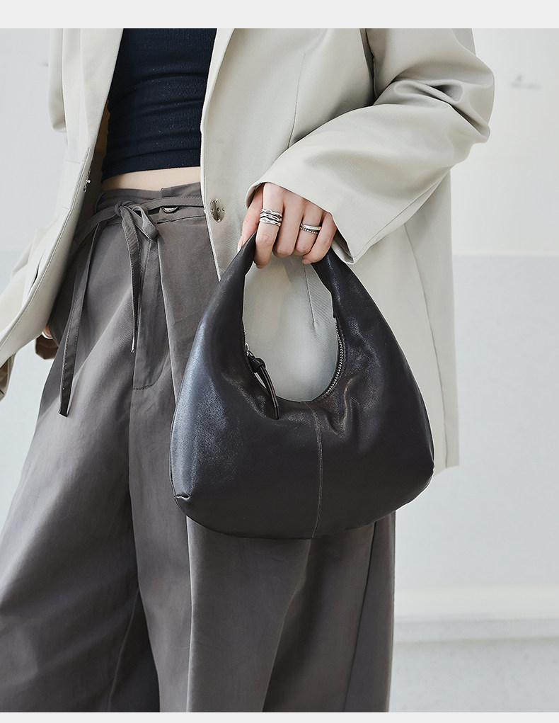 2025 New Korean Style Sheepskin Handbag, Half-Moon Mobile Phone Bag, High-End Light Luxury Niche Crescent-Shaped Genuine Leather Handbag