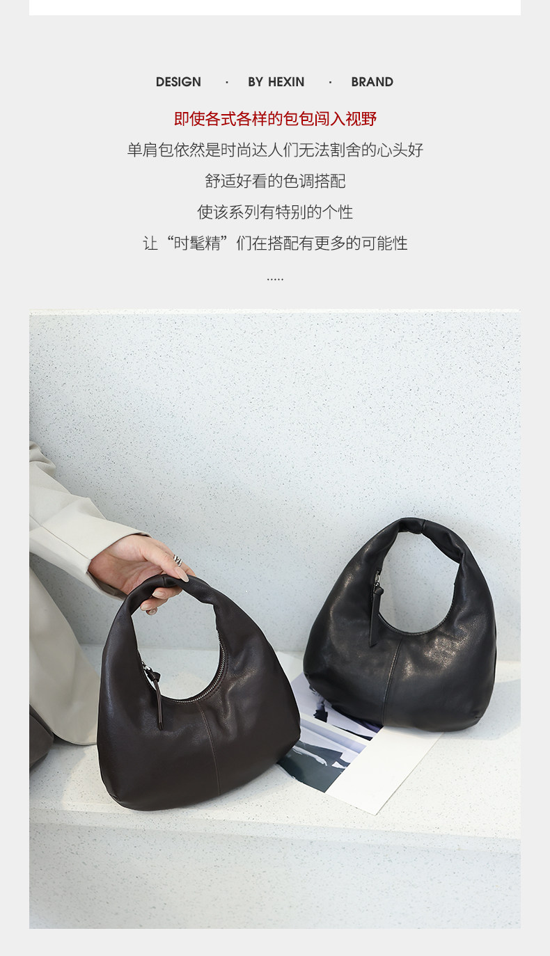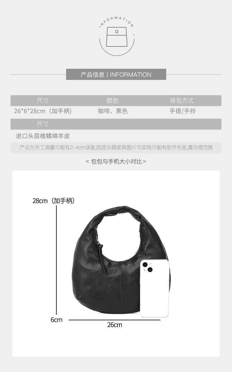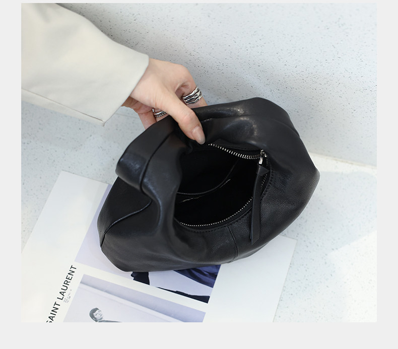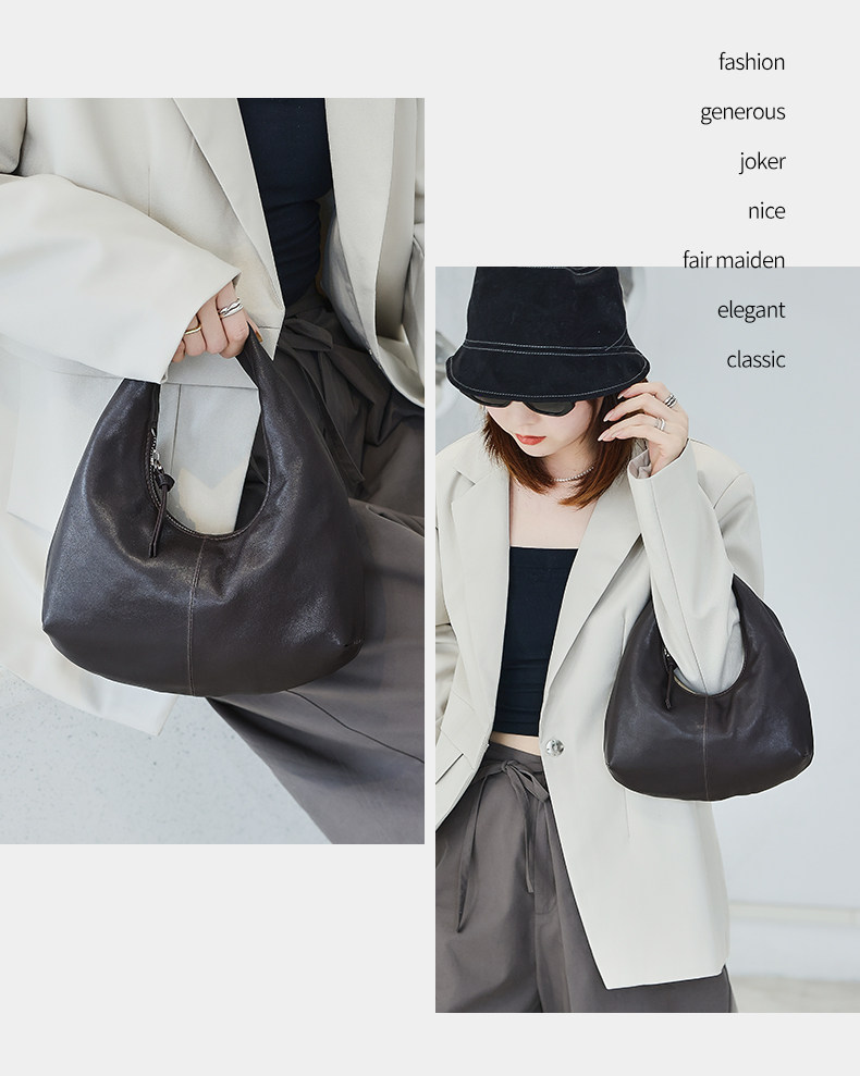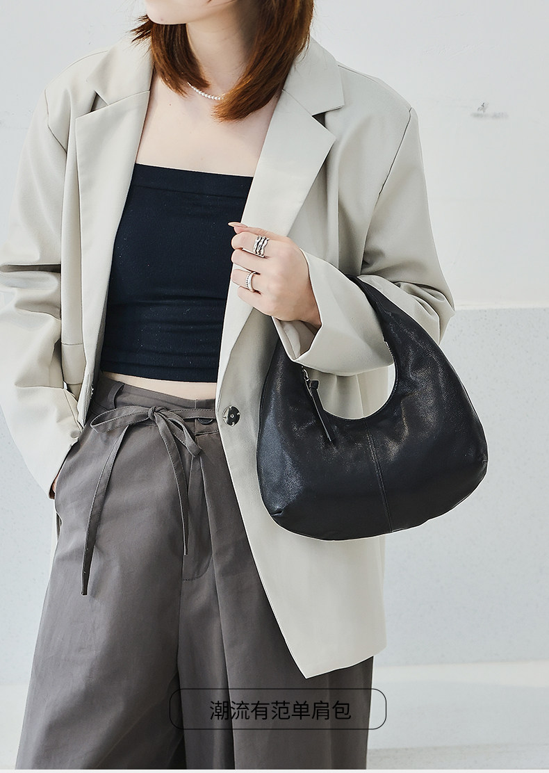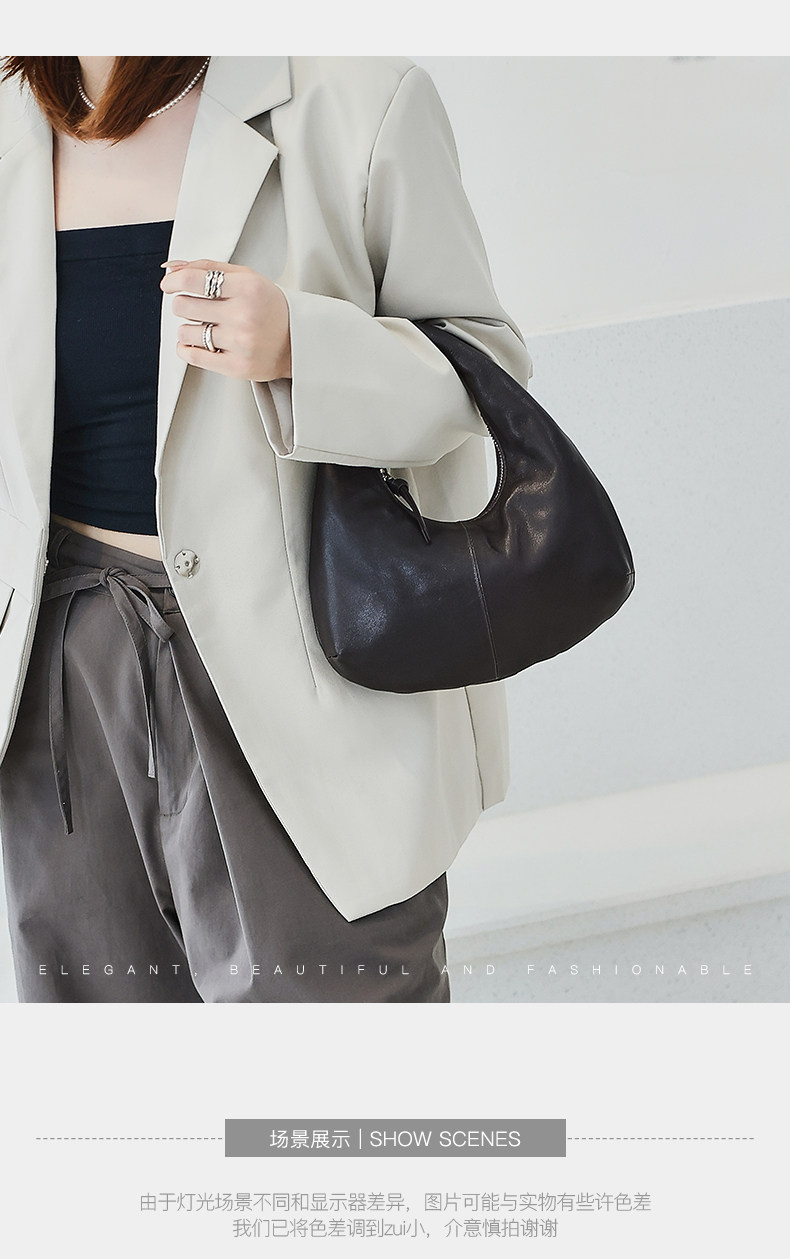 2025 New Korean Style Sheepskin Handbag, Half-Moon Mobile Phone Bag, High-End Light Luxury Niche Crescent-Shaped Genuine Leather Handbag