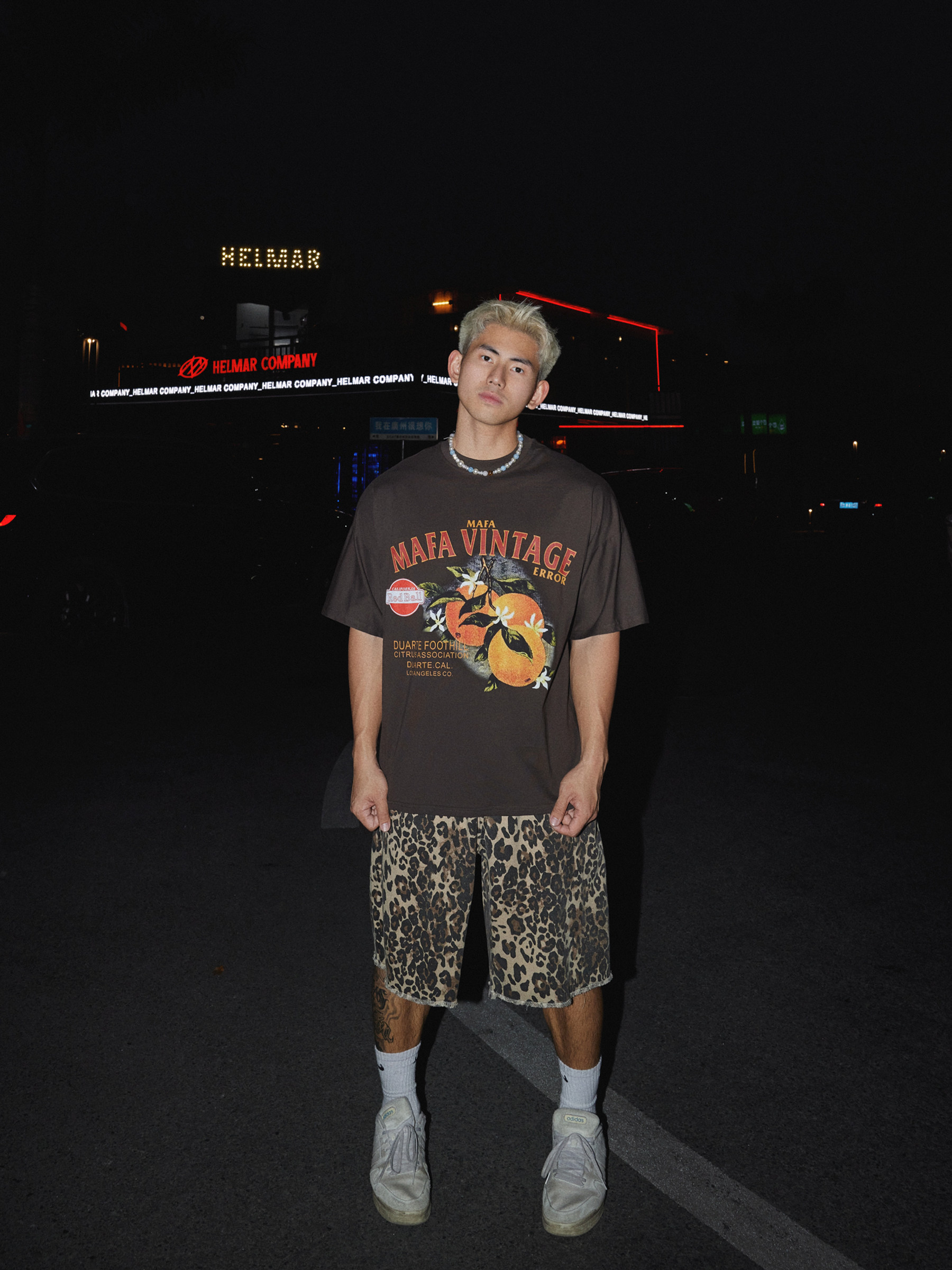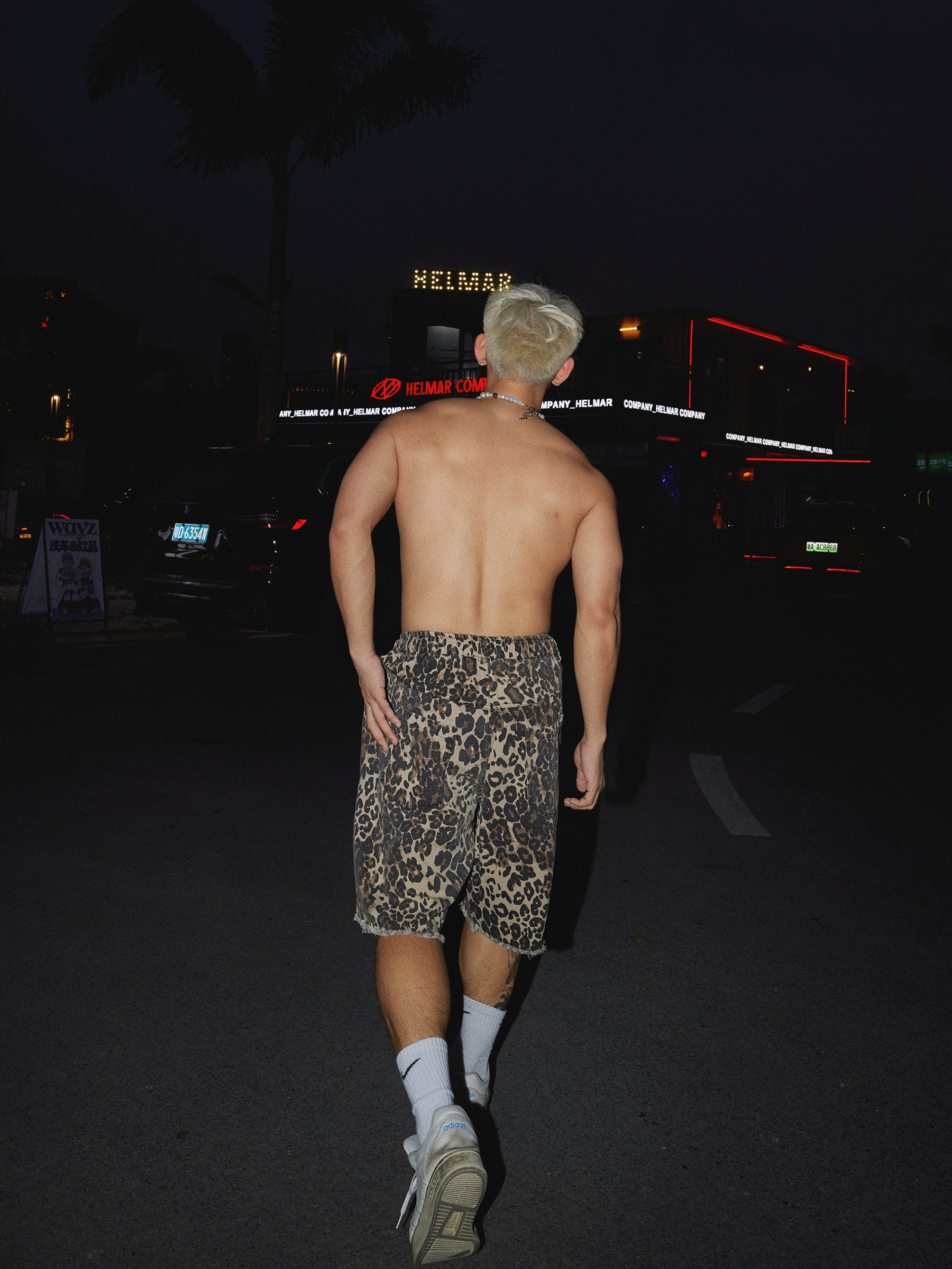Papaslilmonster American Retro Leopard Print Niche Straight-Leg Six-Point Pants Men's Summer Loose Casual Shorts