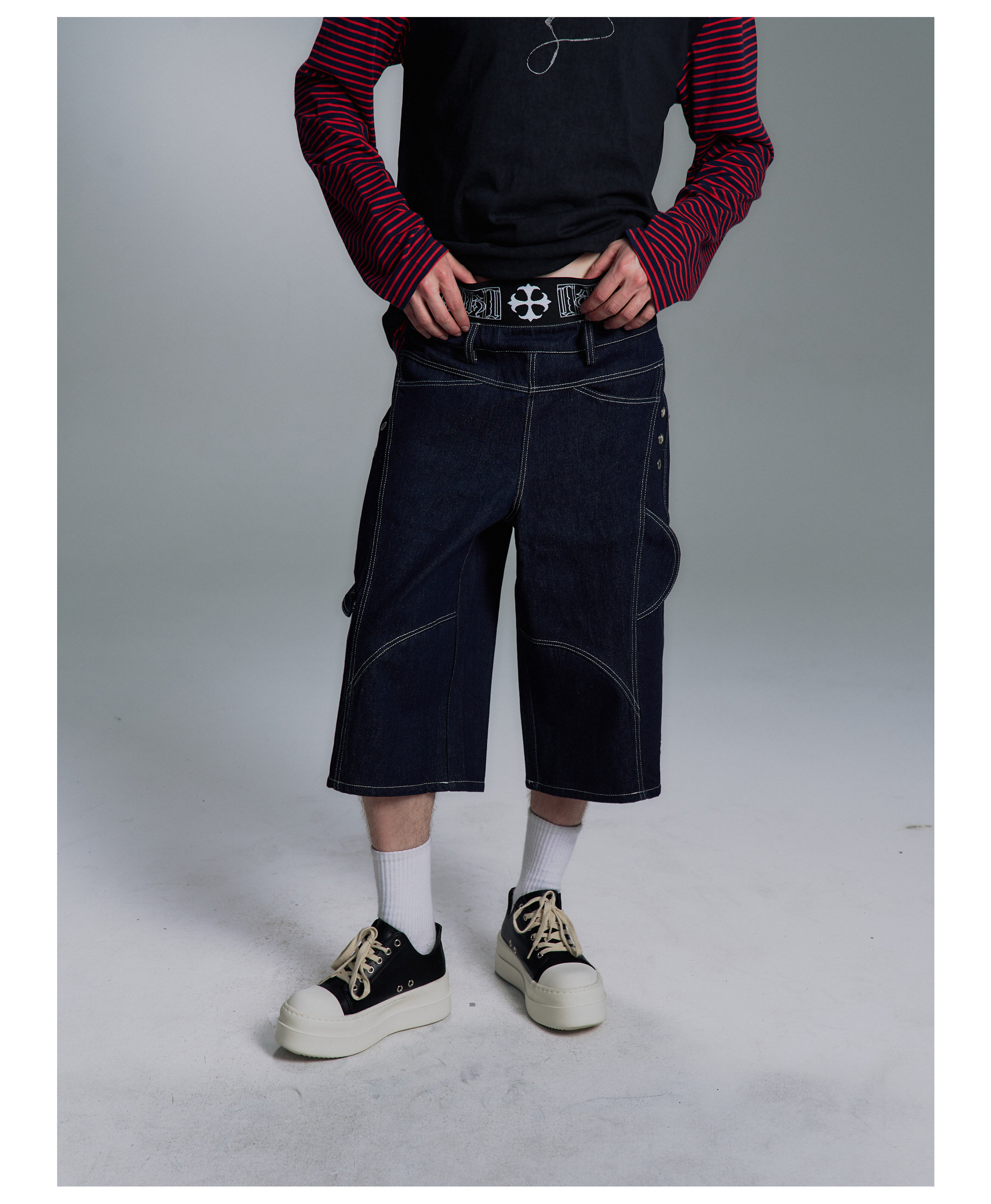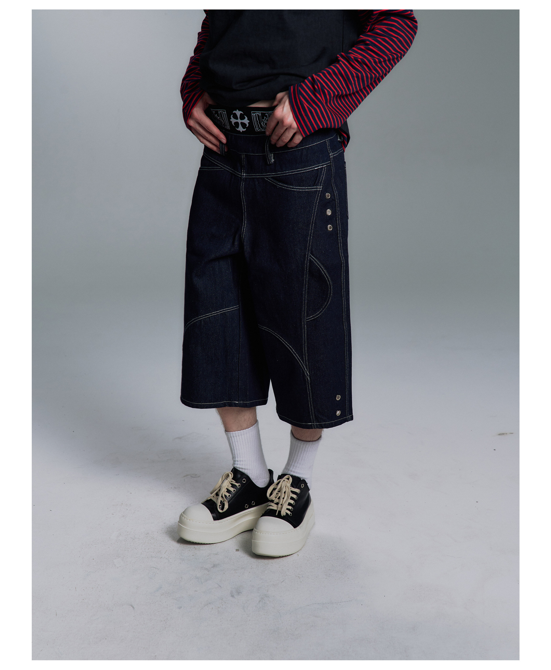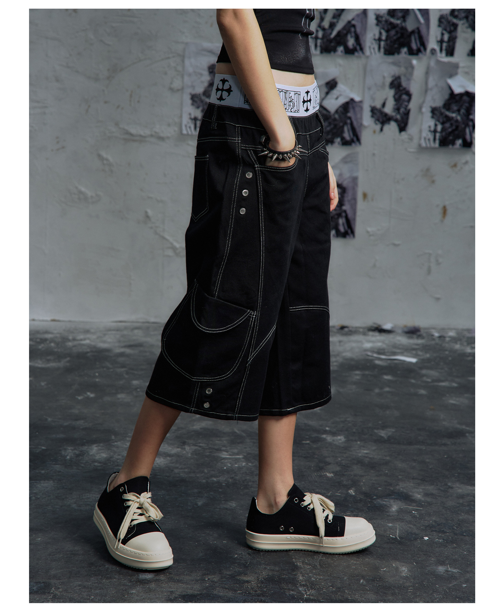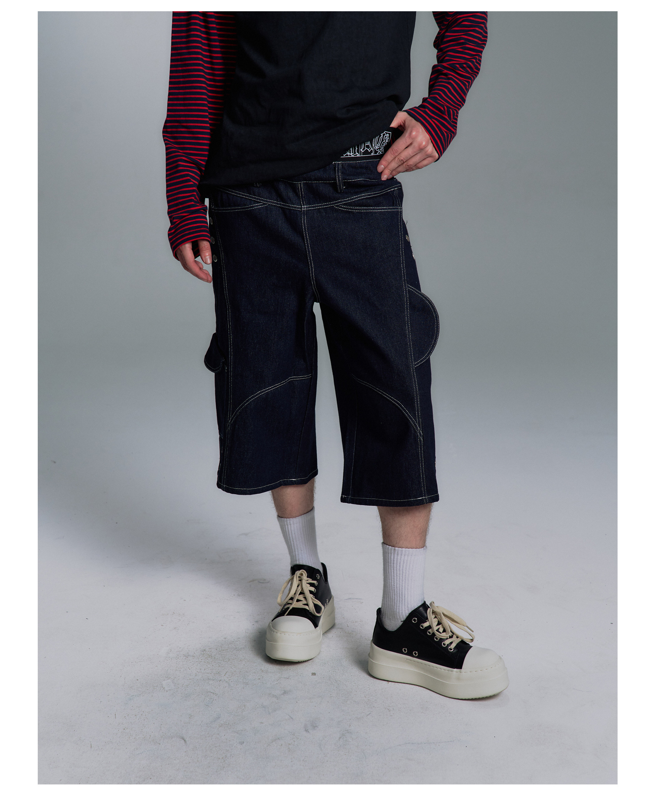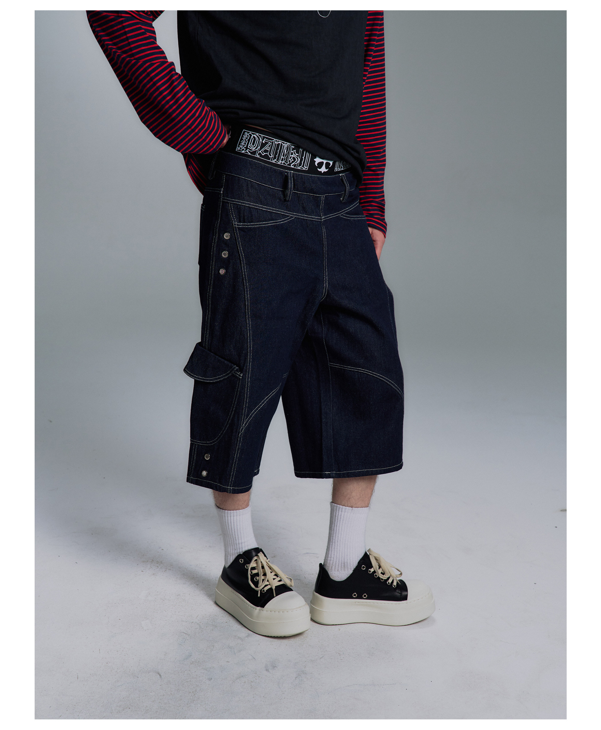 Paiki2025Ss'Class' Boxing Shorts Retro Deconstructed Visible Stitching Multi-Pocket Workwear Loose Pants for Men