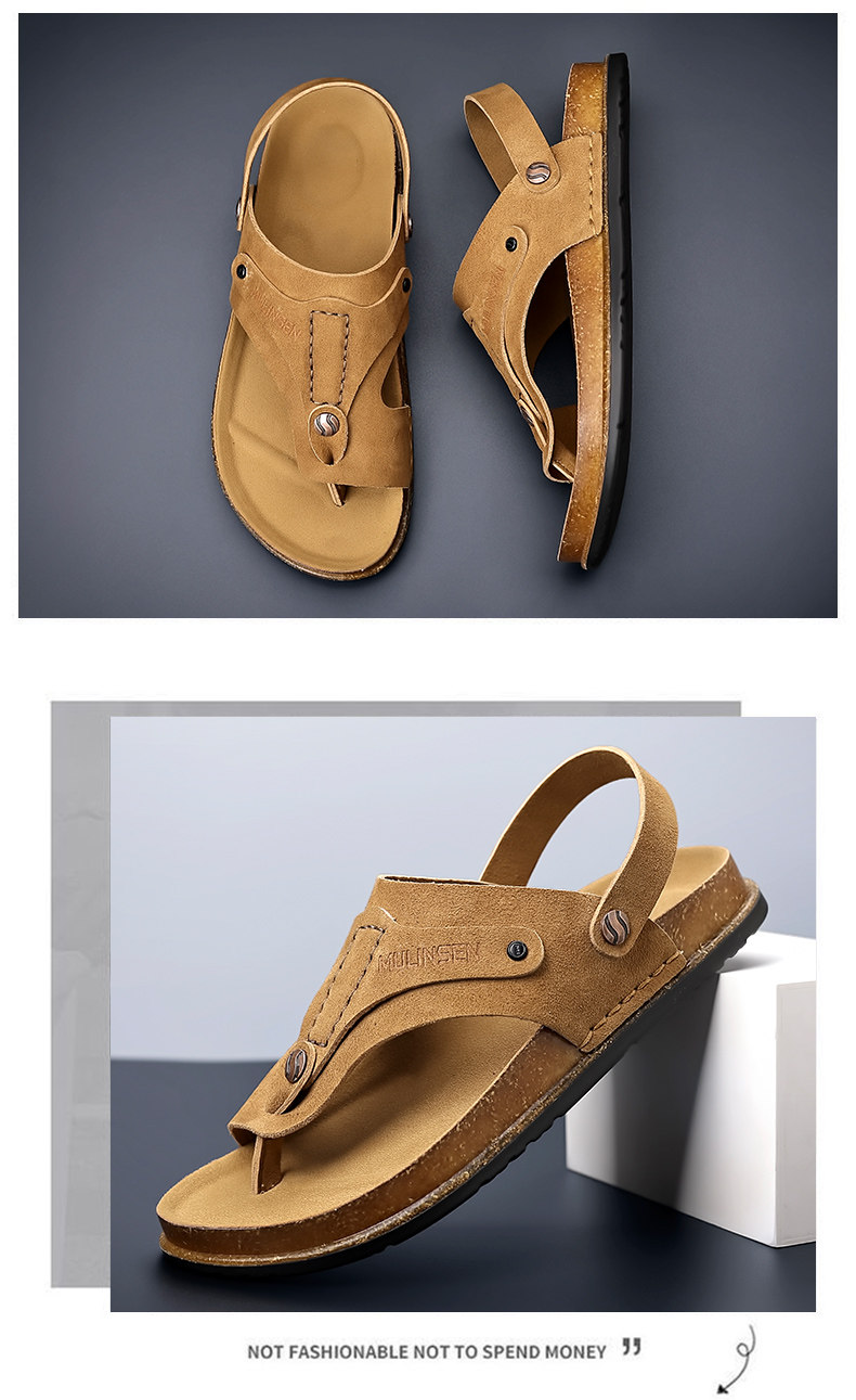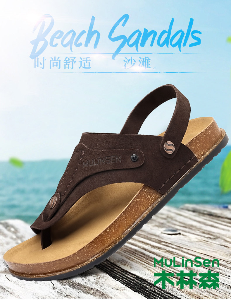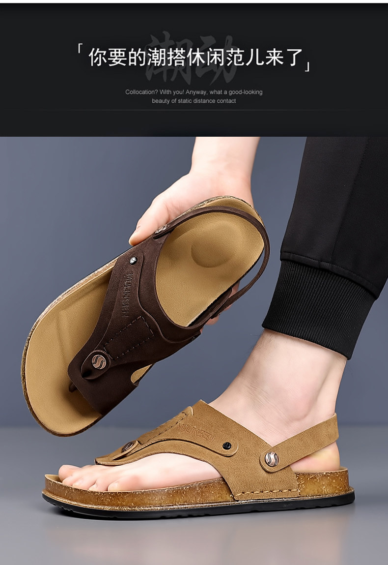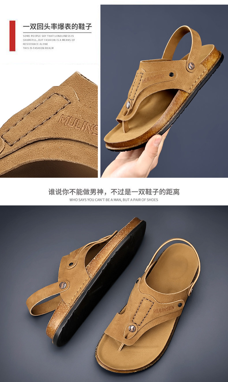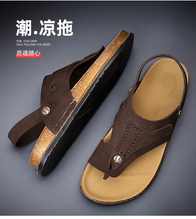Mulinsen Men's Sandals 2026 New Summer Cork-Soled Birkenstock-Style Breathable Thong Sandals for Outdoor Use Dual-Purpose Sandals