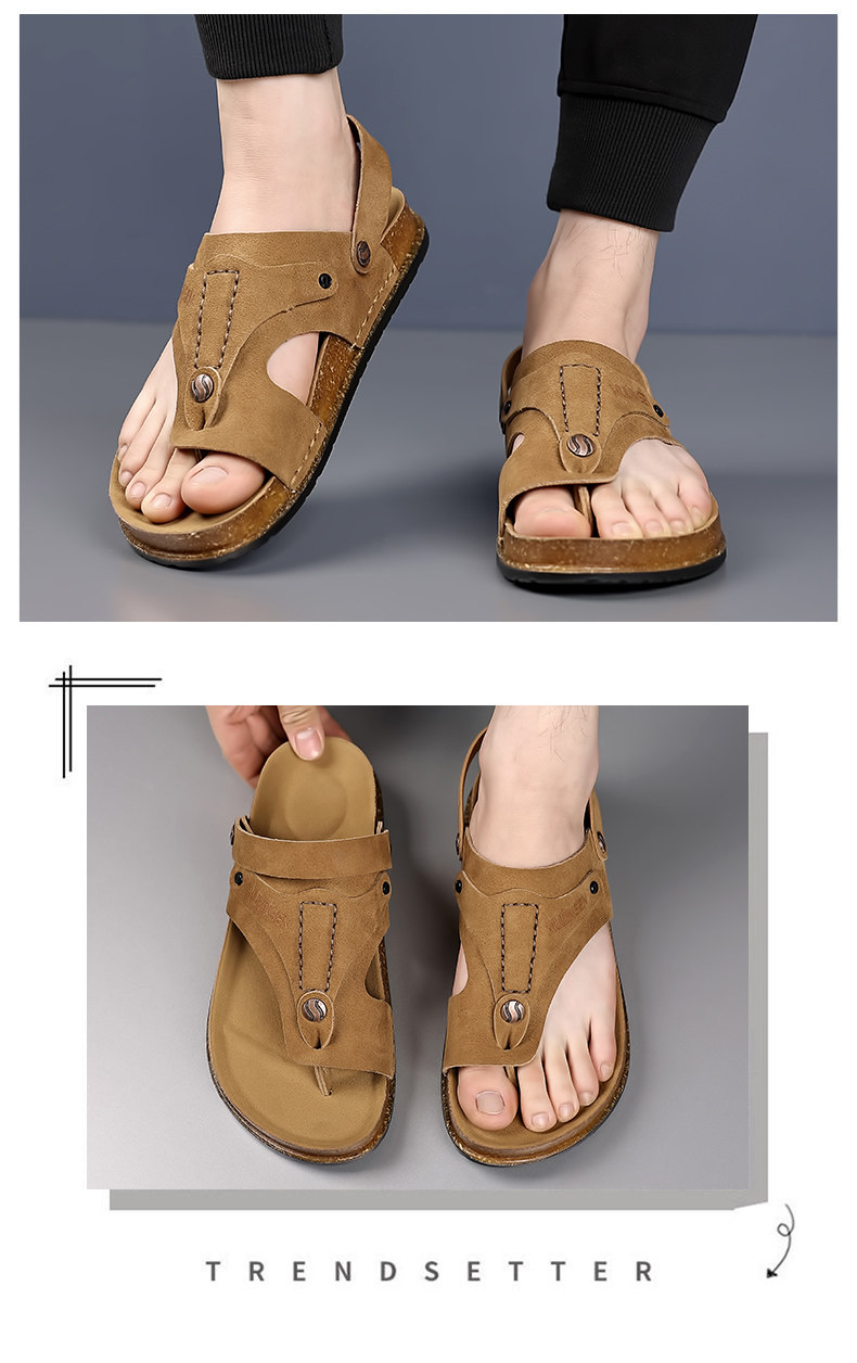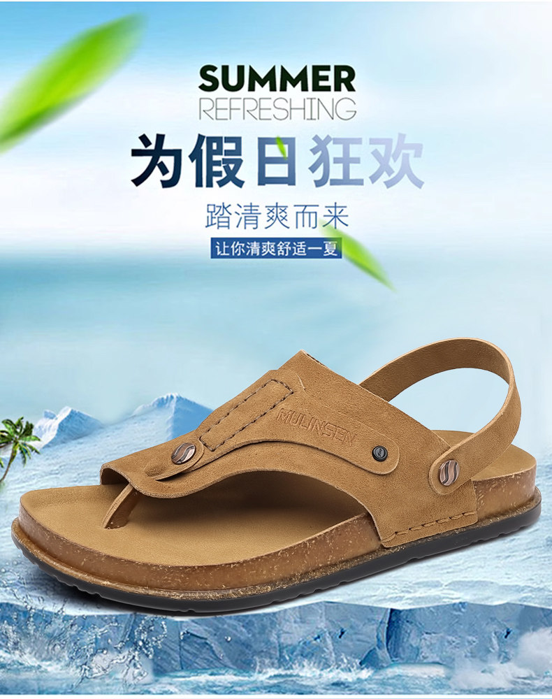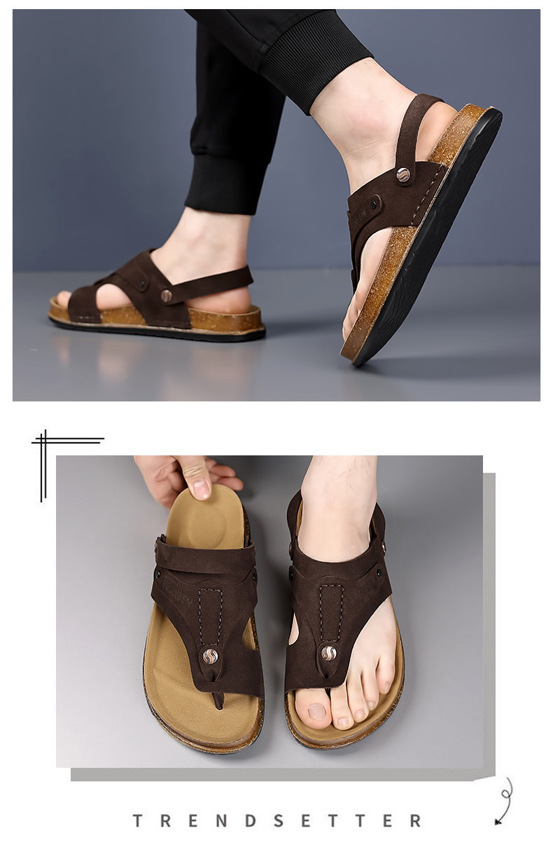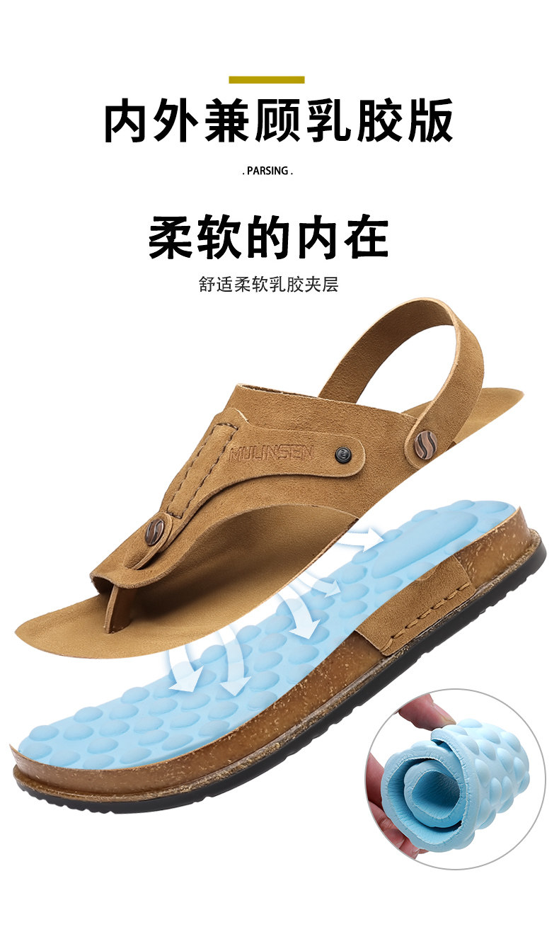 Mulinsen Men's Sandals 2026 New Summer Cork-Soled Birkenstock-Style Breathable Thong Sandals for Outdoor Use Dual-Purpose Sandals