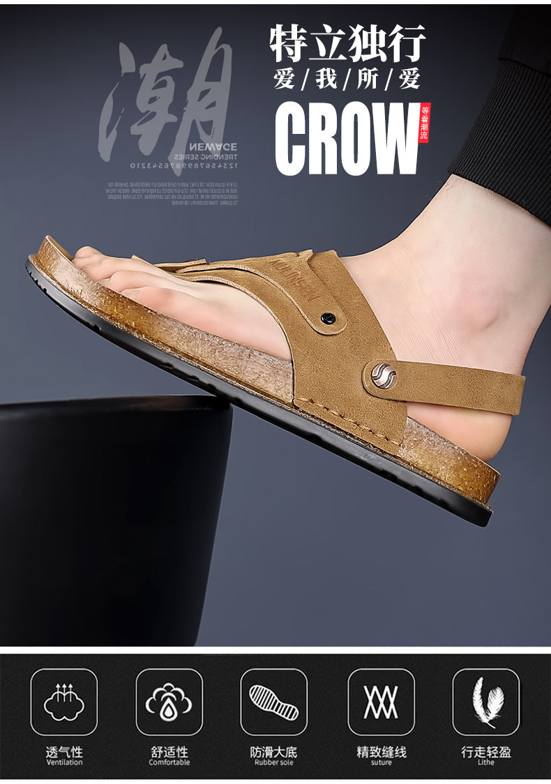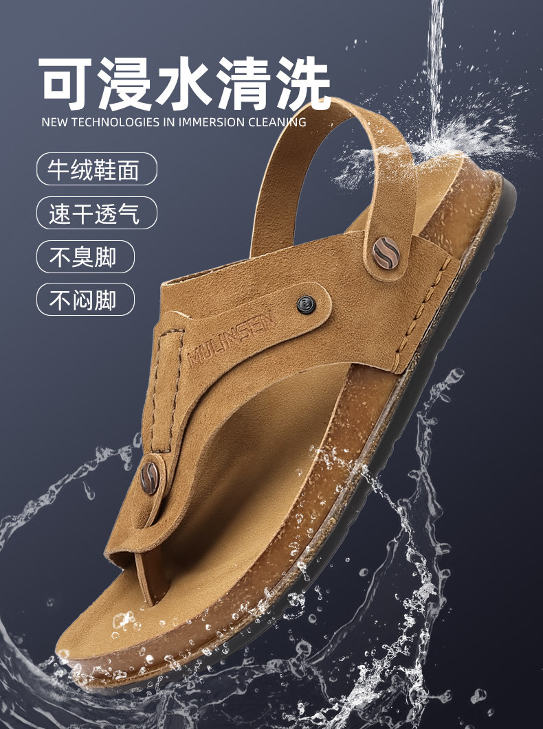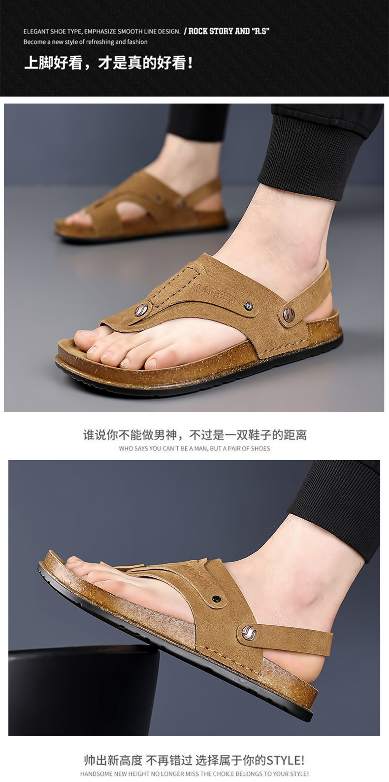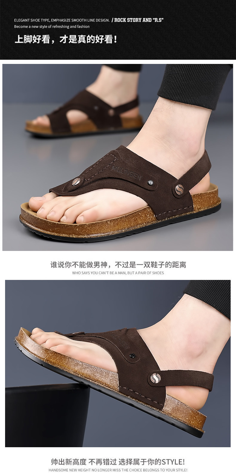 Mulinsen Men's Sandals 2026 New Summer Cork-Soled Birkenstock-Style Breathable Thong Sandals for Outdoor Use Dual-Purpose Sandals