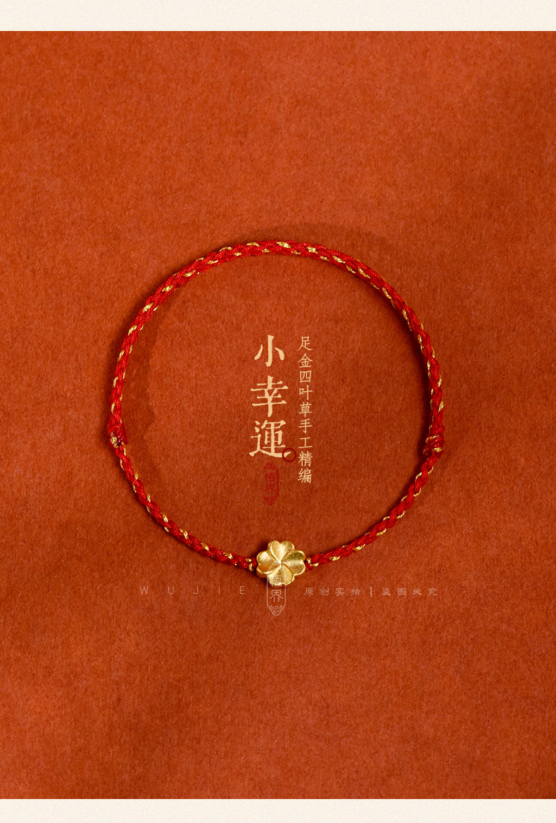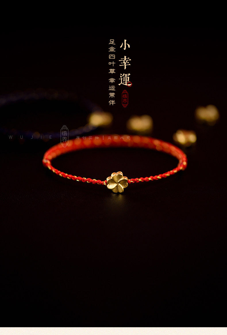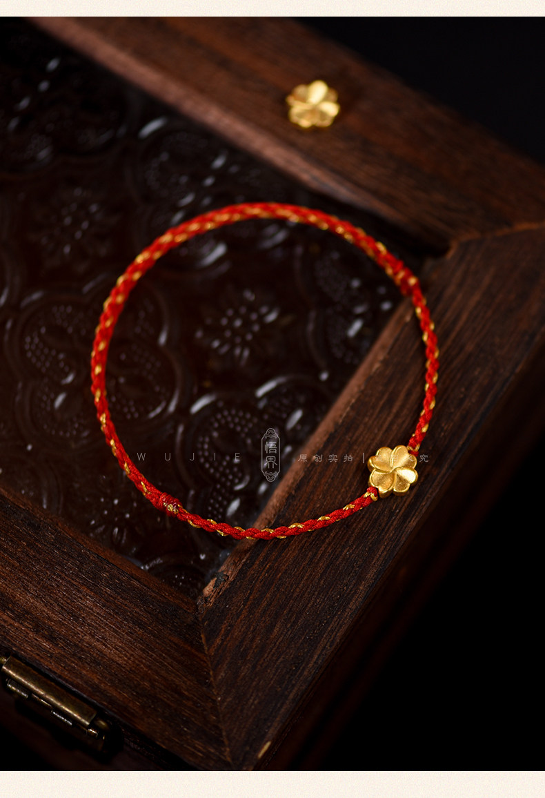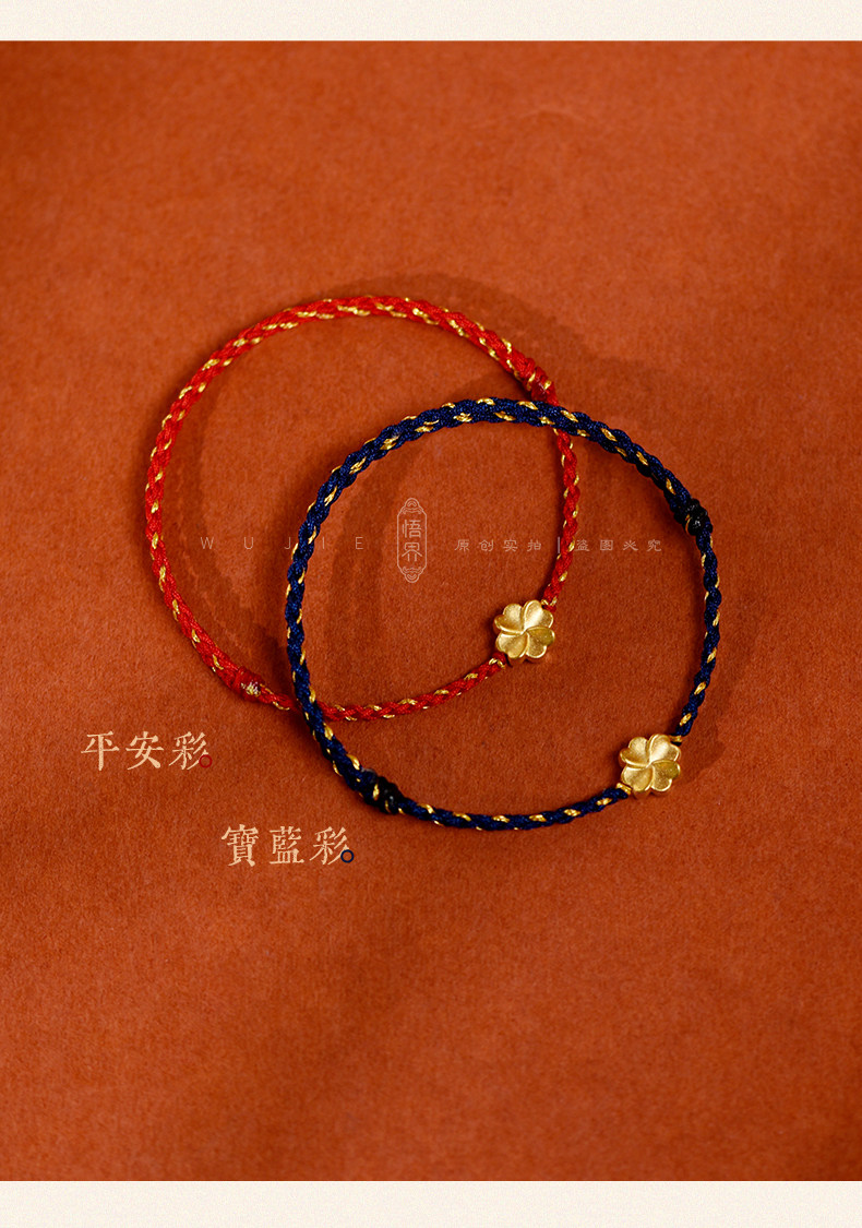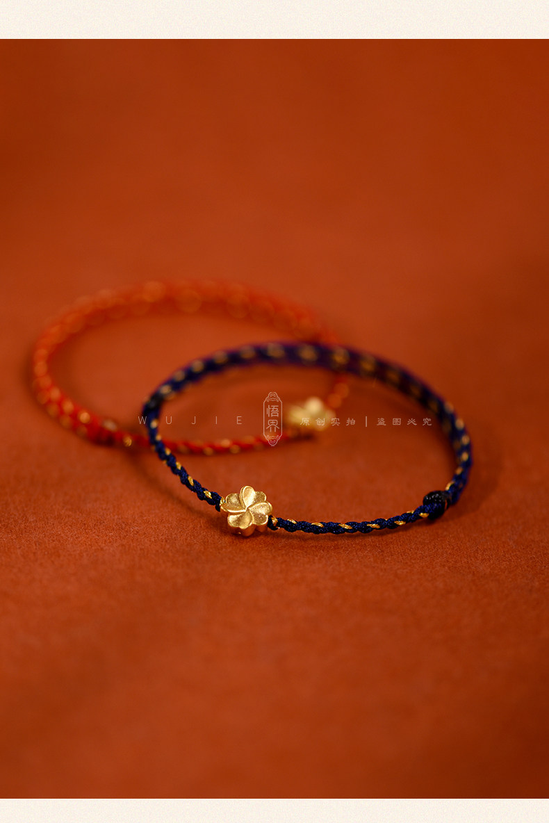 Auspicious Good Luck 999 Gold Four-Leaf Clover Lucky Anklet for Women, Red String Bracelet, Blue Braided Bracelet for the Year of the Zodiac, Brings Safety
