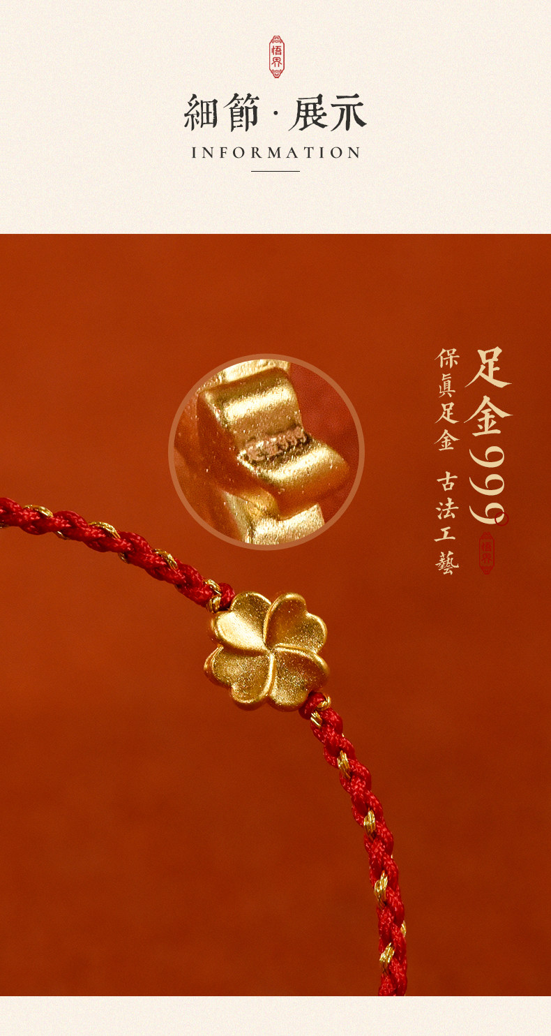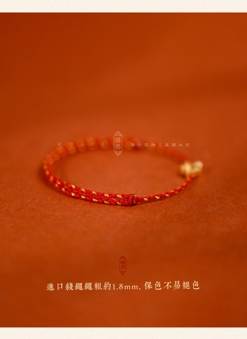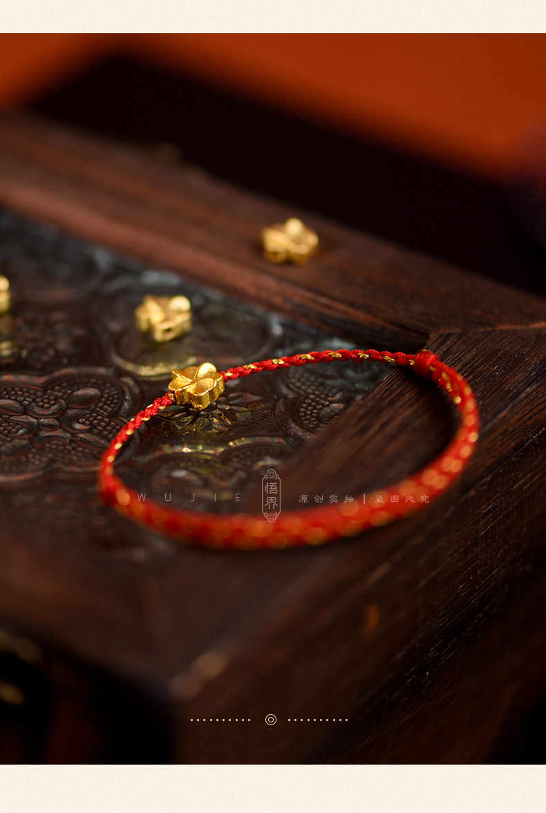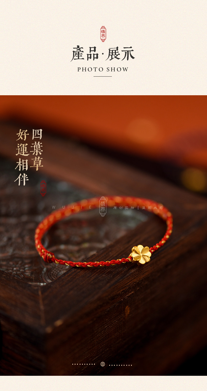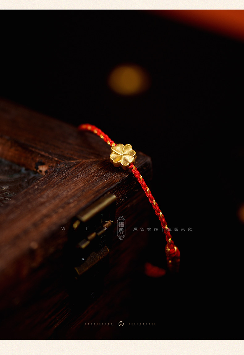 Auspicious Good Luck 999 Gold Four-Leaf Clover Lucky Anklet for Women, Red String Bracelet, Blue Braided Bracelet for the Year of the Zodiac, Brings Safety
