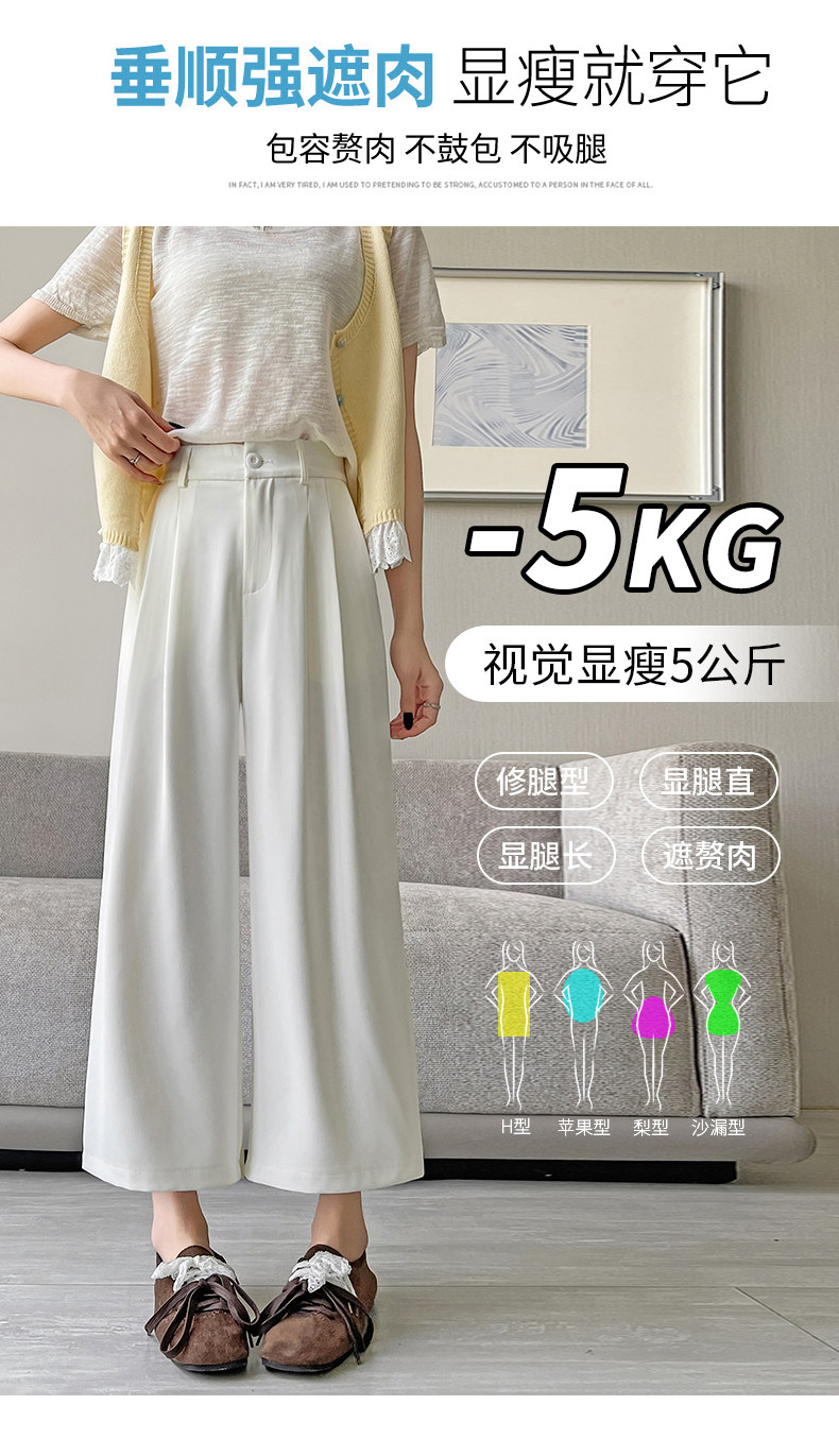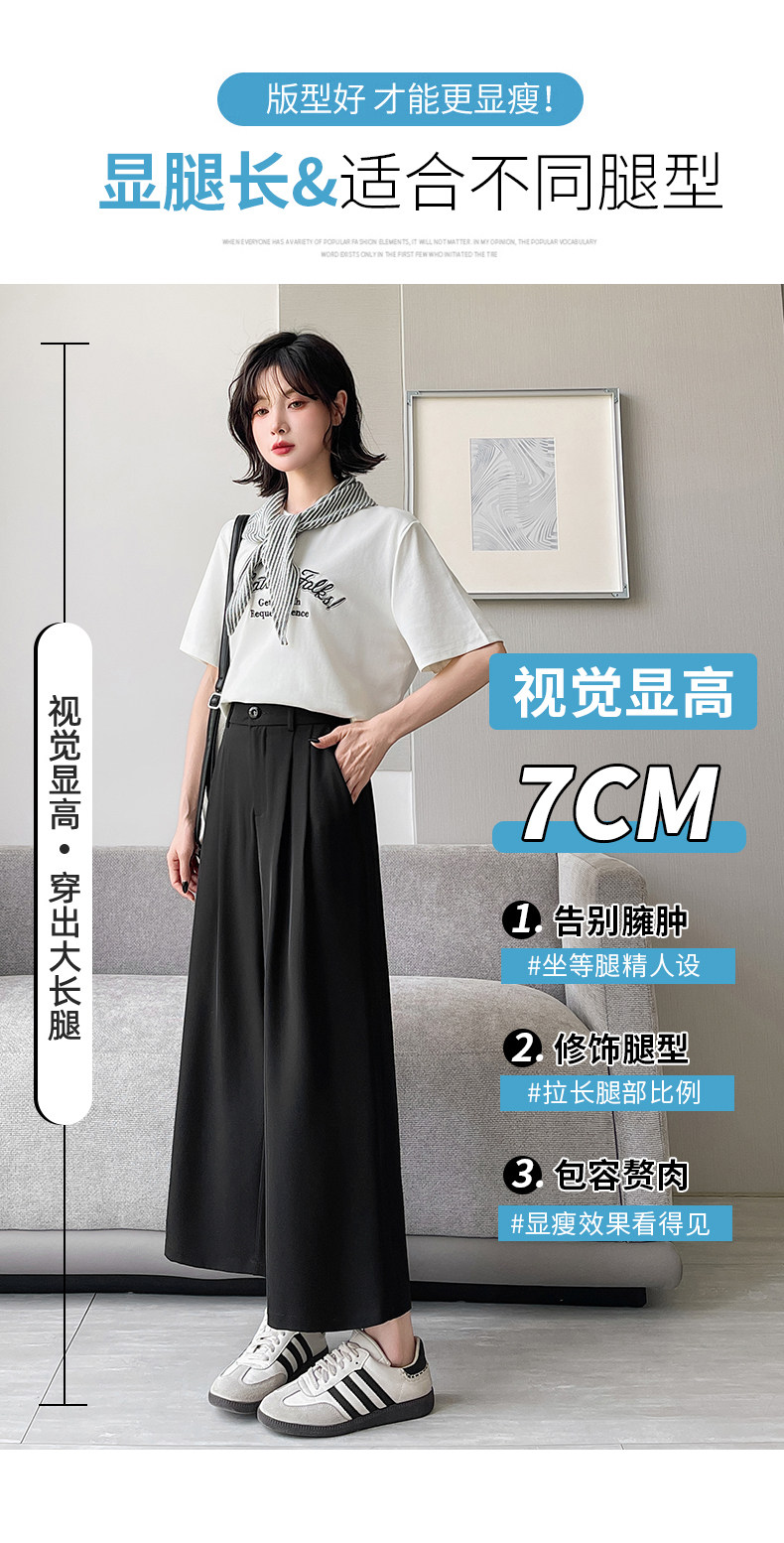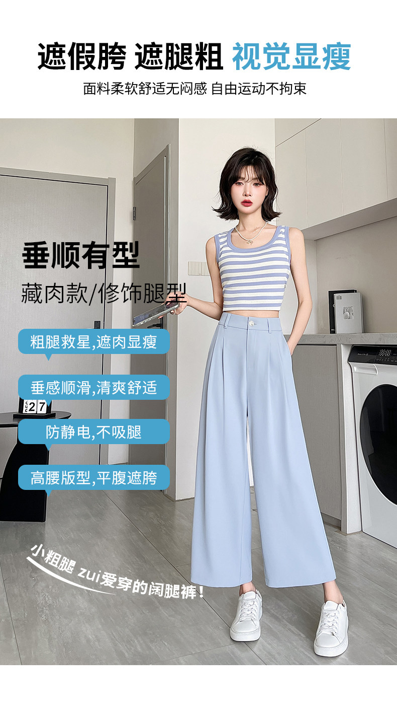 Ice Silk Wide-Leg Pants for Women, Summer Thin Style 2026 New Model, Petite Nine-Point Casual Straight-Leg Suit Pants with a High-End Drape