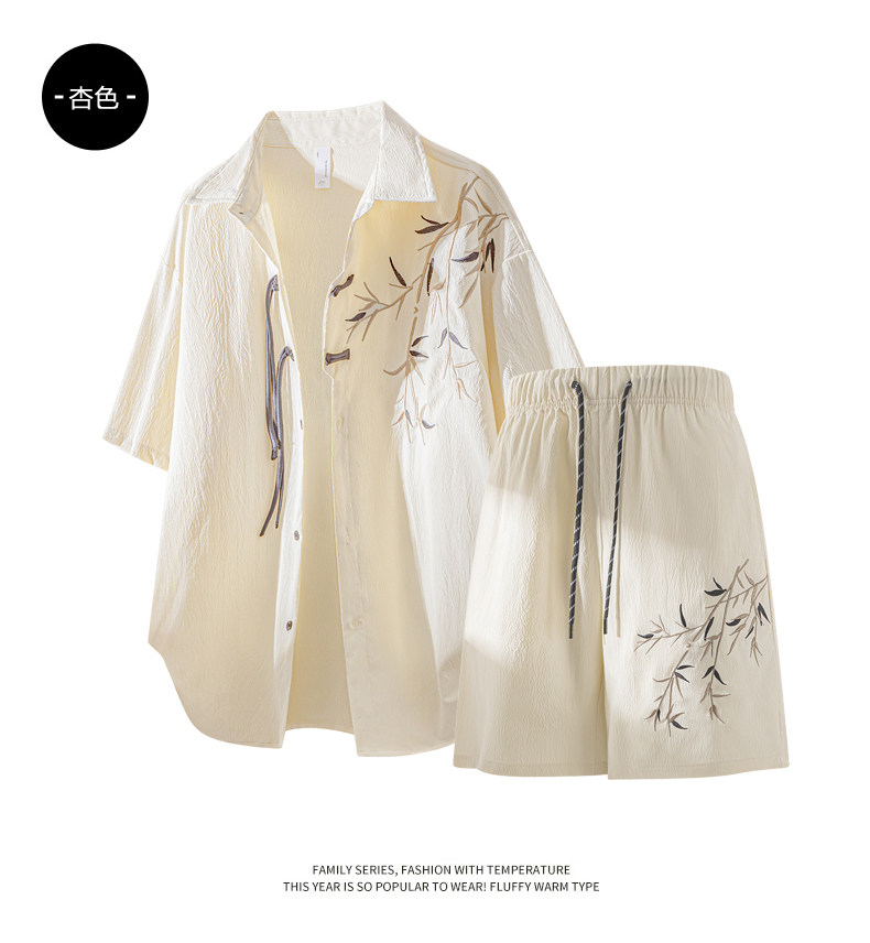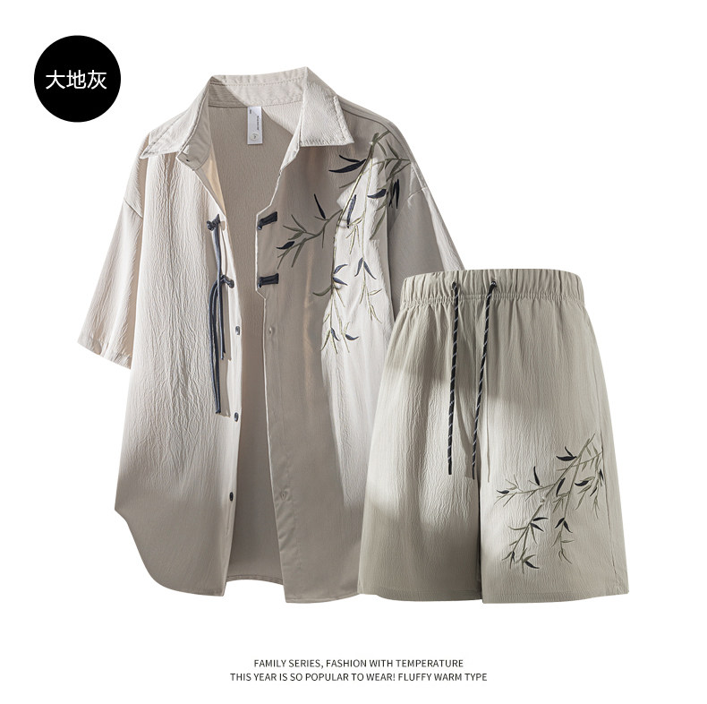 New Chinese Style Short-Sleeved Shorts Two-Piece Set for Men, Summer Thin Style, Trendy Brand, Ice Silk Quick-Drying, Complete Outfit Set