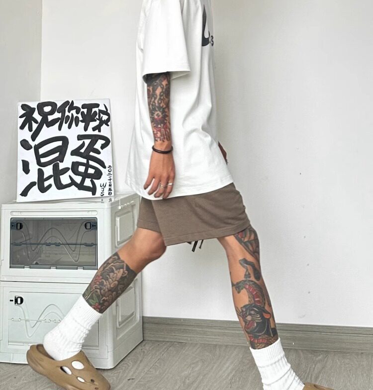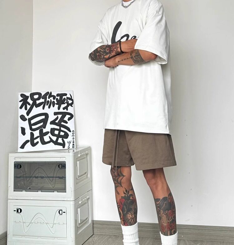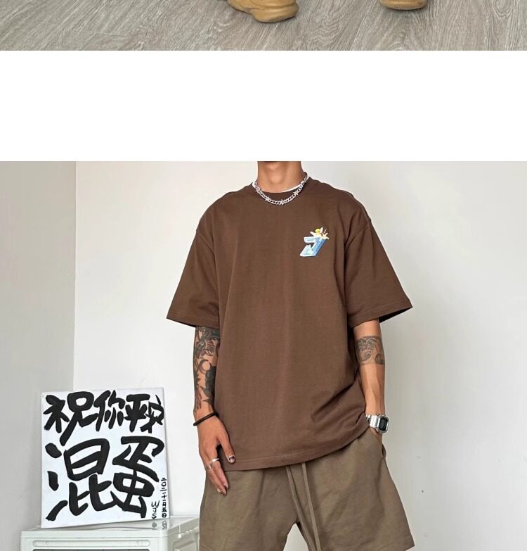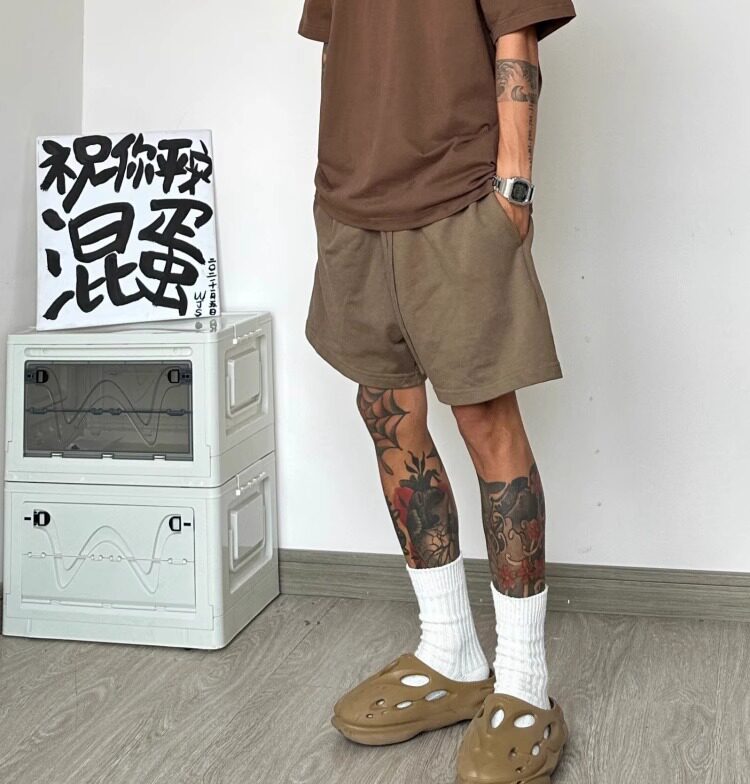 High Street American Retro 425g Heavy Cotton Brown Shorts for Men, Summer Casual Loose Sports Five-Point Pants Trendy