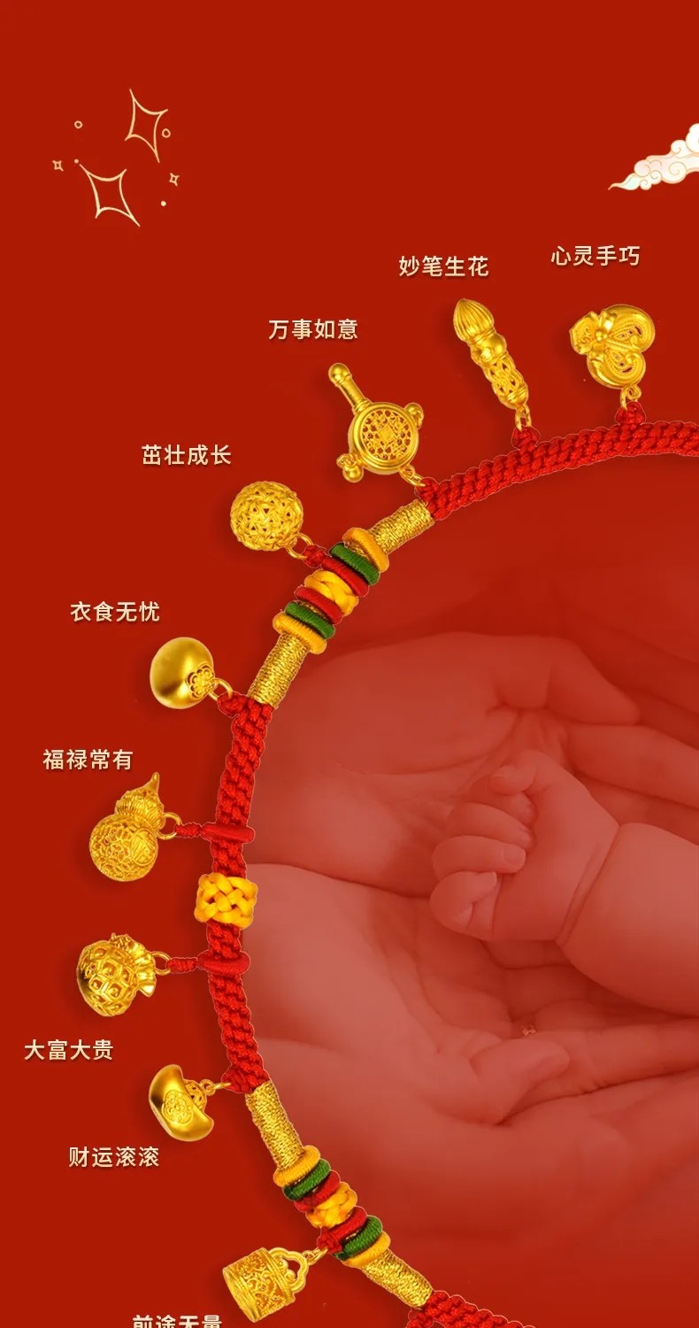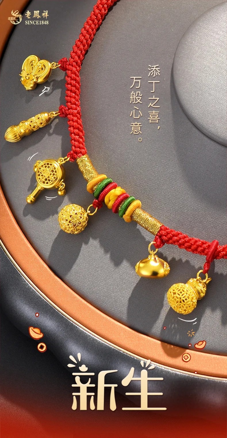 Lao Fengxiang Fengxiang Happy Occasions·New Life Series First Birthday Ceremony Gold Pendant Pure Gold Baby One-Year-Old New Year Gift