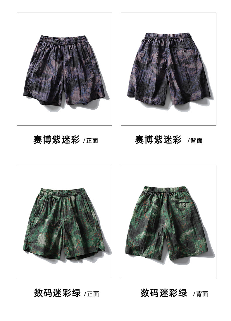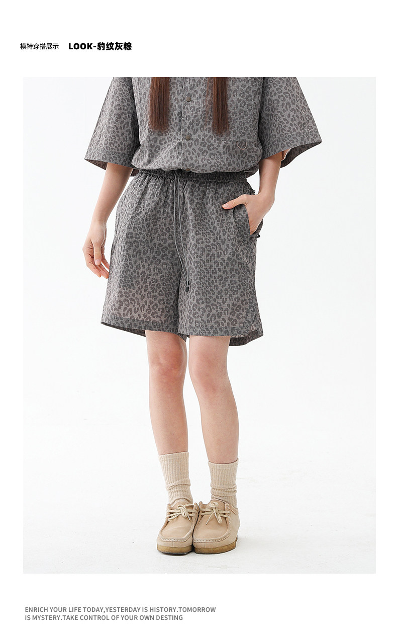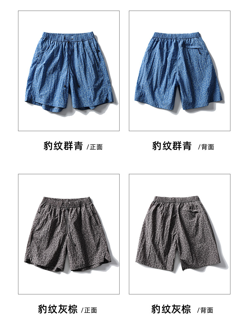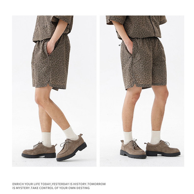 Wassup Shark American-Style Camouflage Leopard Print Shorts for Men, Summer Ice Silk Quick-Drying Casual Loose Beach Shorts